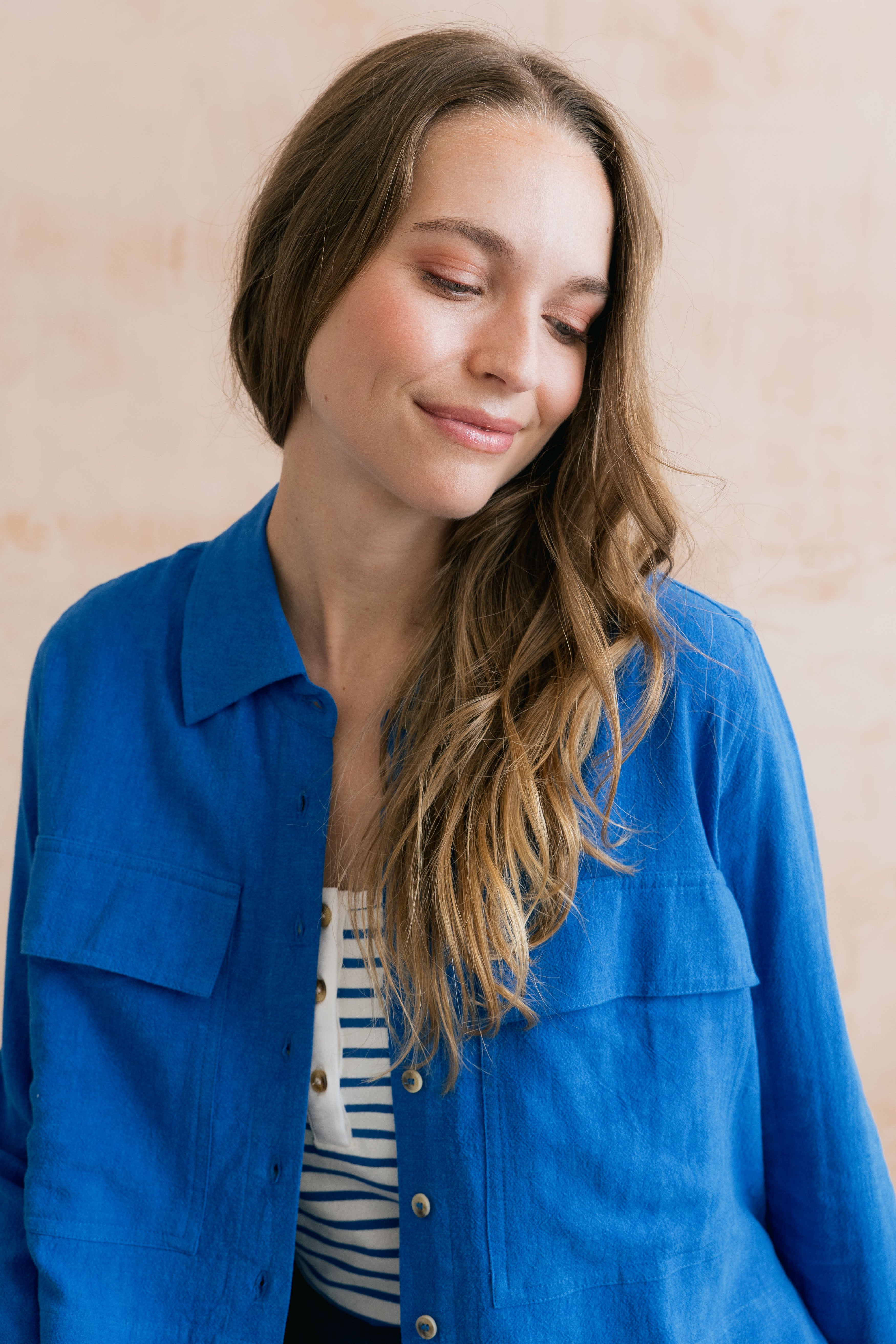With a classic collar, button fastening and two utility style chest patch pockets. A short and boxy shape, the Grasslands has a slightly longer back to create a chic stepped shape. It's the ideal companion for those in-between days when the sun shines bright, but a gentle breeze calls for a thin layer. .