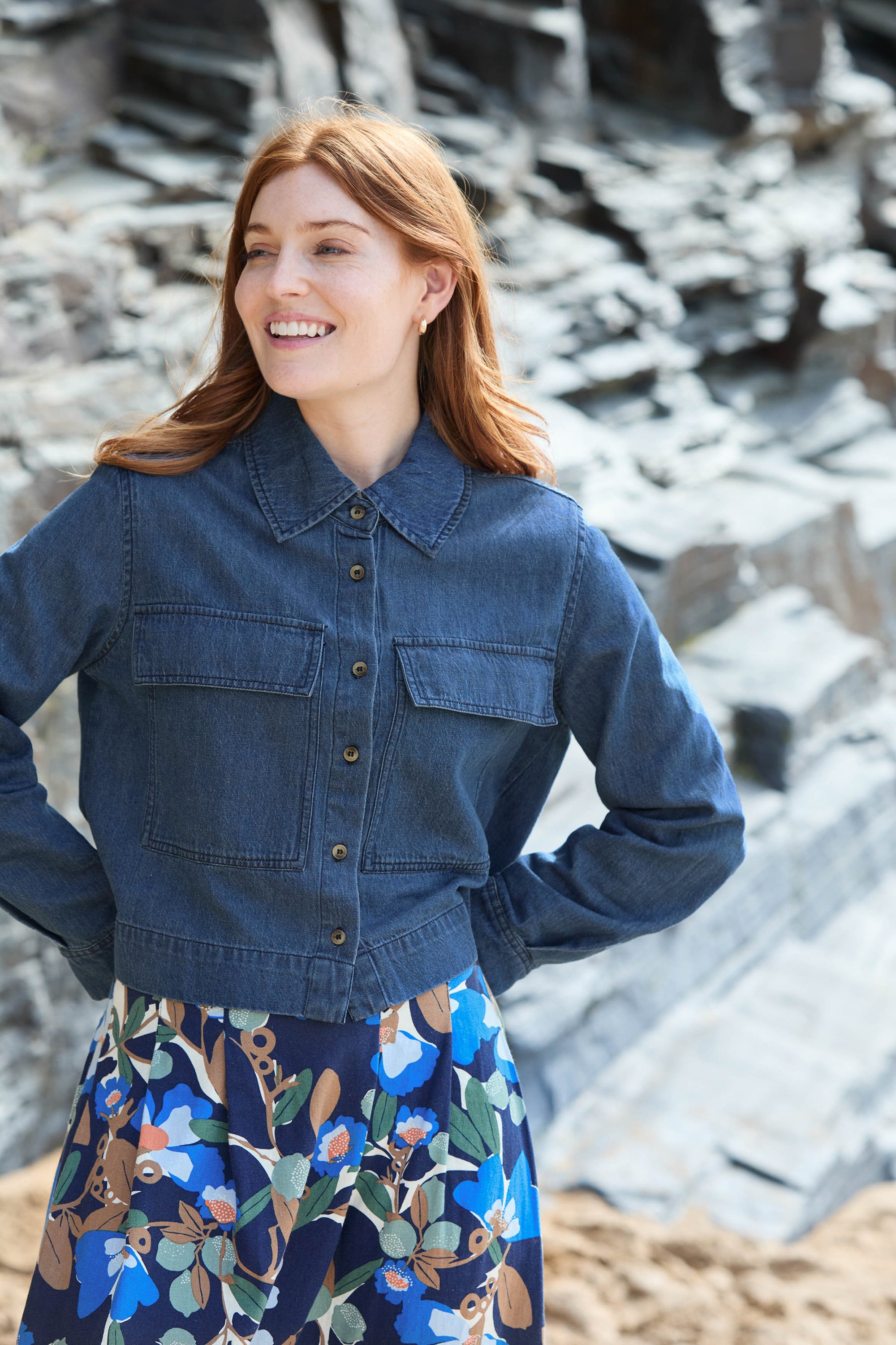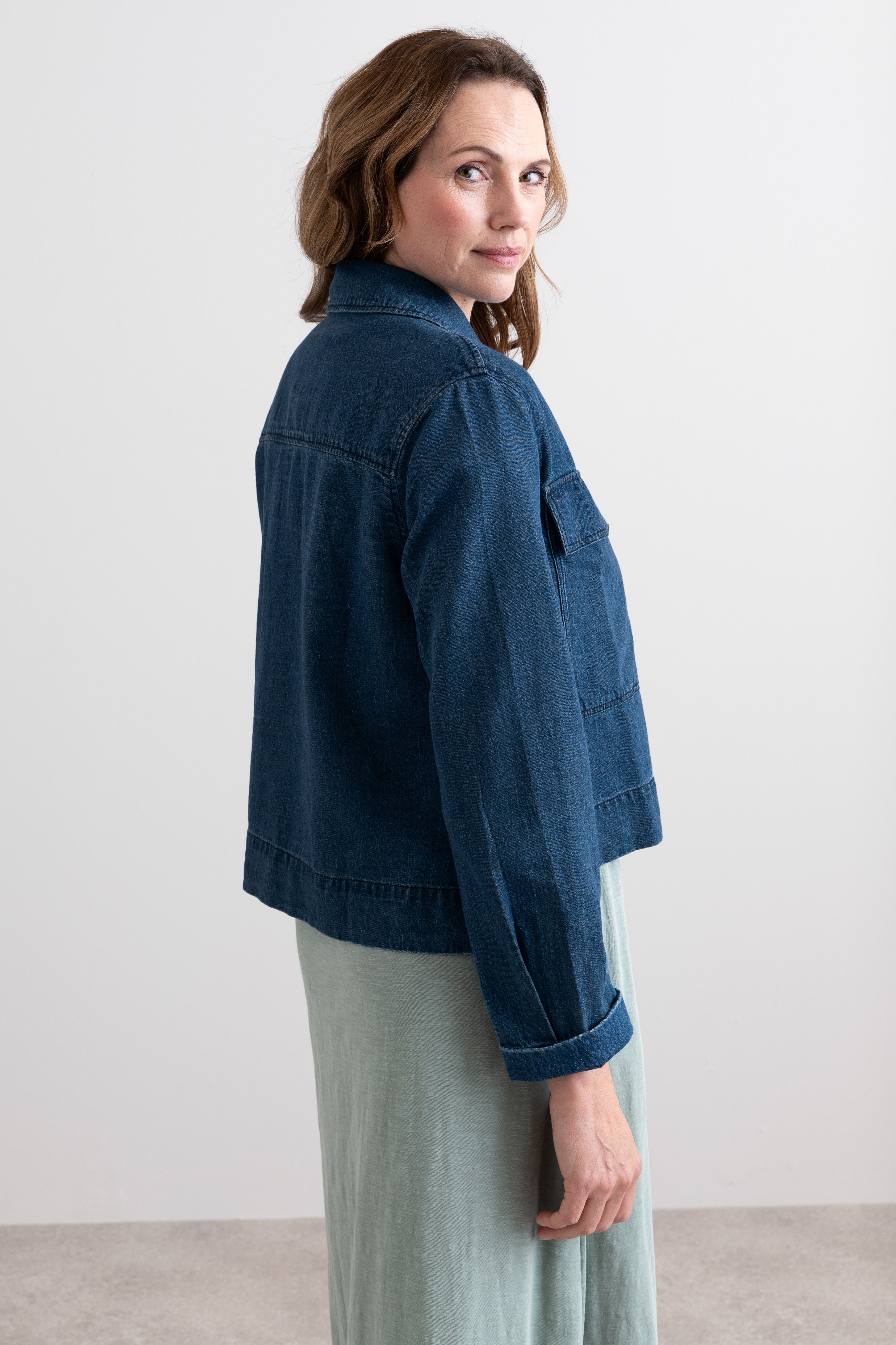 Our Grasslands Jacket is a standout wardrobe essential, perfect for elevating your Spring-Summer looks. Crafted from a cotton and linen blend, creating a beautifully soft and lightweight summer denim with a lovely drape.