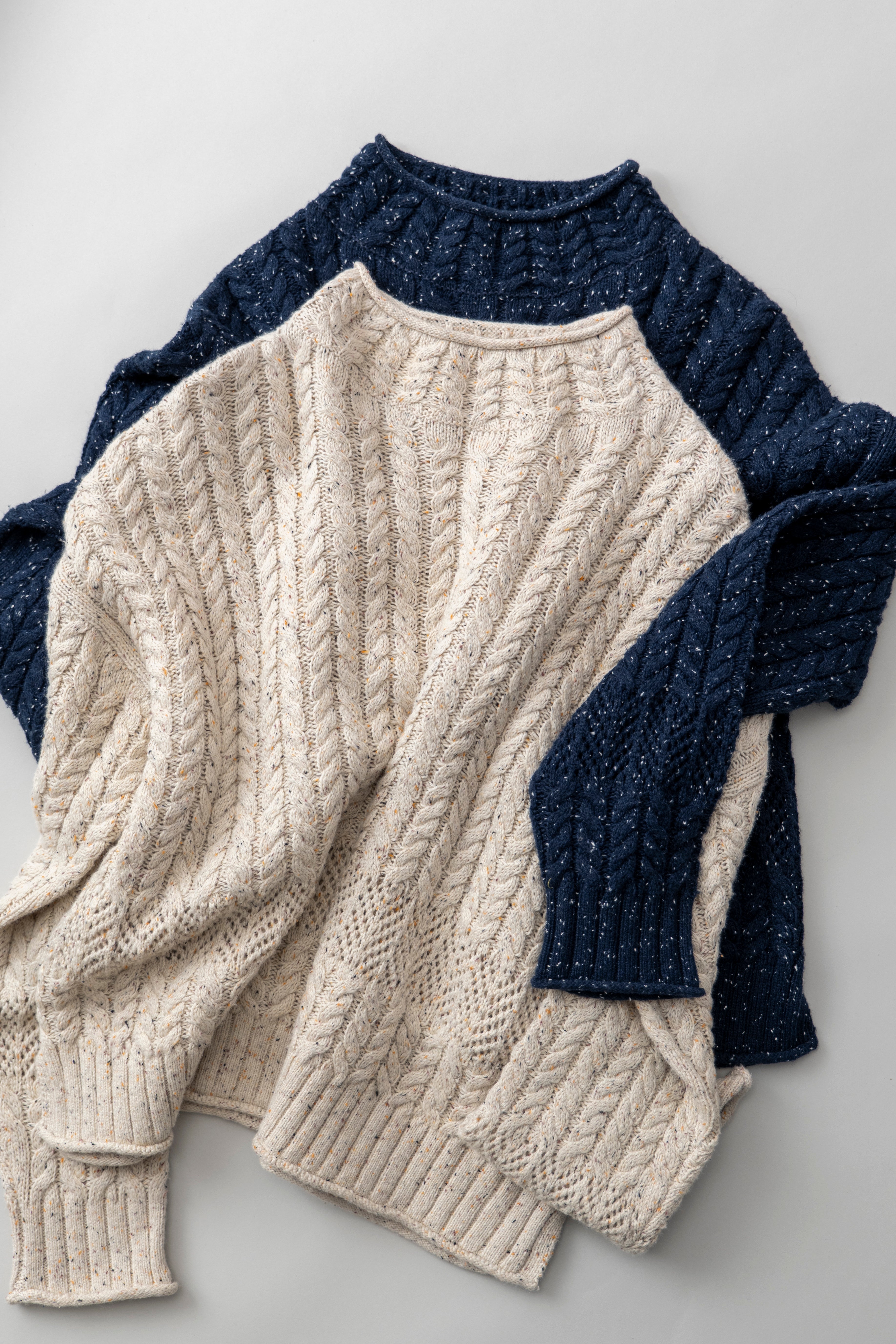 A classic look jumper designed with a blend of textured cable knit and pointelle detailing for a unique take on a traditional fisherman's jumper. A rib and roll neckline with a relaxed fit body and dropped sleeves offers a casual look.