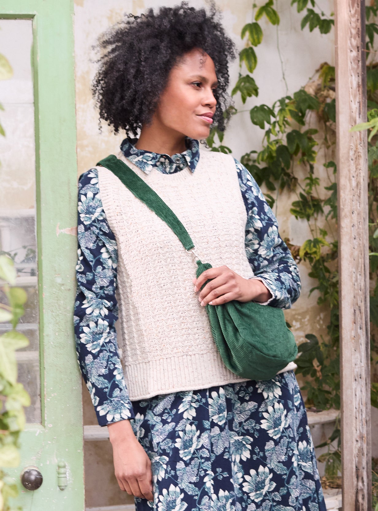 The Eva is a cotton-rich knitted tank in a variety of colourways. Woven from a flecked ‘neppy’ yarn giving it a beautifully soft level of colour.