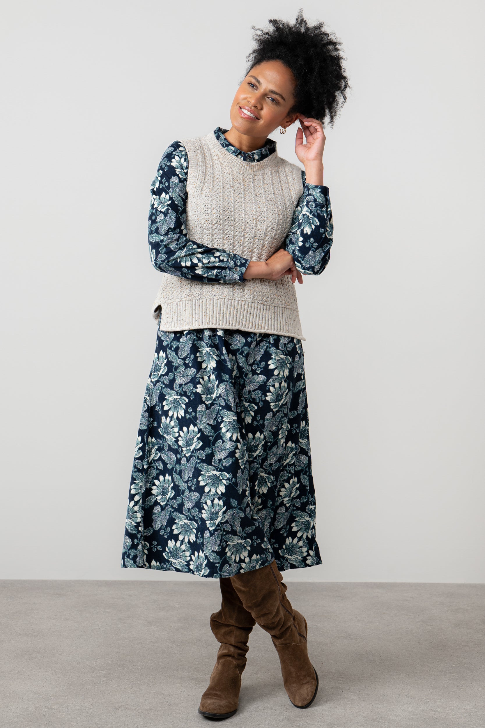 The perfect layering piece, for an instant style update! Designed with a crew neckline and cable knit detailing, we love it layered over dresses or if the weather allows worn alone with jeans or chinos.