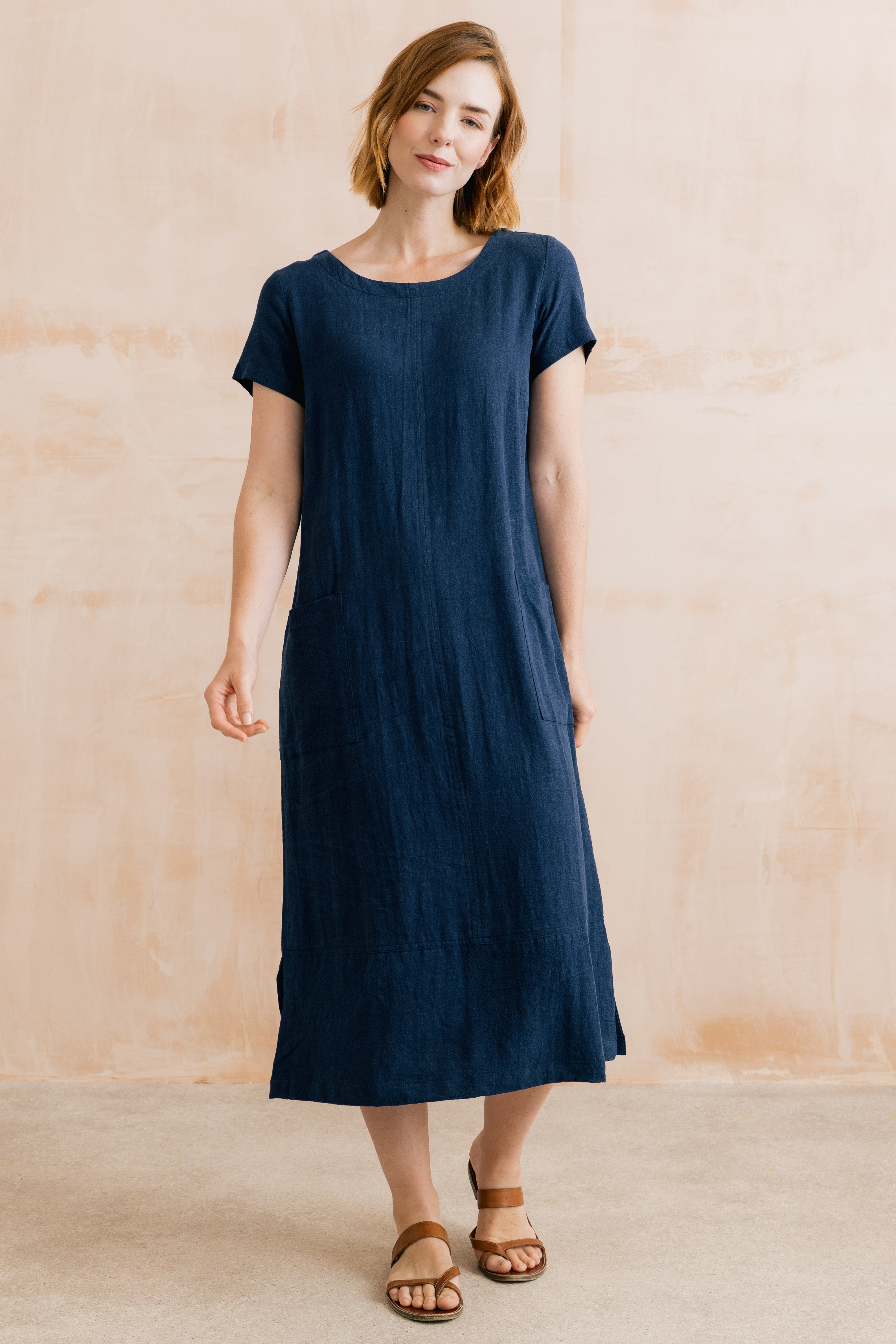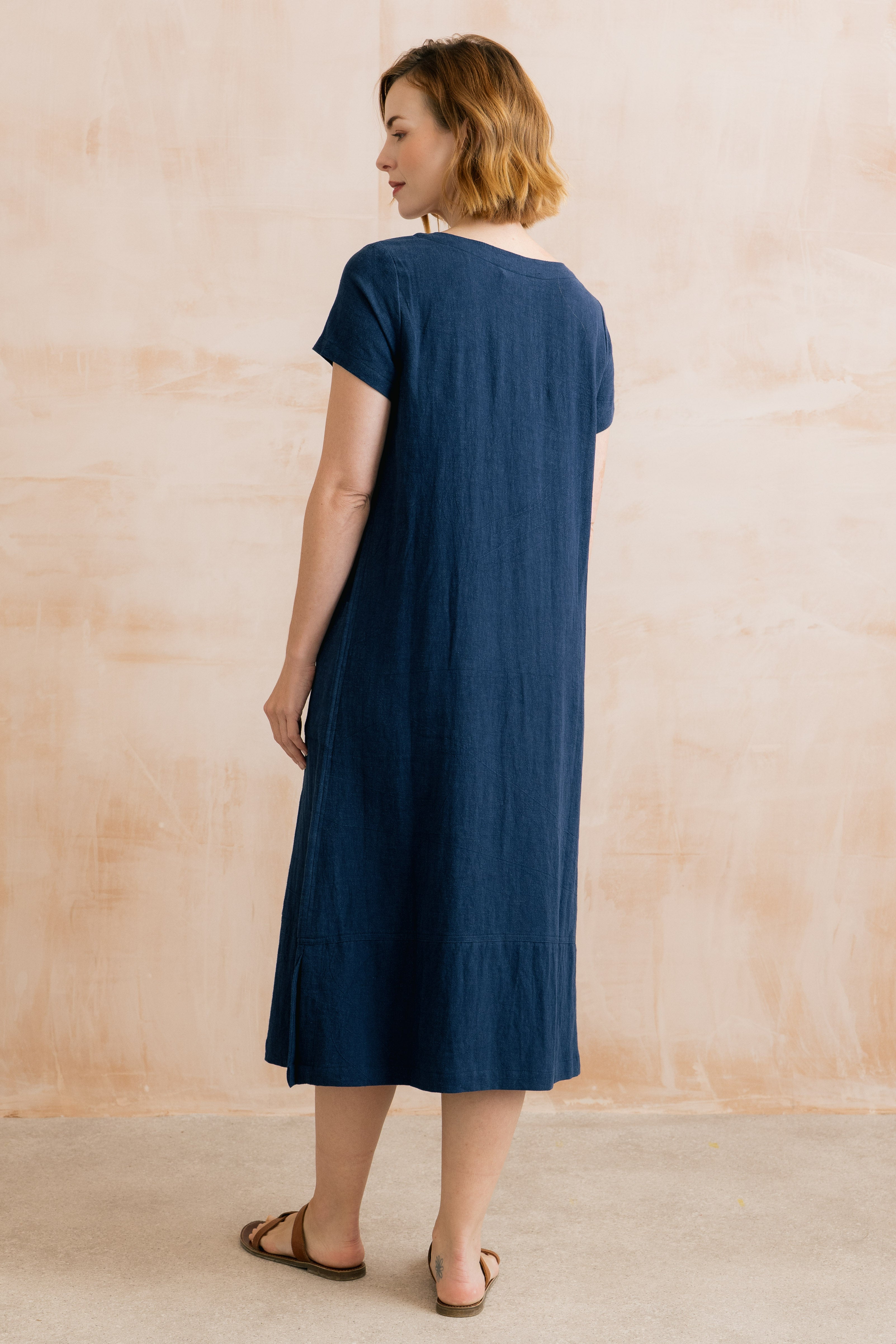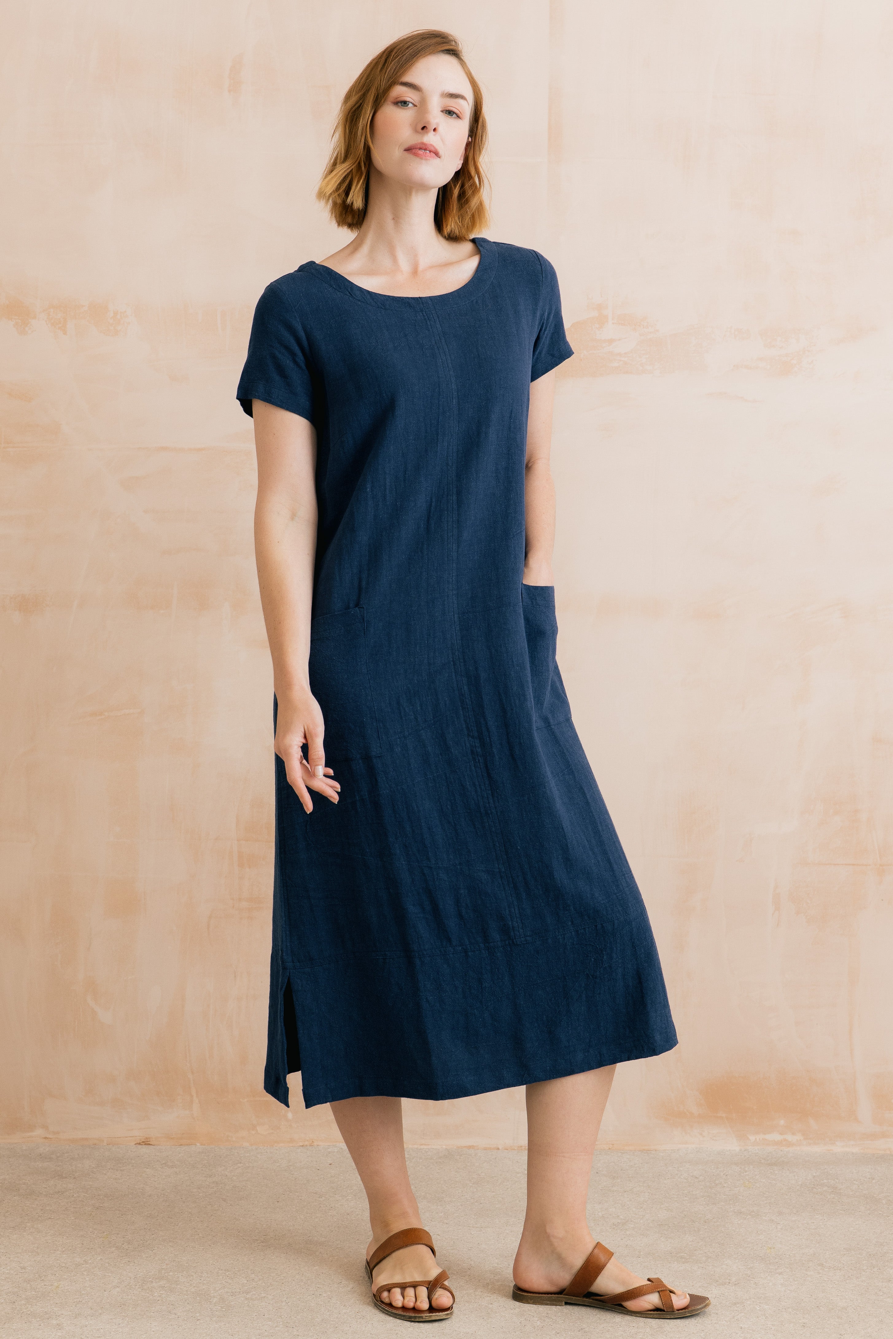 Midi length, patch pockets and in a relaxed style, we suggest sizing down if you prefer a more fitted style. Our easy-care linen viscose blend creates a drape without the usual creasing caused by pure linen.