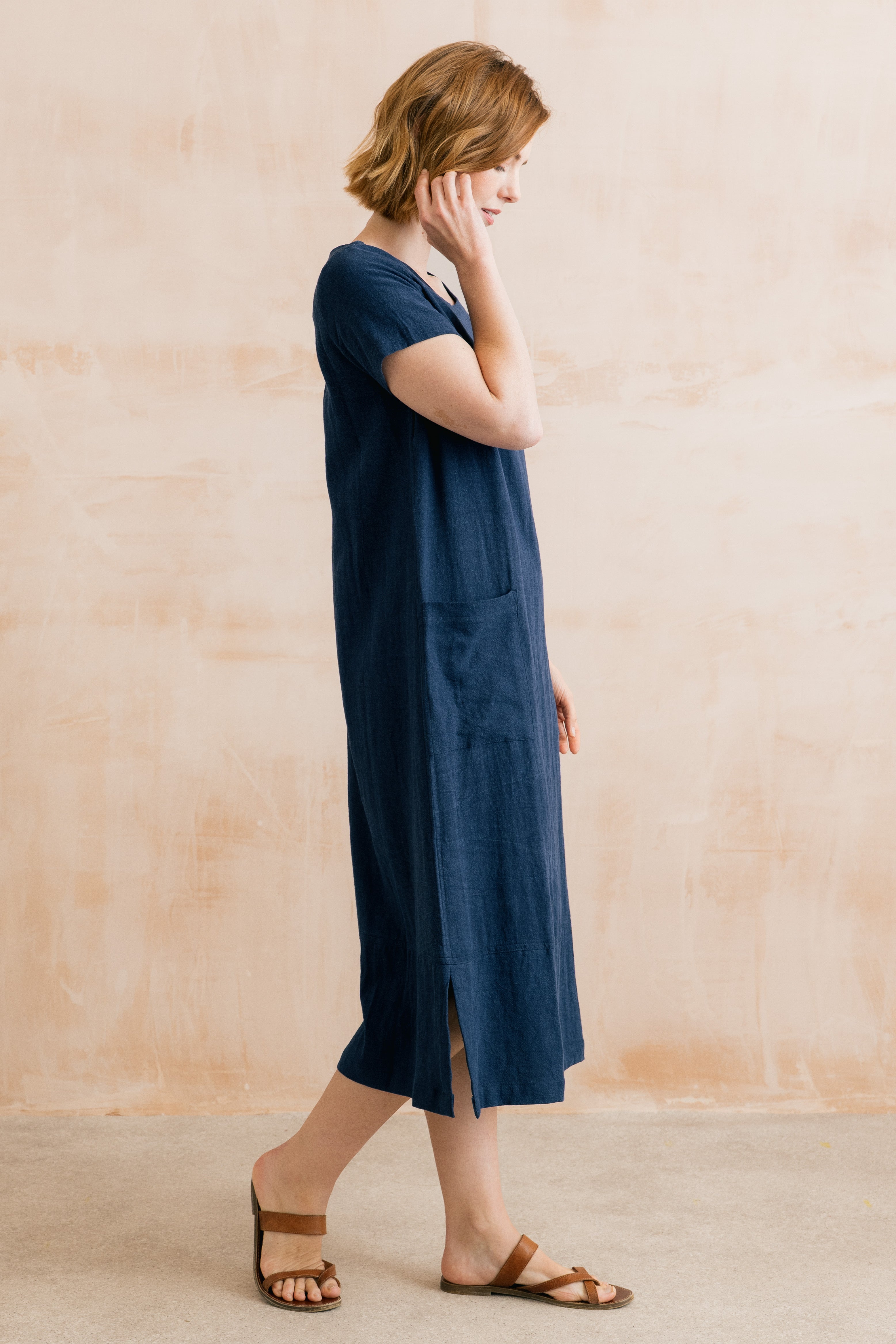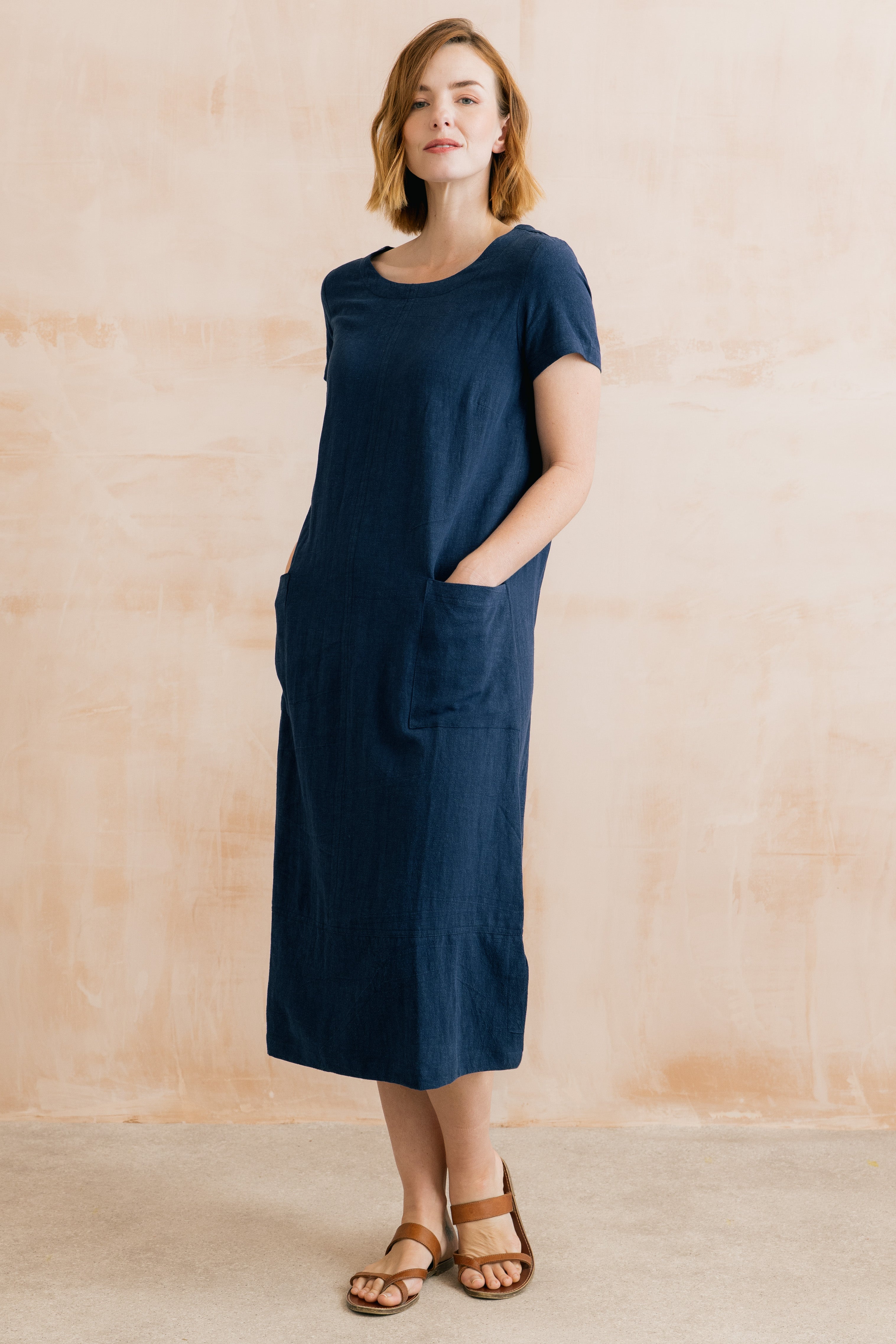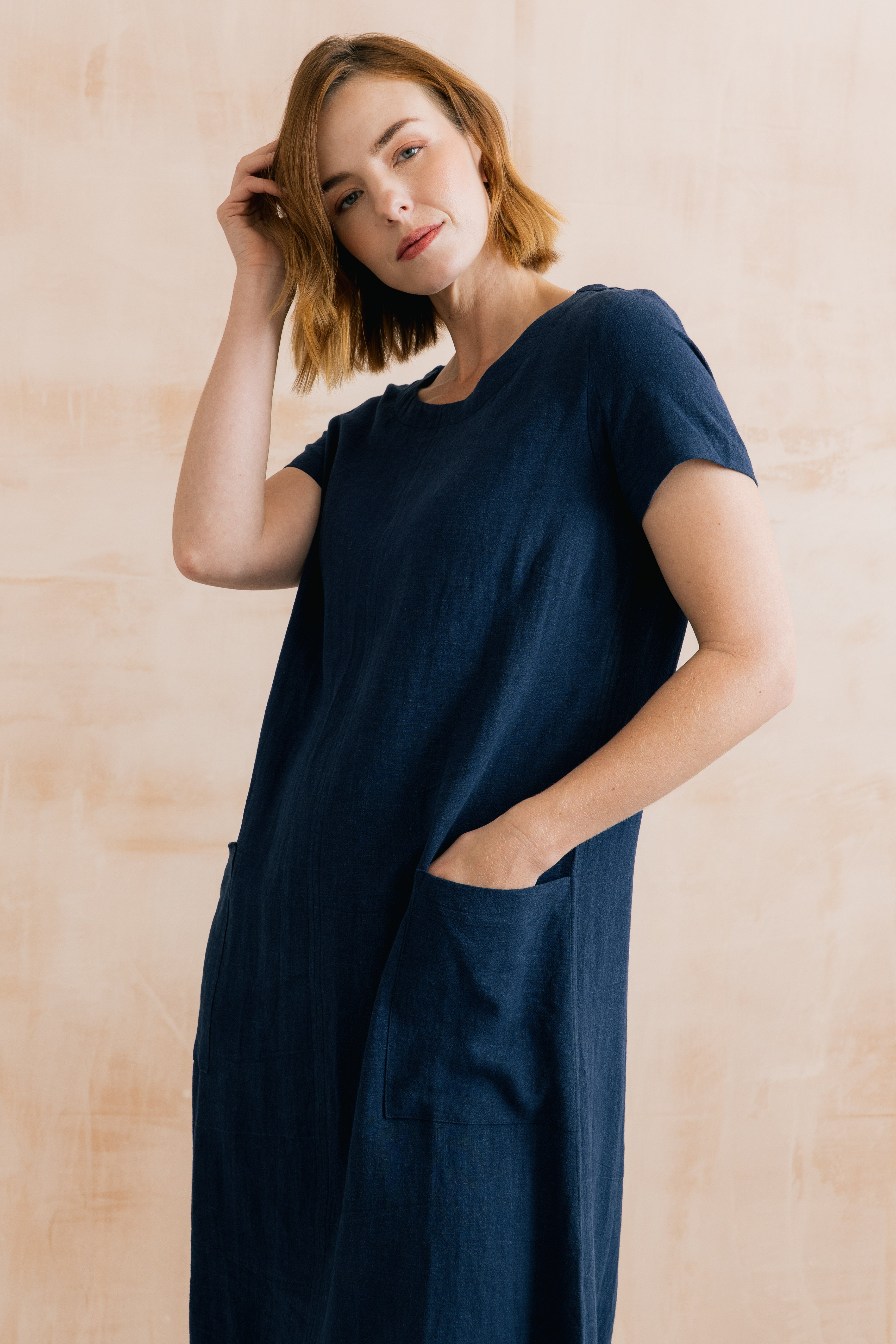 Midi length, patch pockets and in a relaxed style, we suggest sizing down if you prefer a more fitted style. Our easy-care linen viscose blend creates a drape without the usual creasing caused by pure linen.
