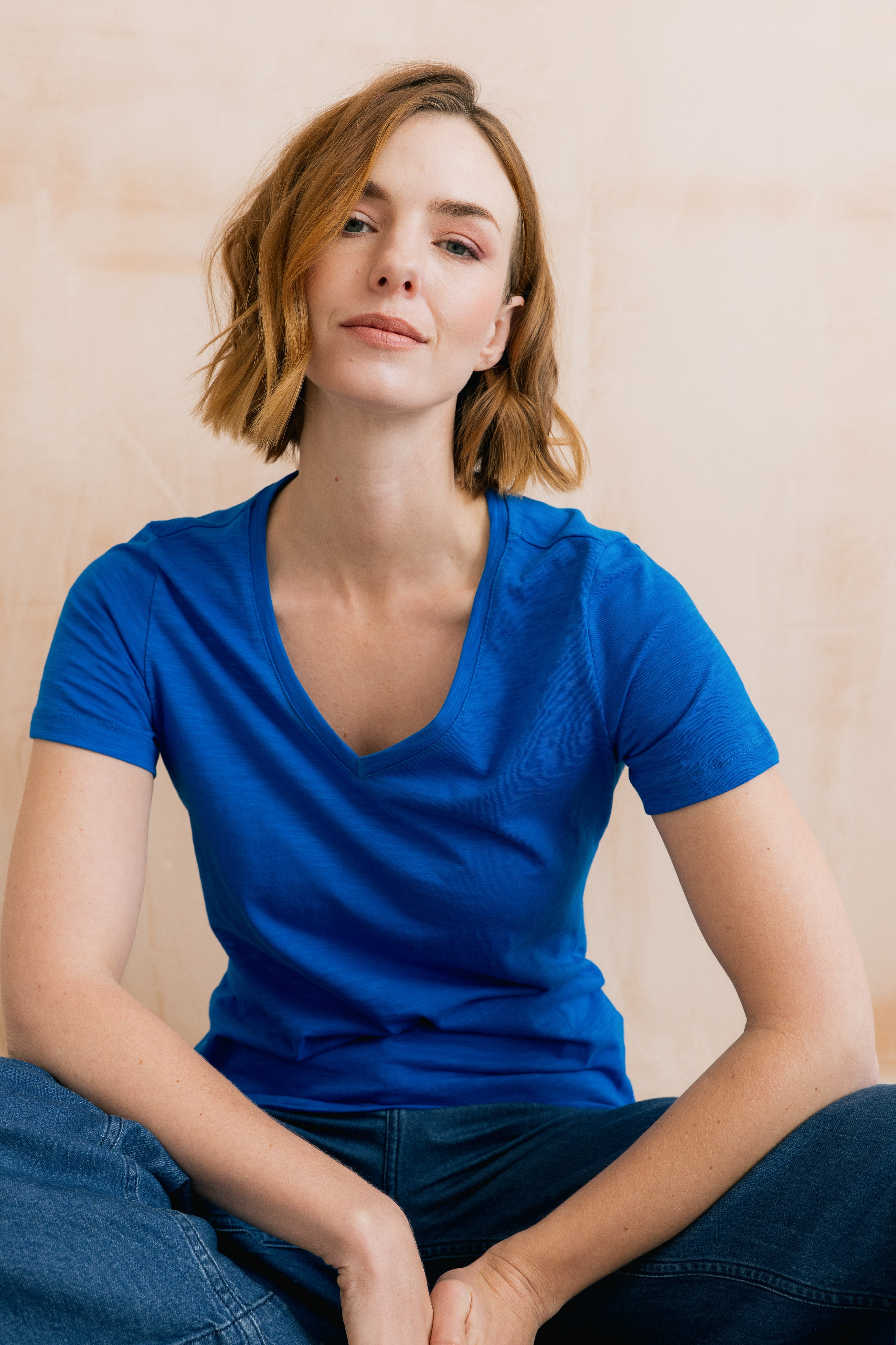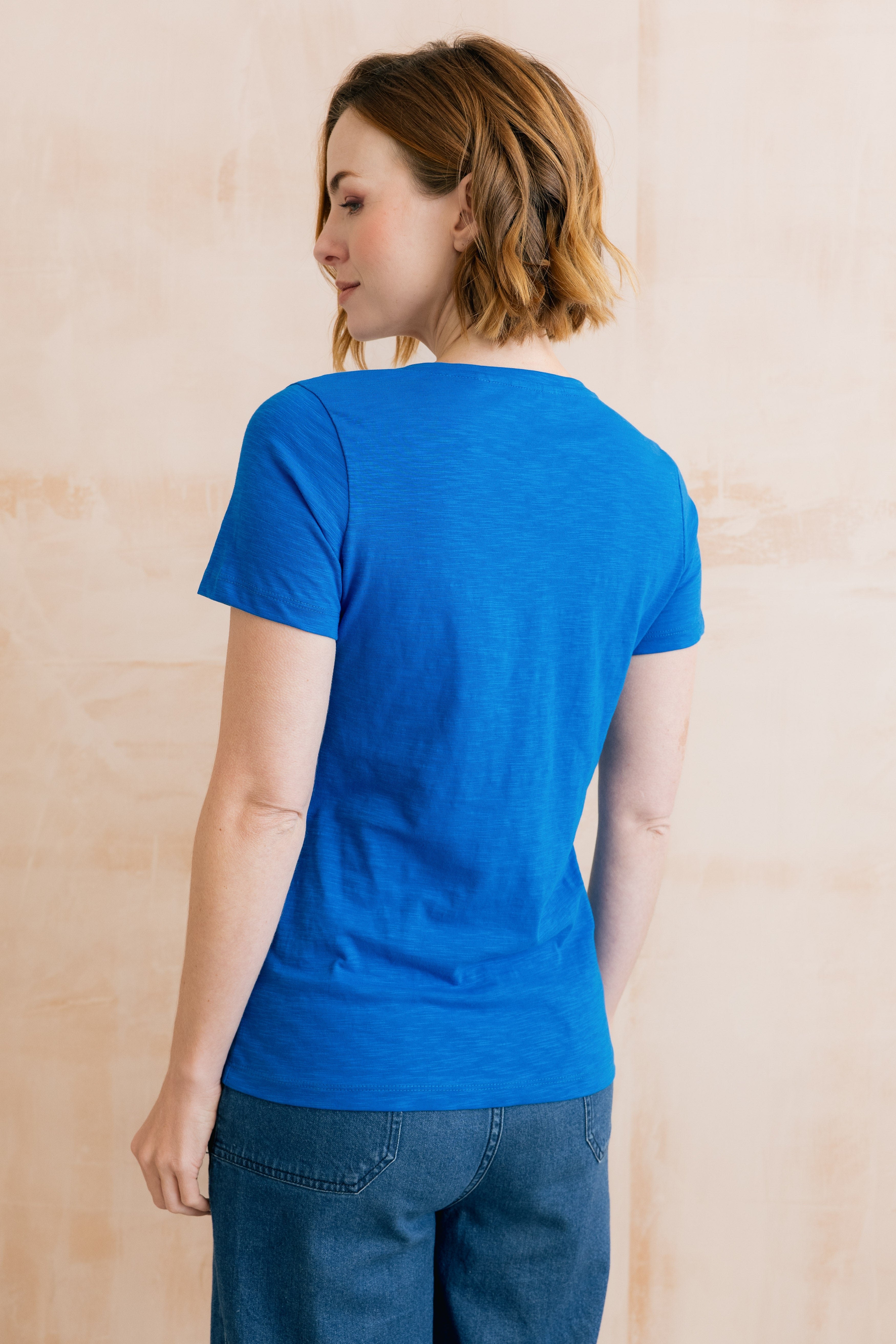 The Victoria Tee is a great Spring/Summer staple. Made from organic cotton with a soft V-neck, capped sleeves and available in a variety of beautiful seasonal colours.