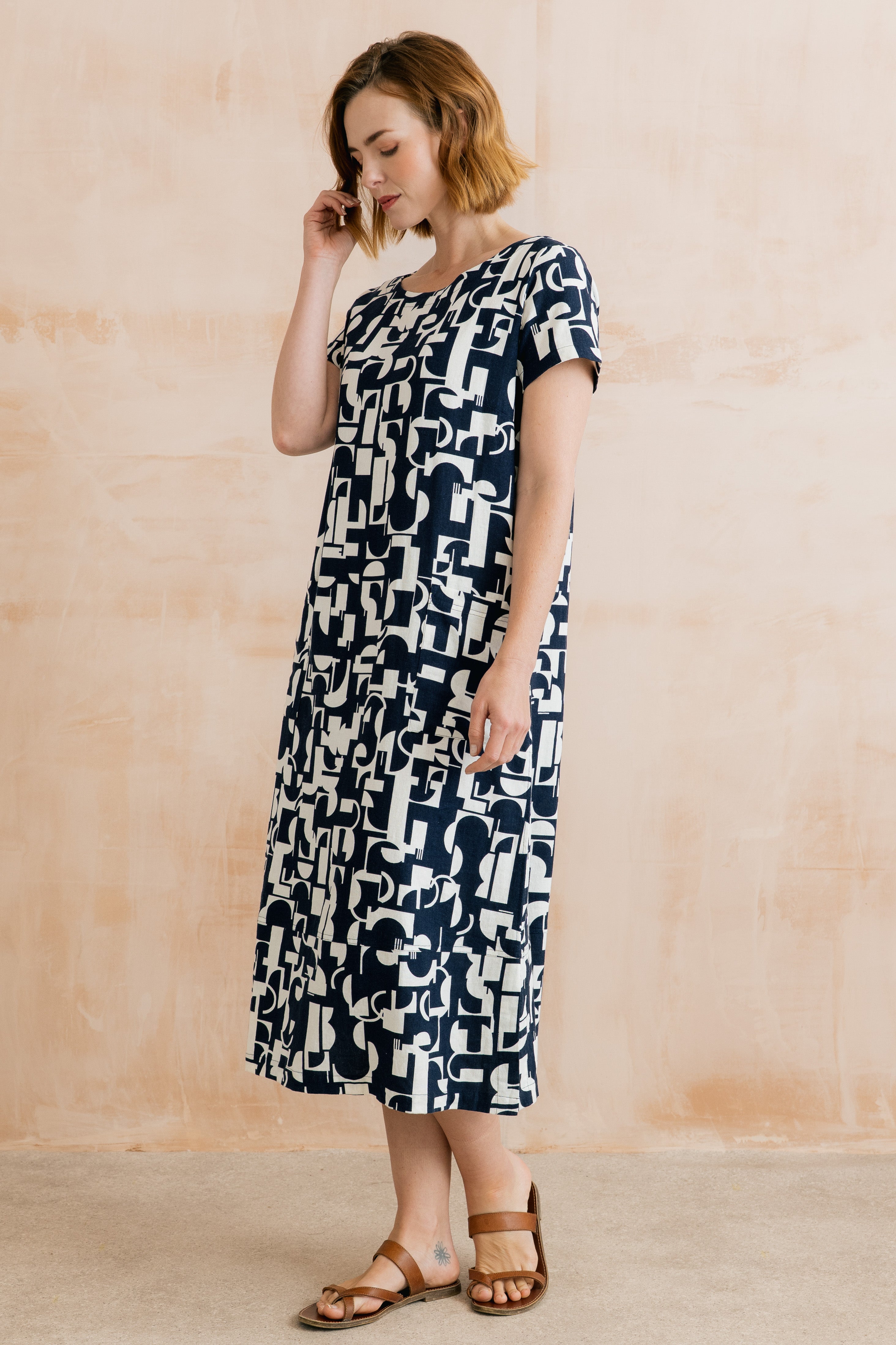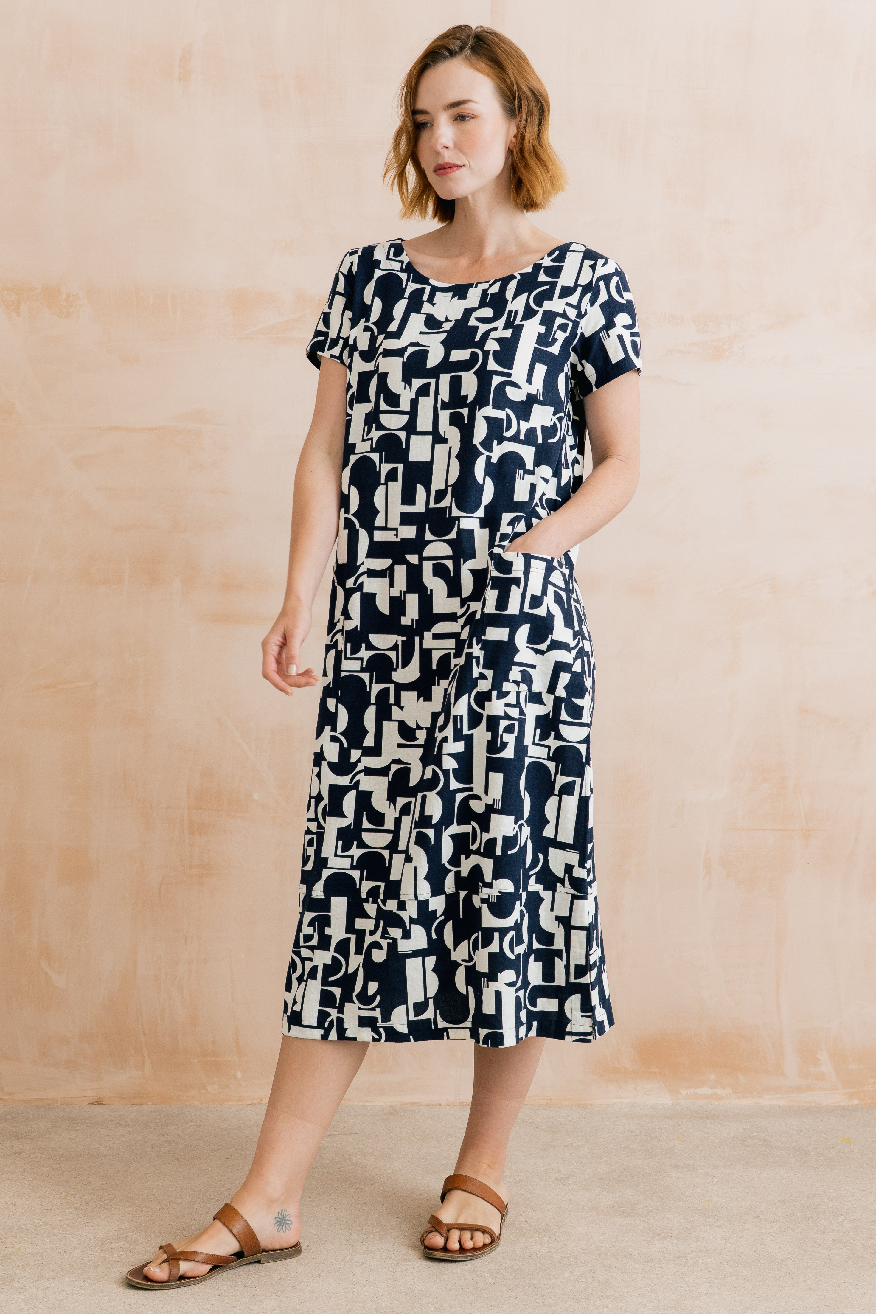 Midi length, patch pockets and in a relaxed style, we suggest sizing down if you prefer a more fitted style. Our easy-care linen viscose blend creates a drape without the usual creasing caused by pure linen.