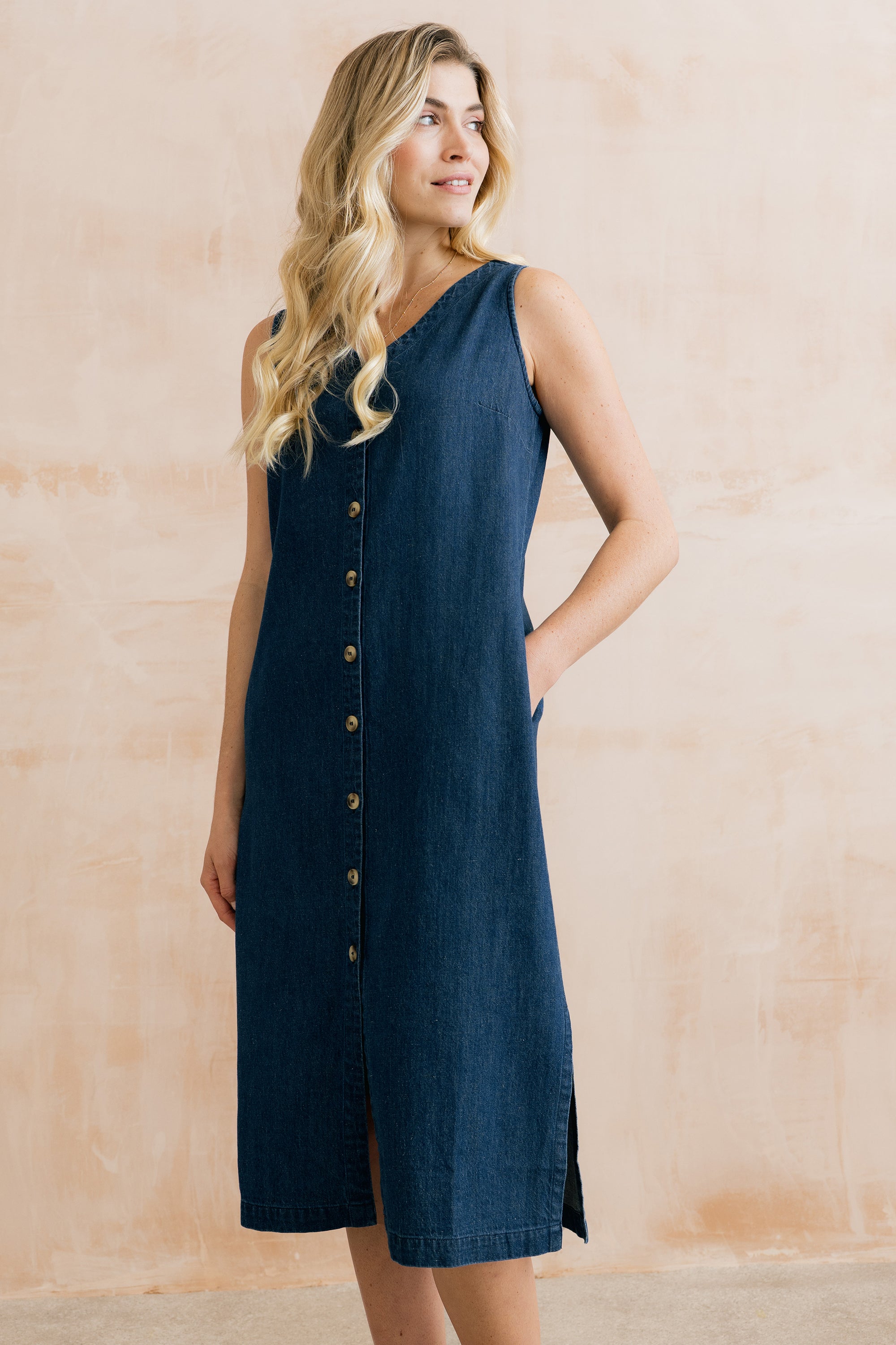 Effortless yet super stylish, our Erica Dress is made from a cotton and linen blend, creating a beautifully soft and lightweight summer denim with a lovely drape.