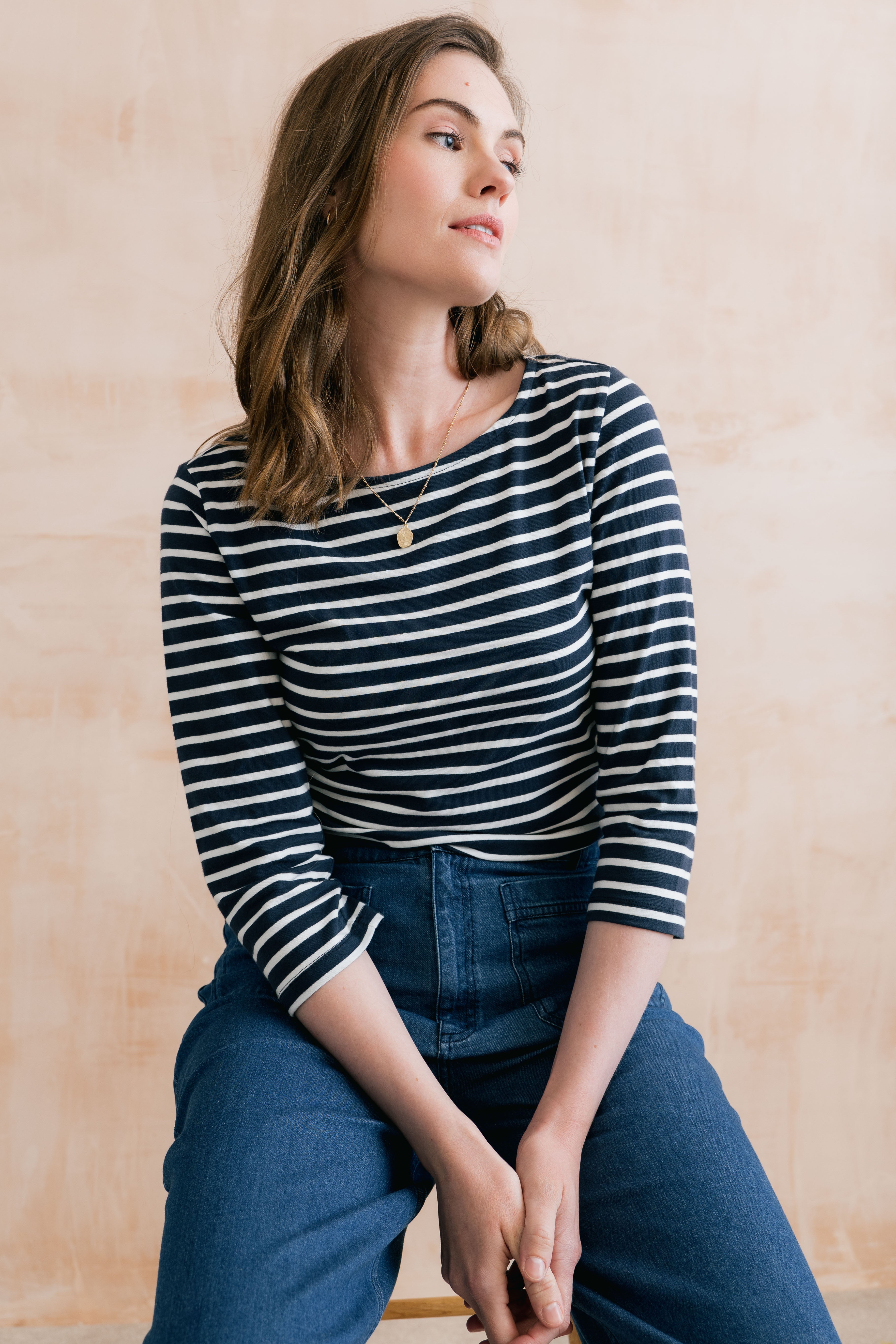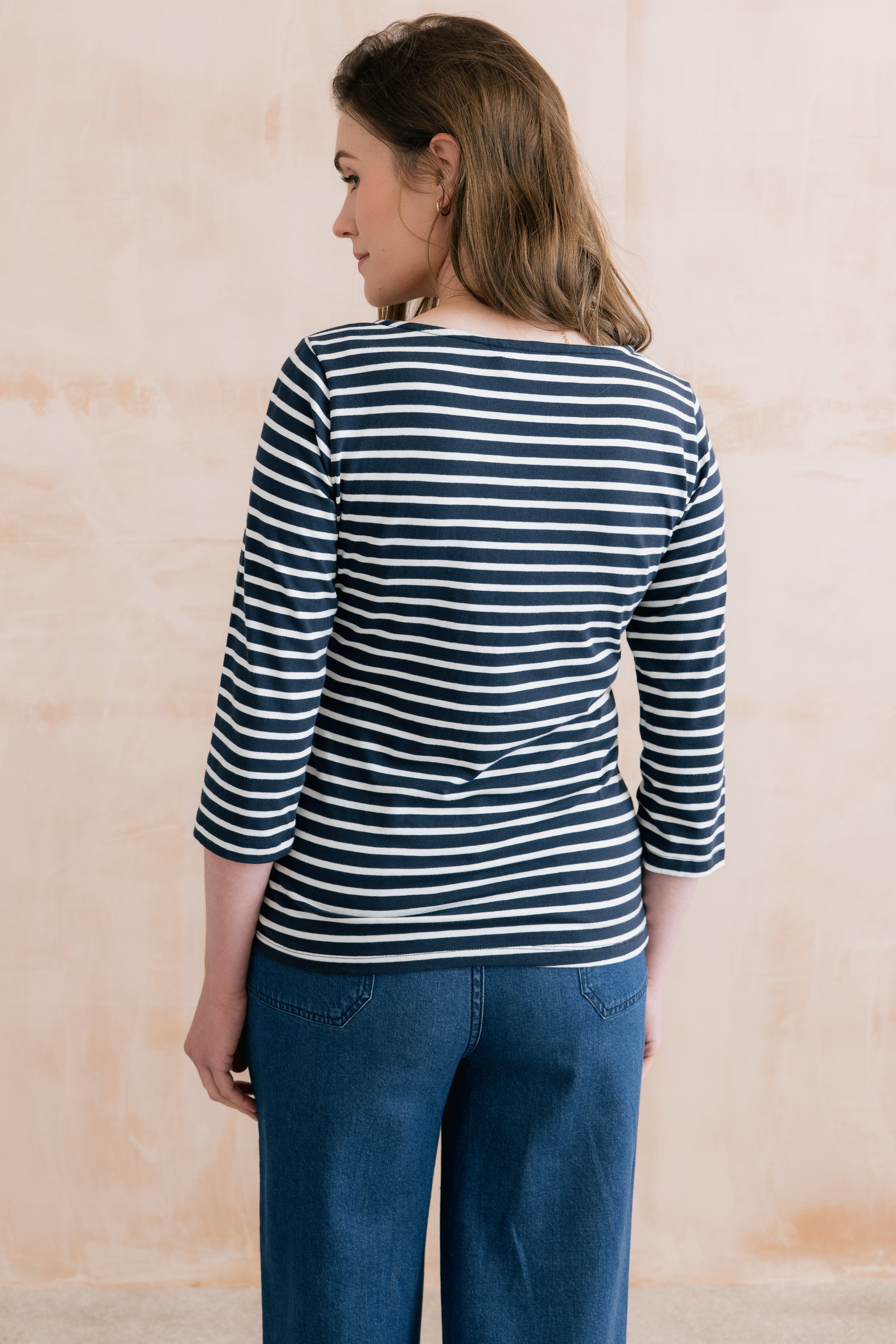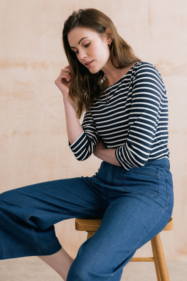 Our best-selling striped jersey top is back, with three-quarter sleeves for the season.
