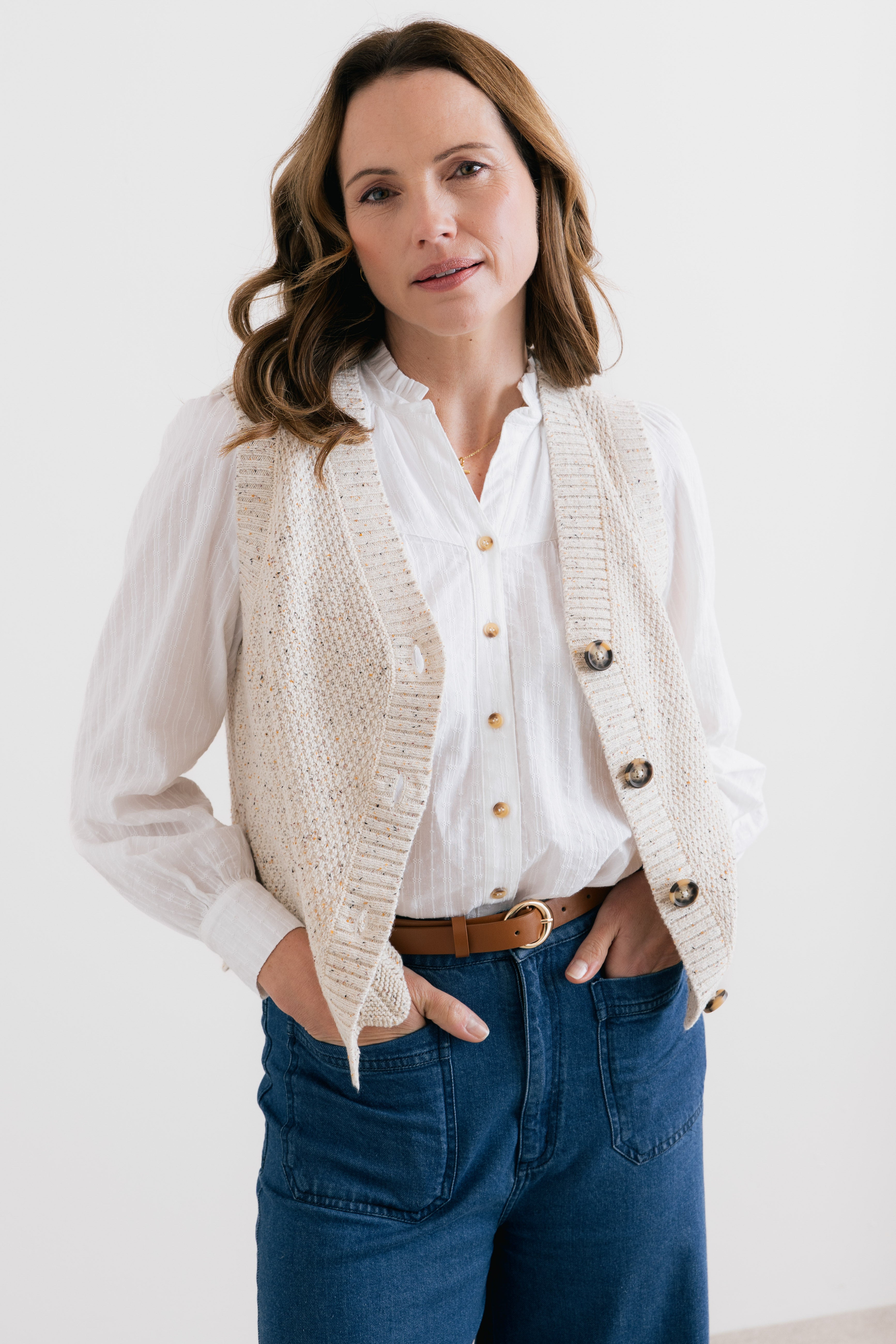 Woven organic cotton with a self stripe and pointelle detailing, the Wayfaring adds texture and interest to any outfit. Style with your favourite trousers or skirt and layer under a tank, knitwear, or one of our cord gilets.