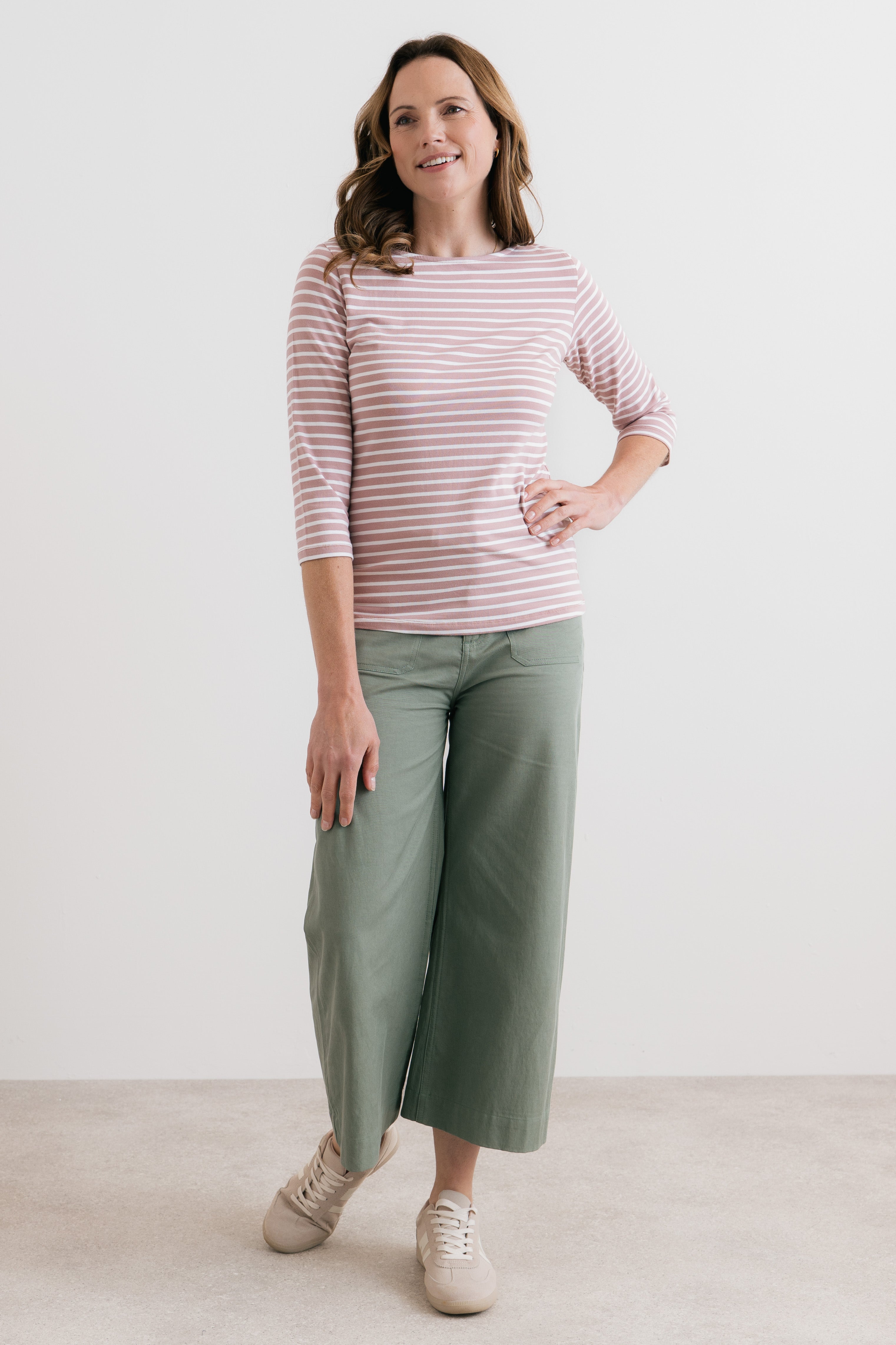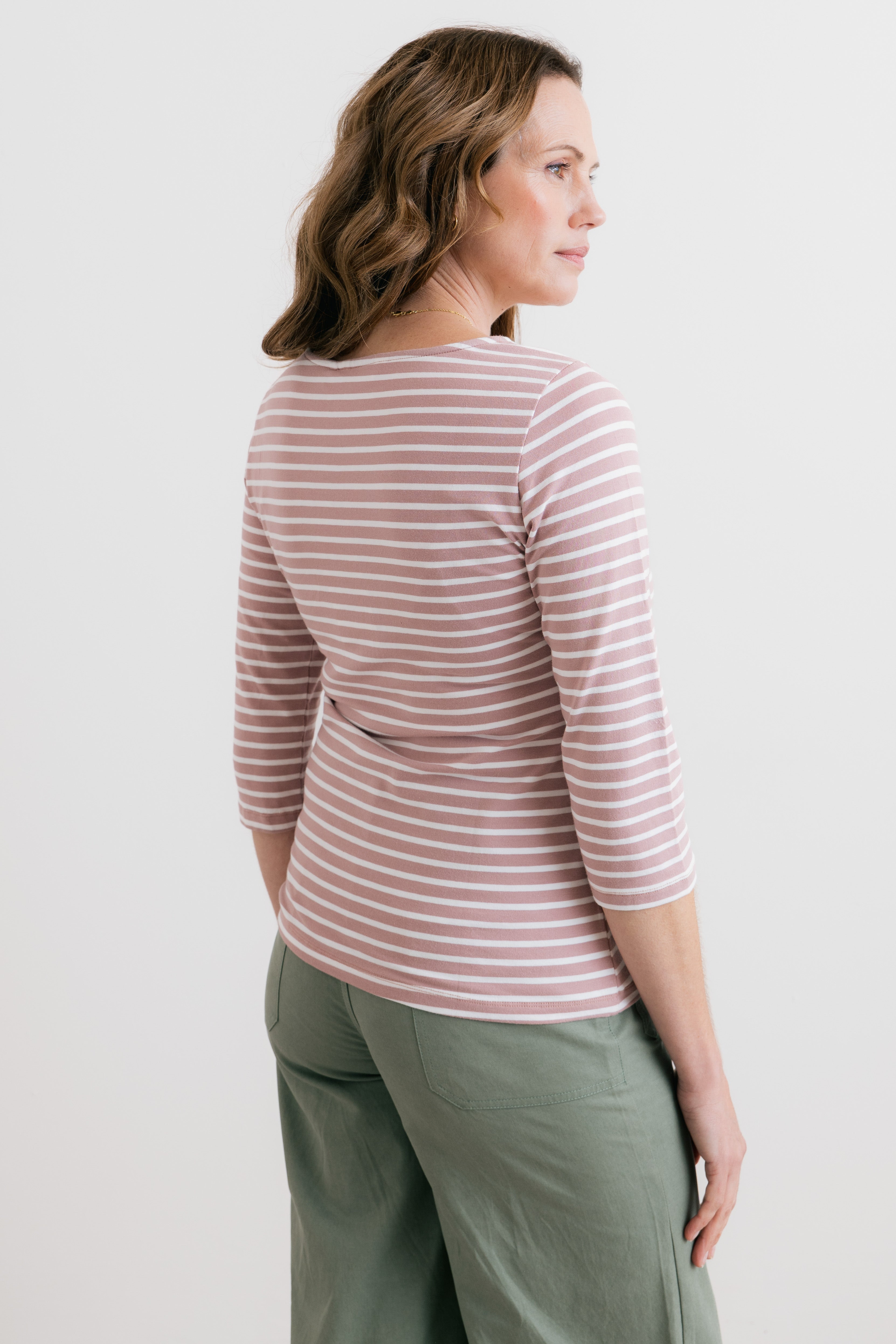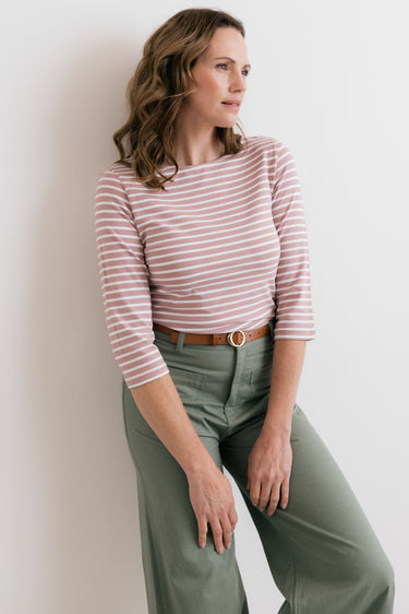 Our best-selling striped jersey top is back, with three-quarter sleeves for the season.