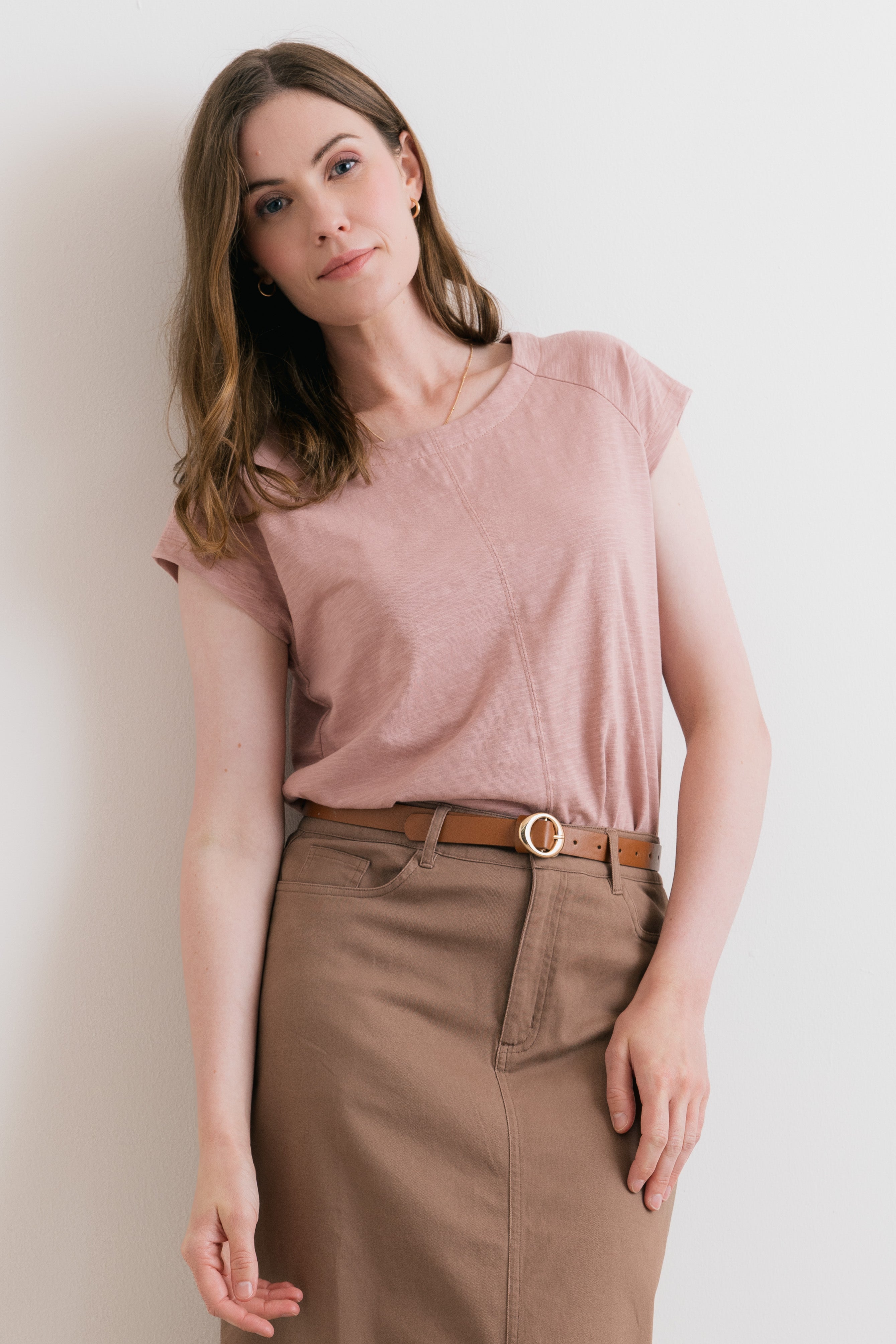 A classic colourful tee is a versatile basic. Pair with shorts for the beach or linen trousers and a jacket for a sophisticated day time look.