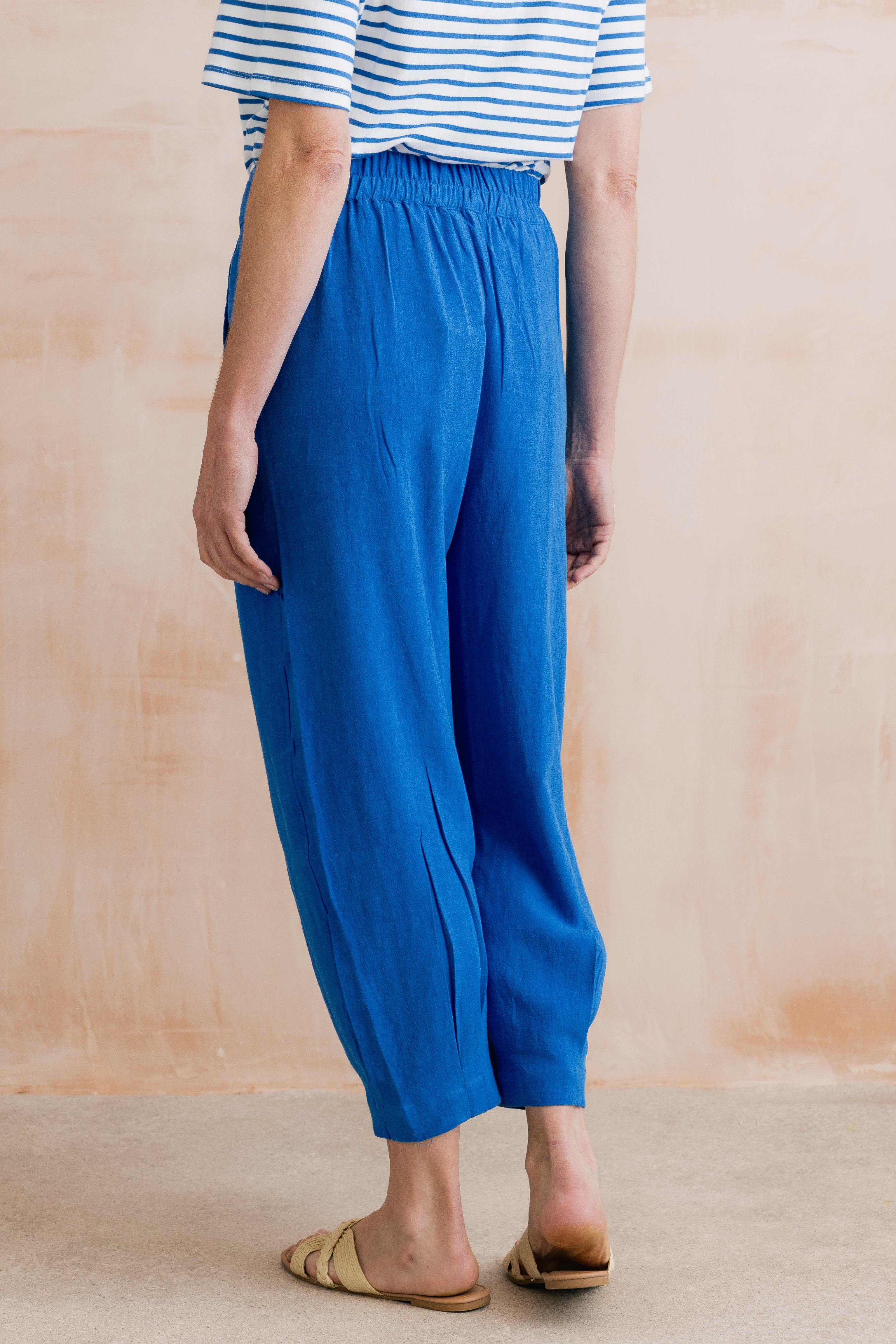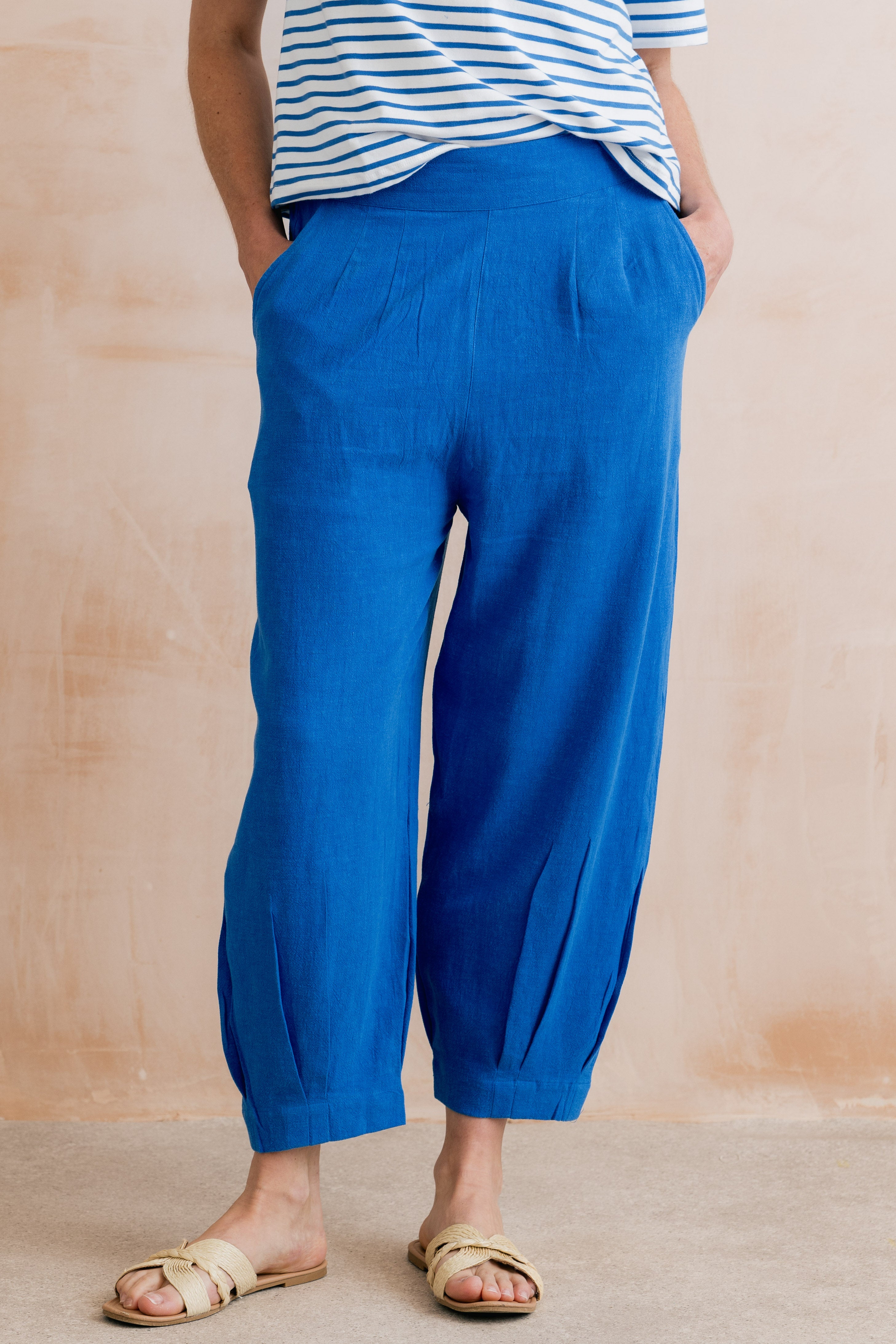 Sail Linen Blend Cropped Trousers Cobalt