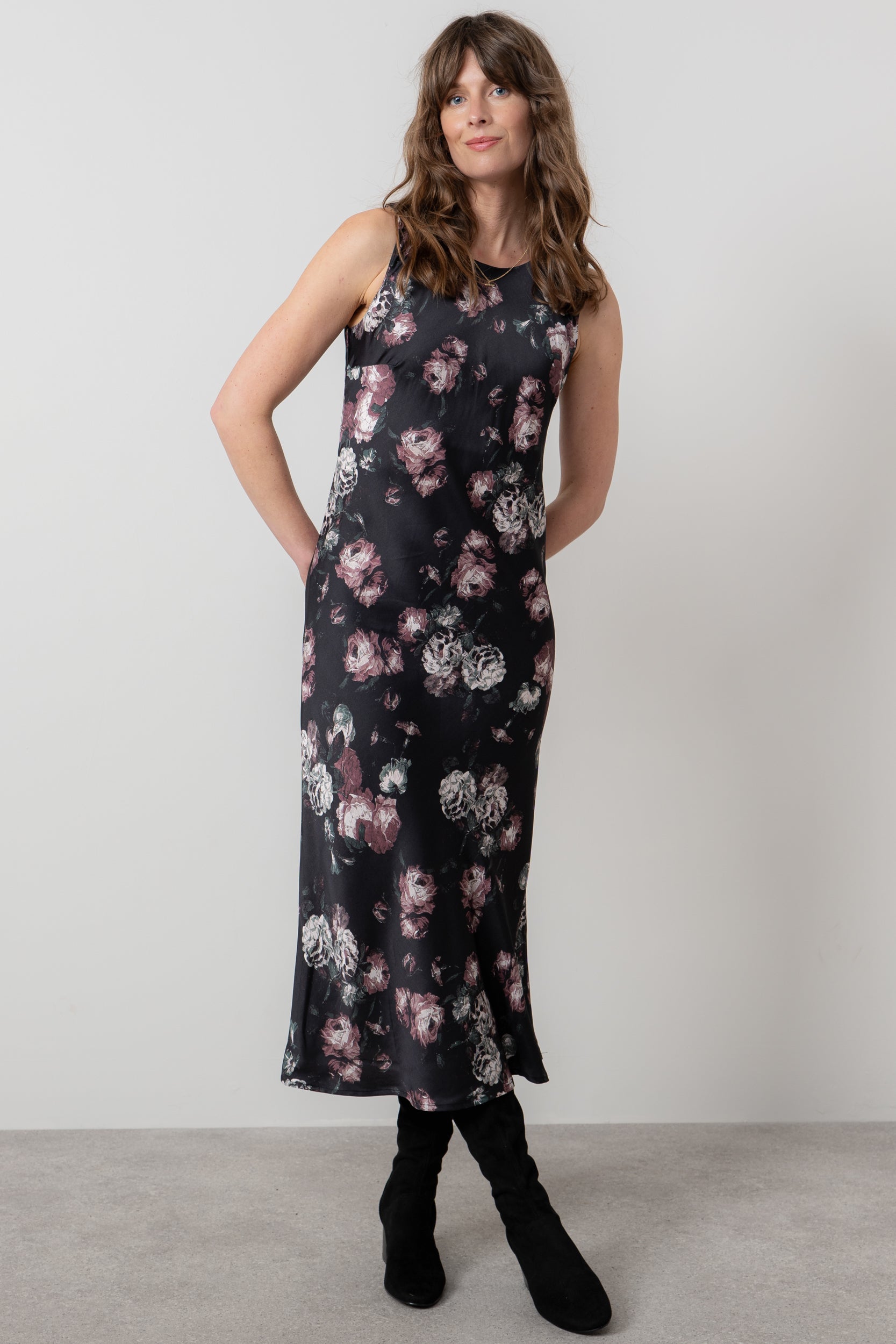 Crafted from sustainable Ecovero™ Viscose Satin, the fabric has a lustrous, silky sheen on the outside and a soft crepe finish on the inside, offering comfort without compromising on style. Its fluid, slouchy feel makes it the perfect canvas for our bespoke Imogen print - a large-scale, painterly bloom inspired by the romantic charm of cottage gardens. With blossoming roses and soft, tonal hues, the design brings a fresh and feminine presence to any special occasion.