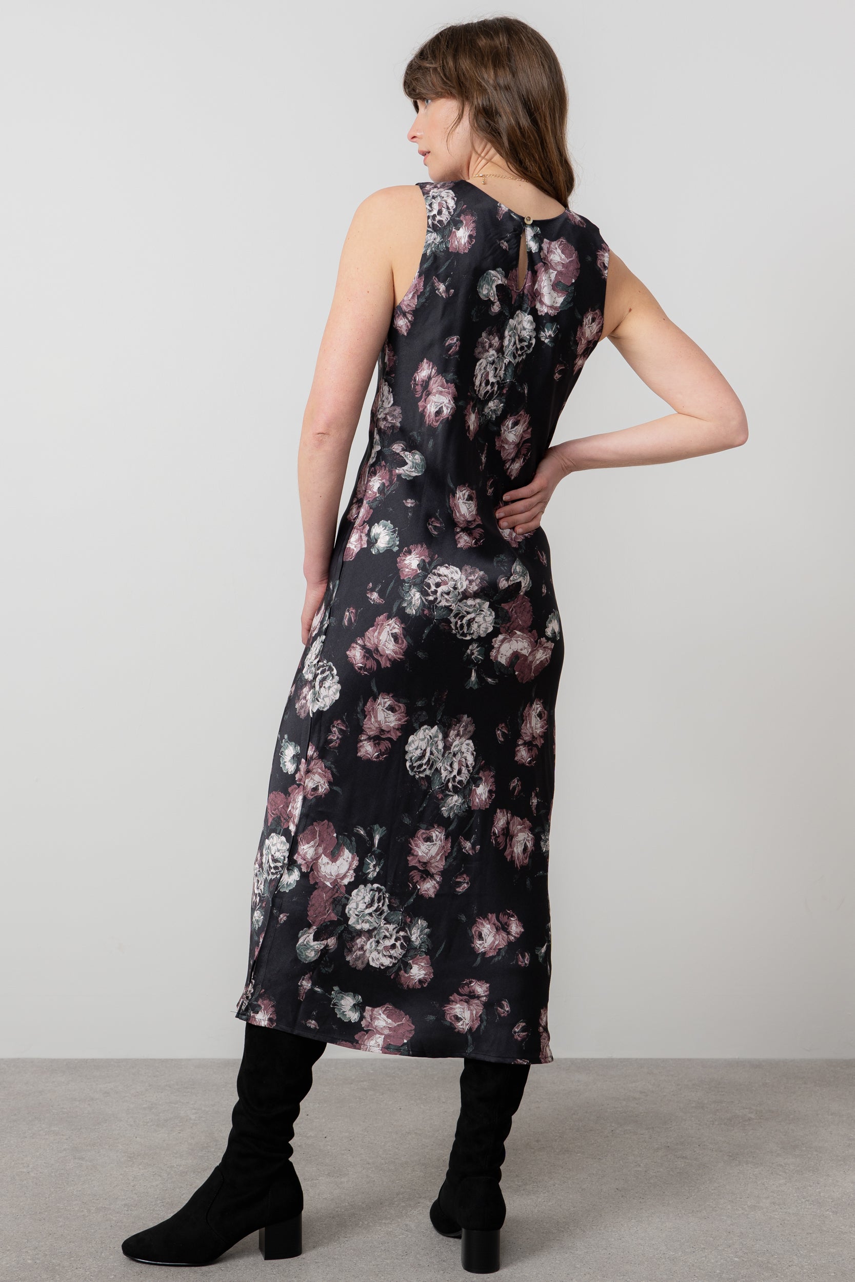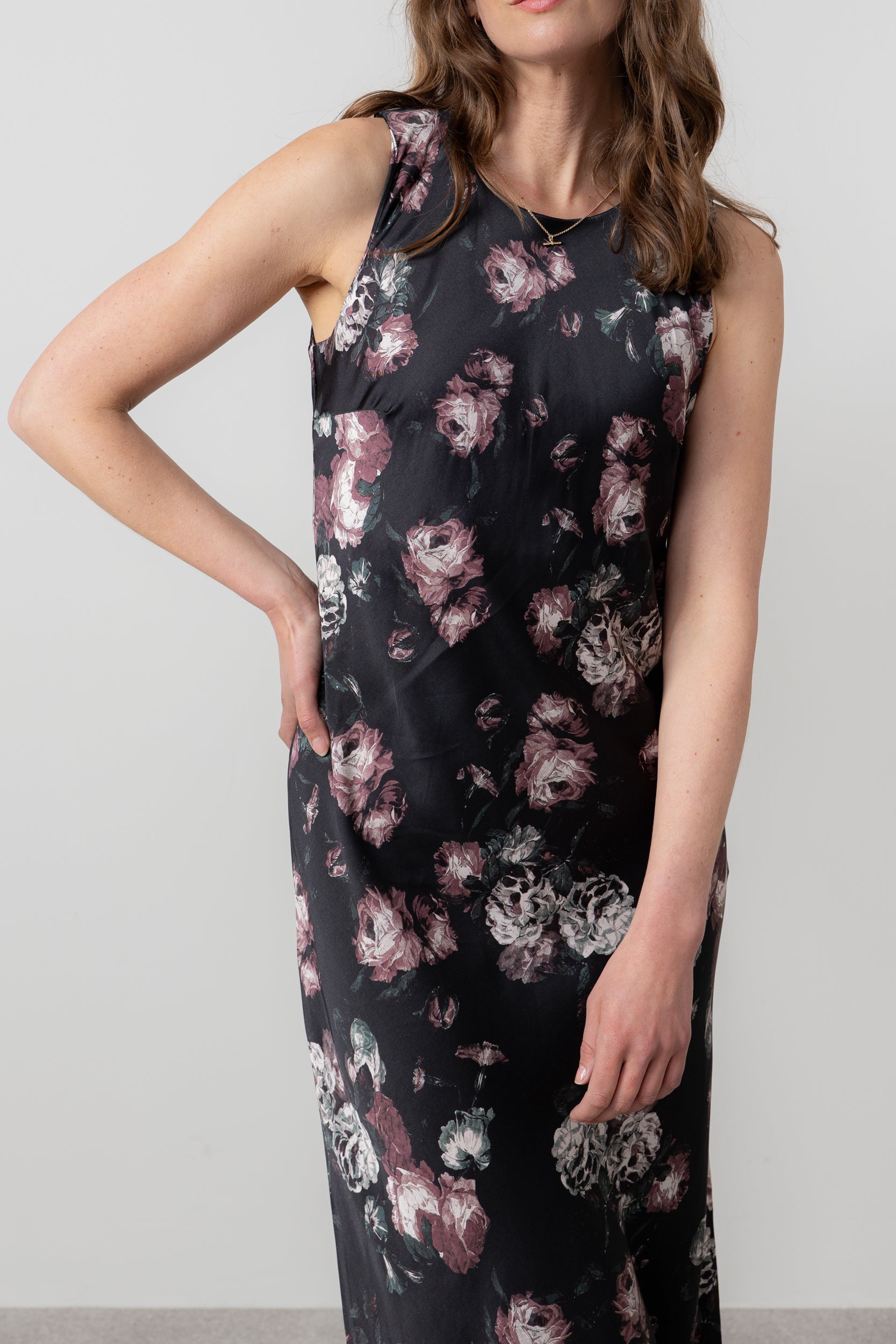 This stunning sleeveless dress is cut on the bias to create a graceful drape and effortless feminine shape. Falling to a midi length, it features a round neckline and a delicate keyhole closure at the back - subtle details that elevate its refined simplicity.