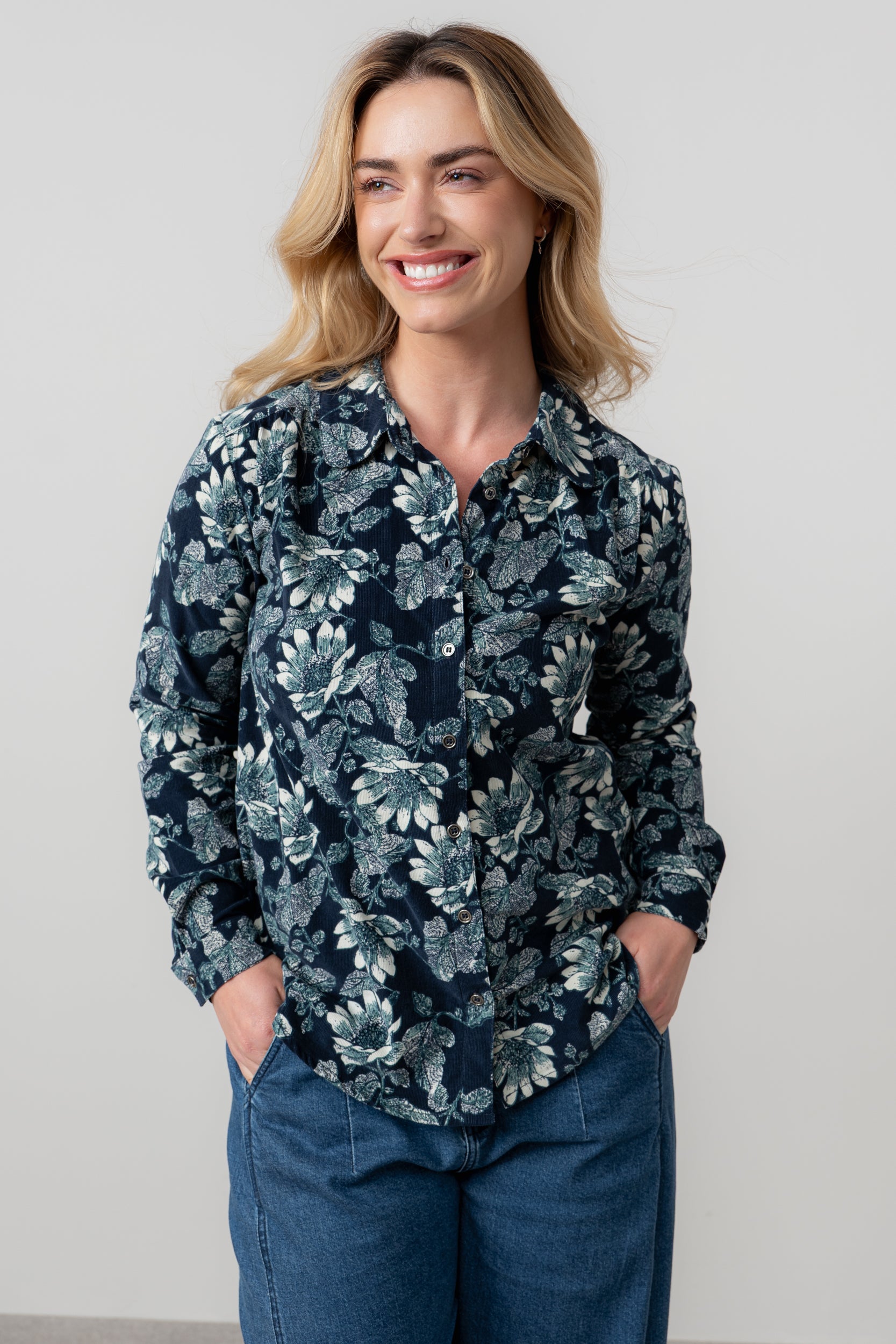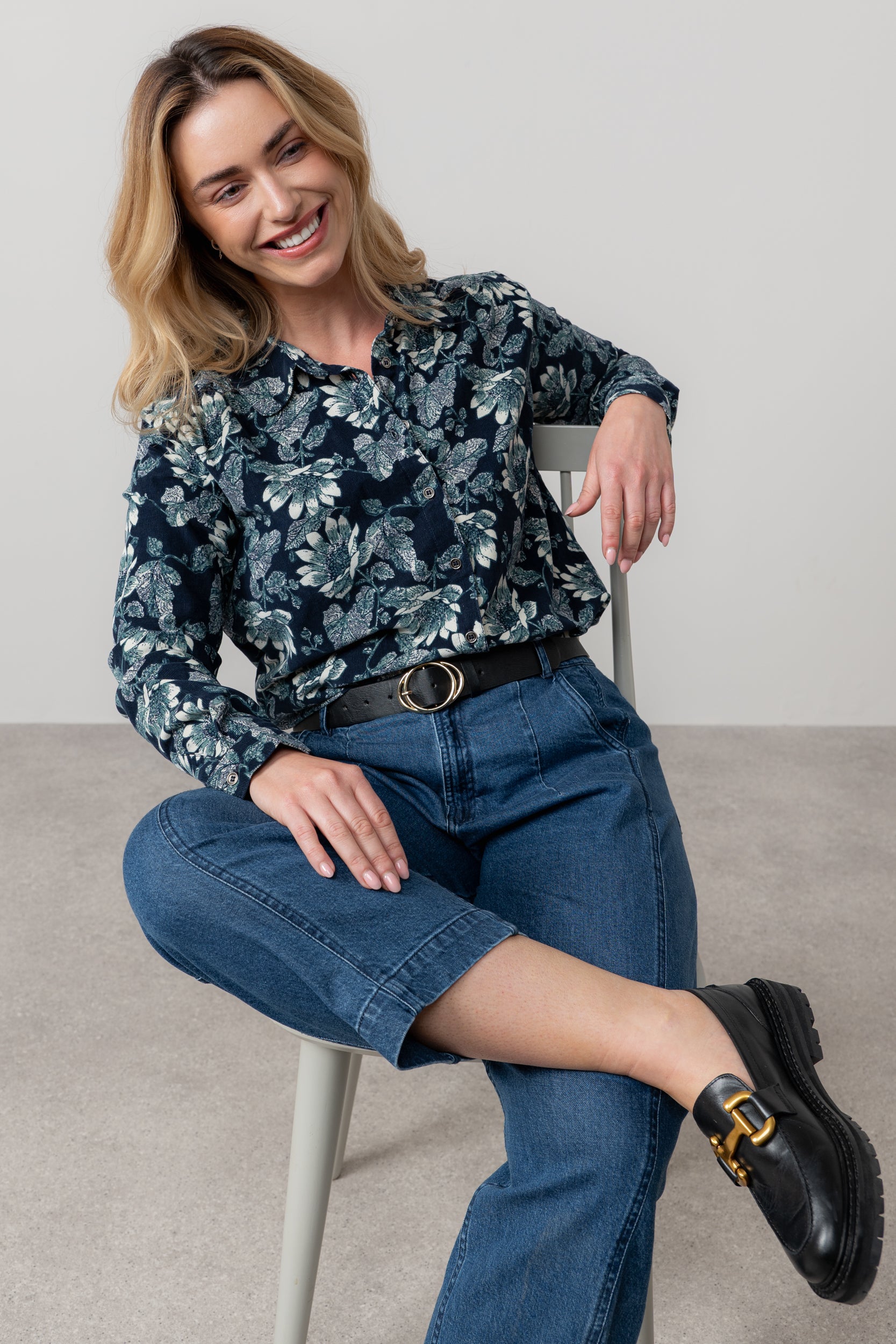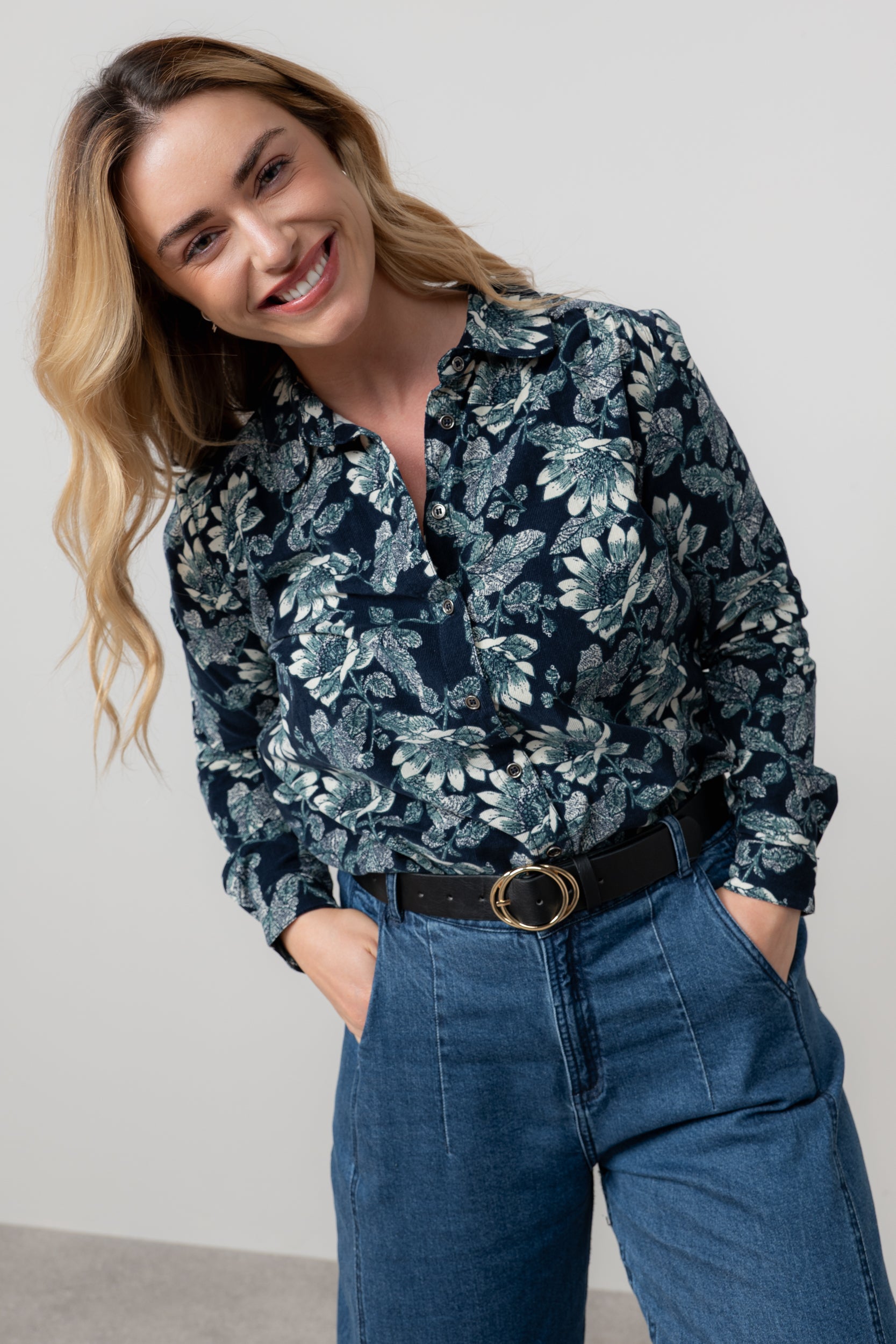 Beech Cotton Pincord Shirt Navy Beech Organic Brushed Cotton Checked Shirt Multicoloured Beech Geometric Print Shirt Navy Beech Floral Print Shirt Green