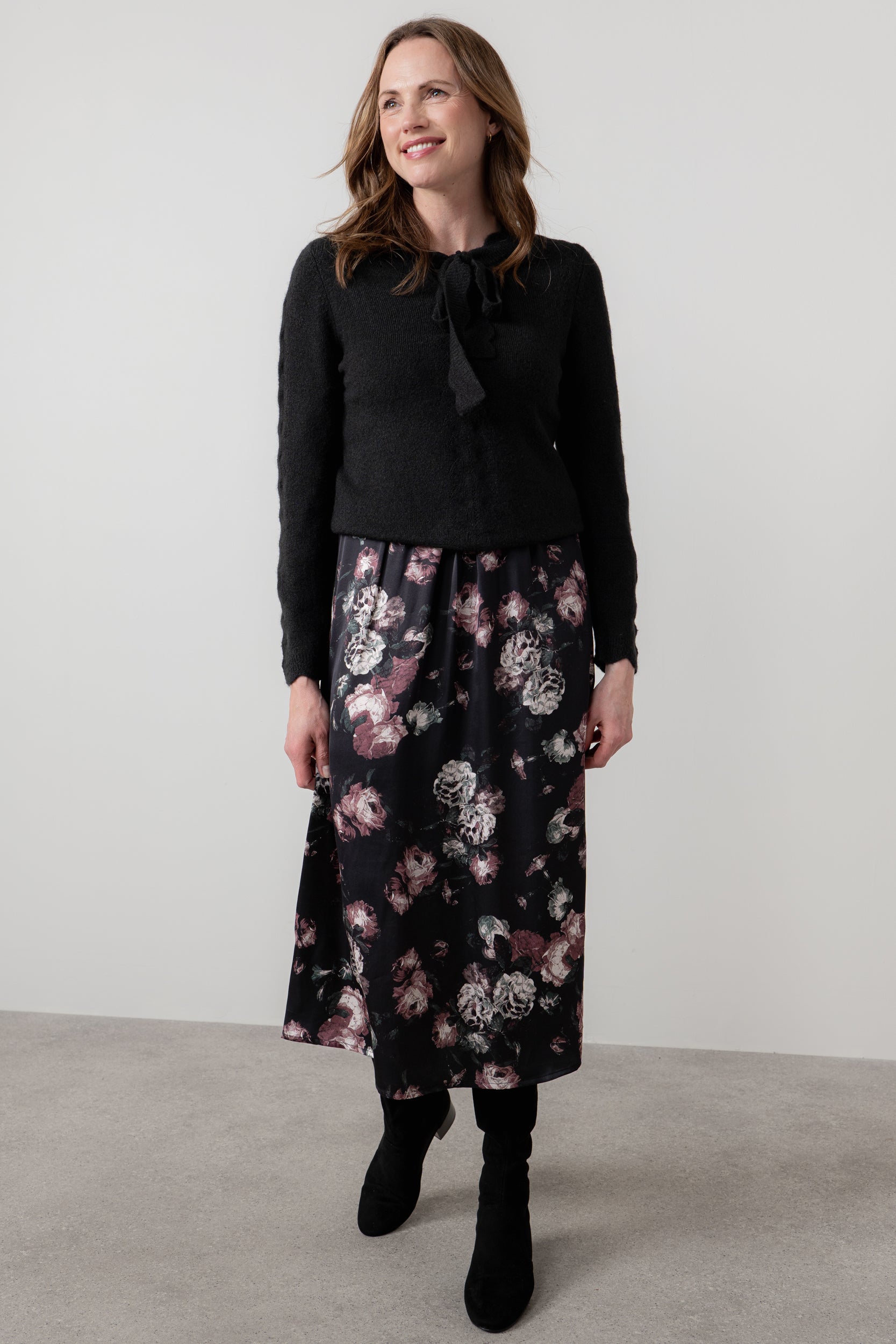 Imogen print is a romantic celebration of nature in all its abundance. Painterly petals and soft tones come to life in this digital design, inspired by cottage garden blooms and the quiet beauty of late summer. With its graceful blossoming roses and statement scale, it brings a fresh sense of femininity to the season.