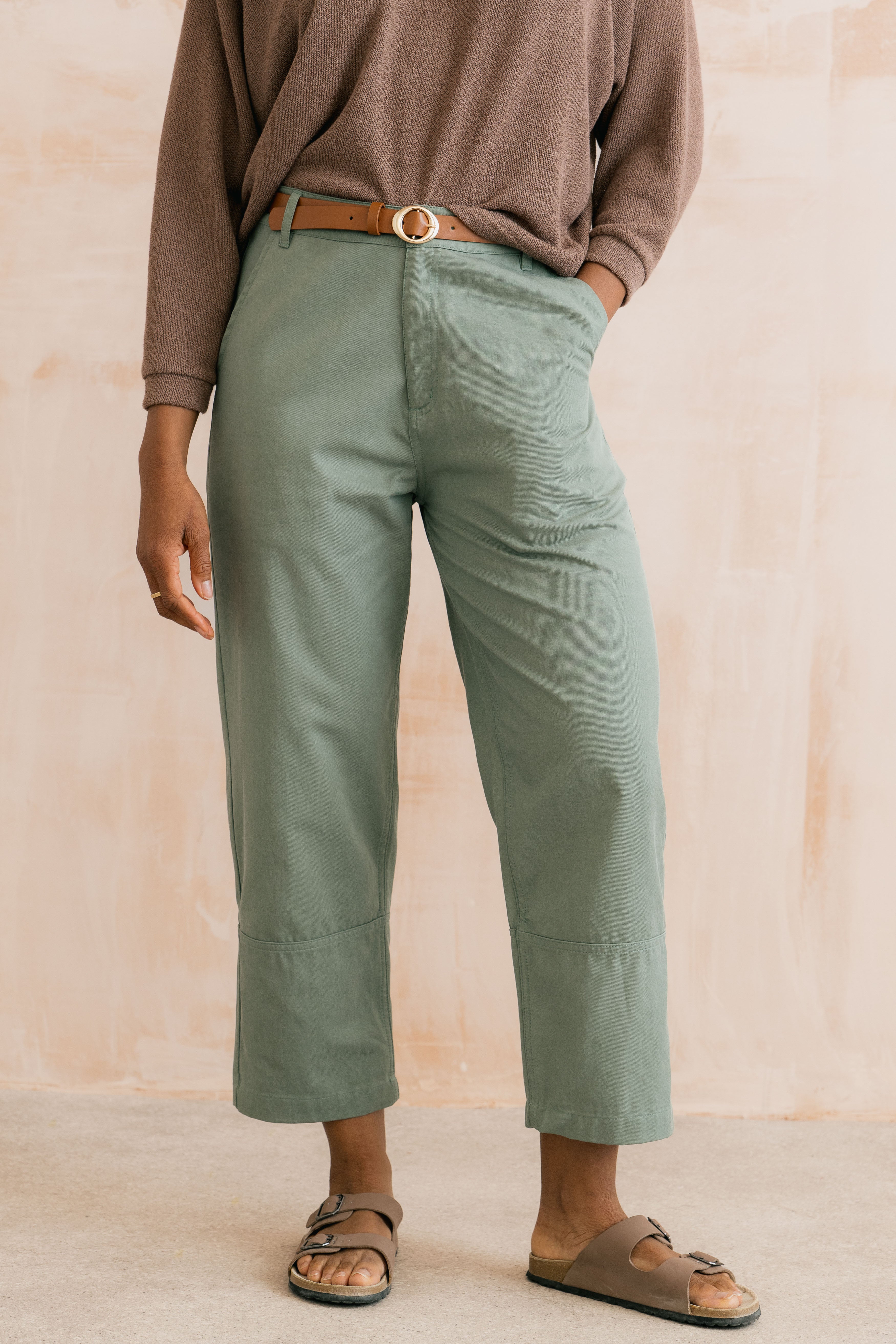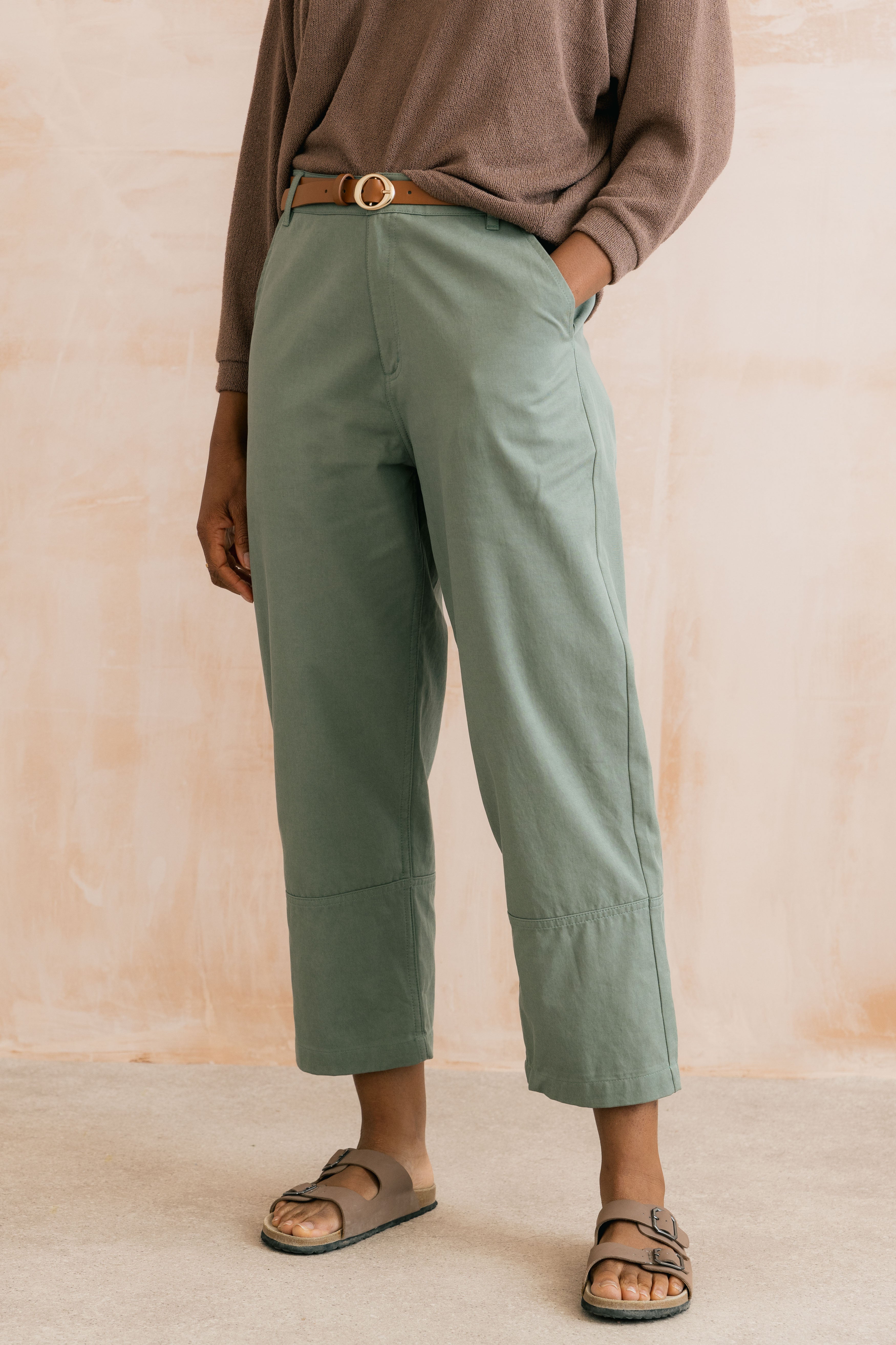 An on trend take on tapered leg trousers, the Clarissa combines ease of movement at the hip and leg and slightly narrows to the ankle with a seamed deep cuff to create a slightly tapered silhouette.