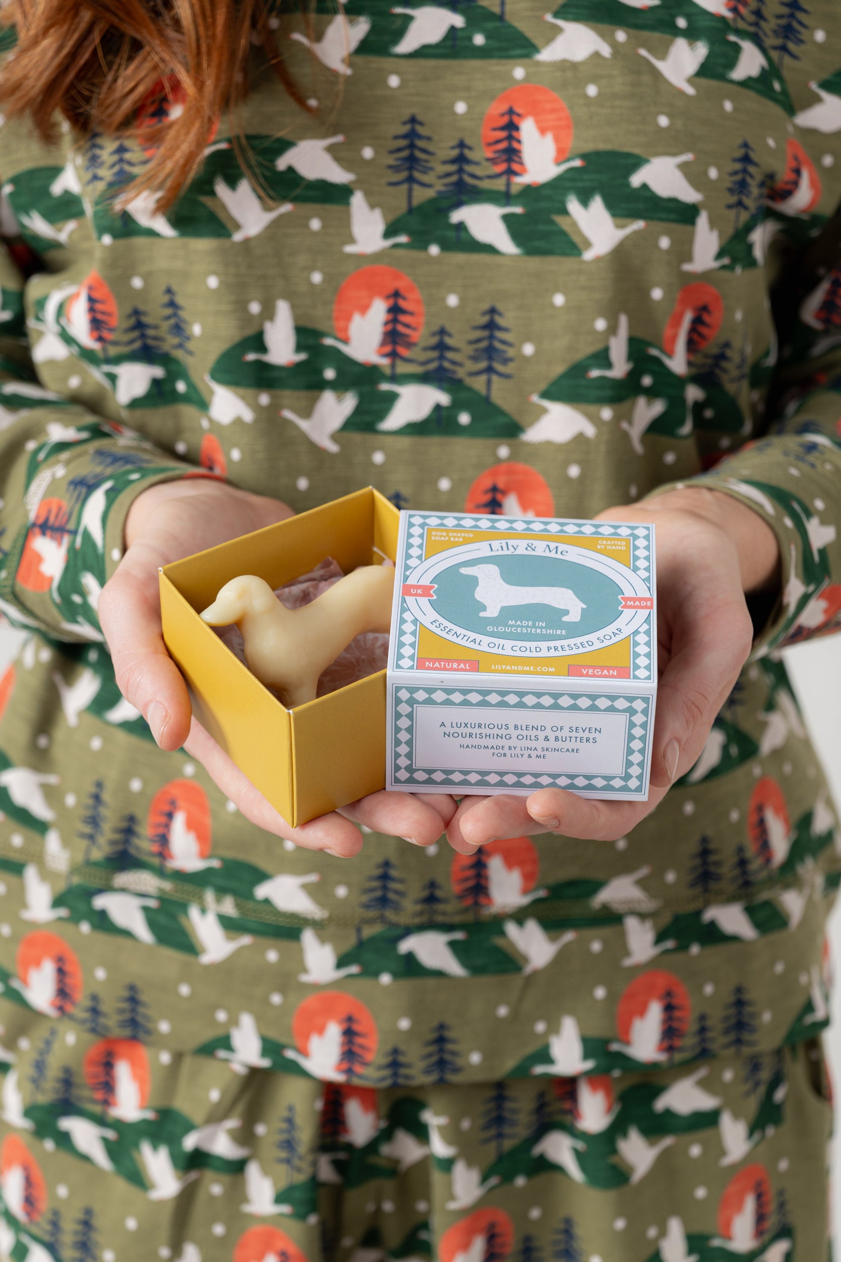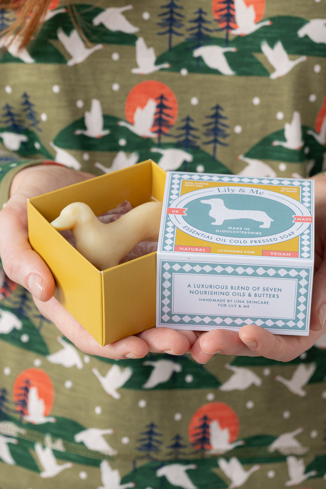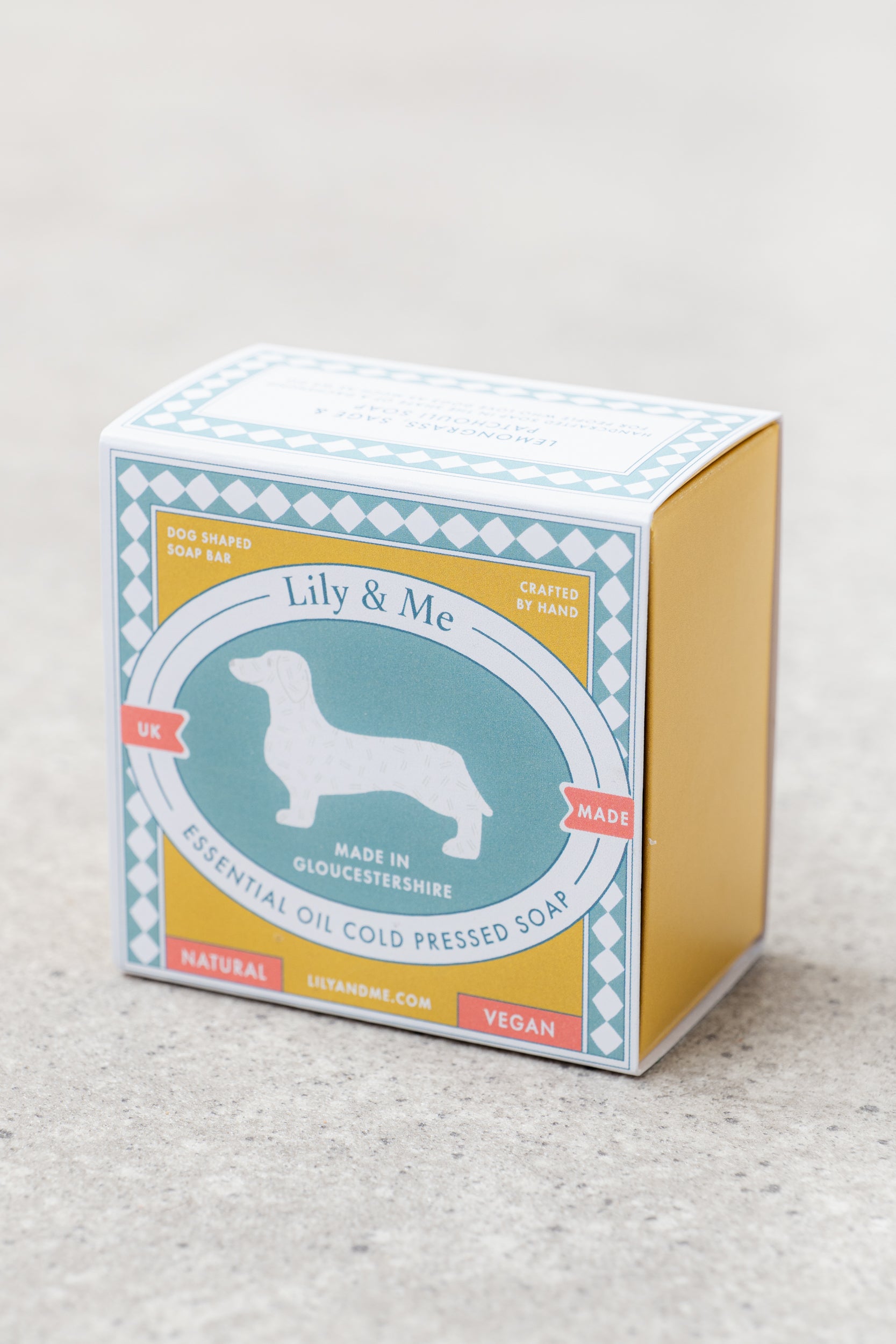 A joyful boxed Dachshund soap, perfect for dog lovers!