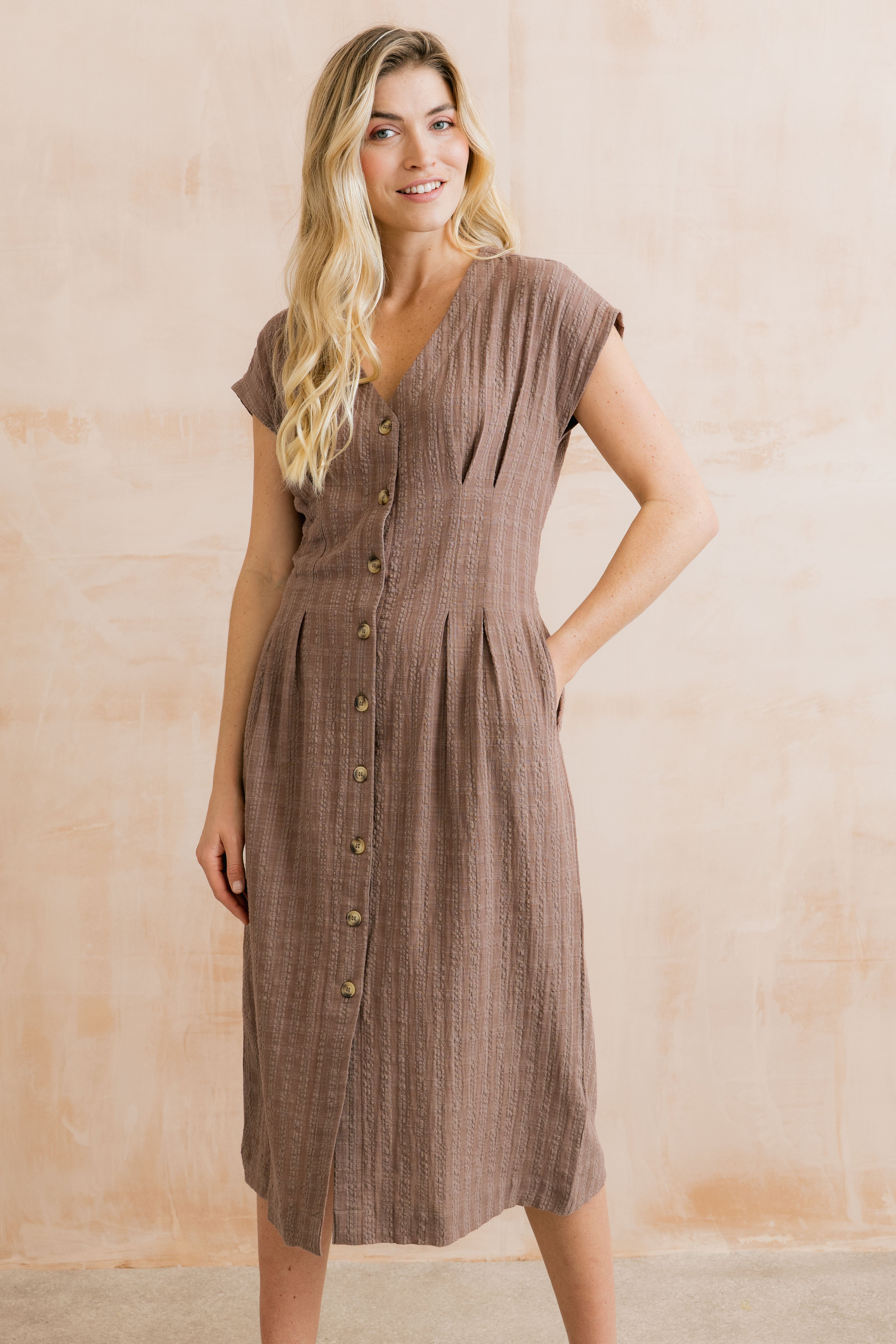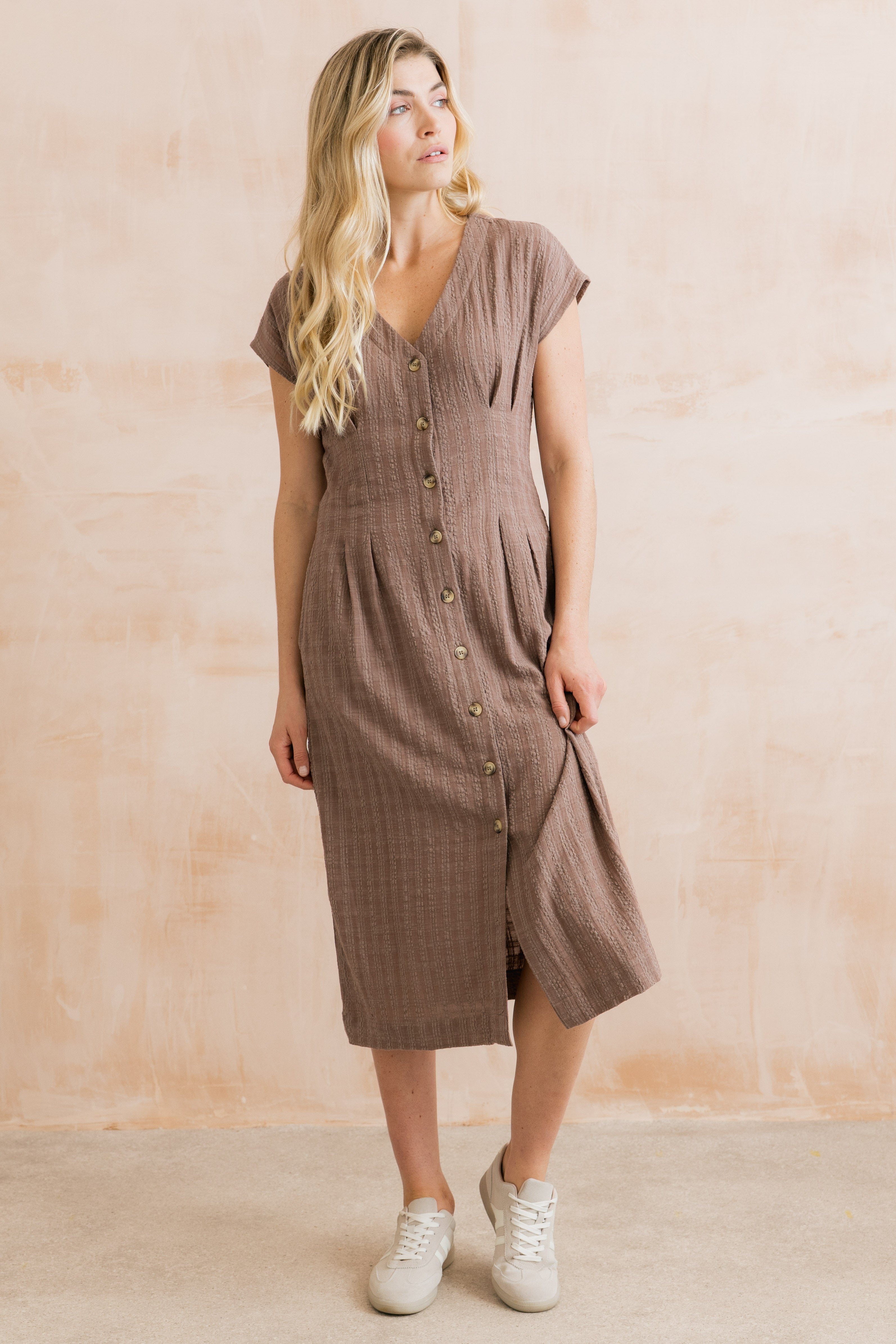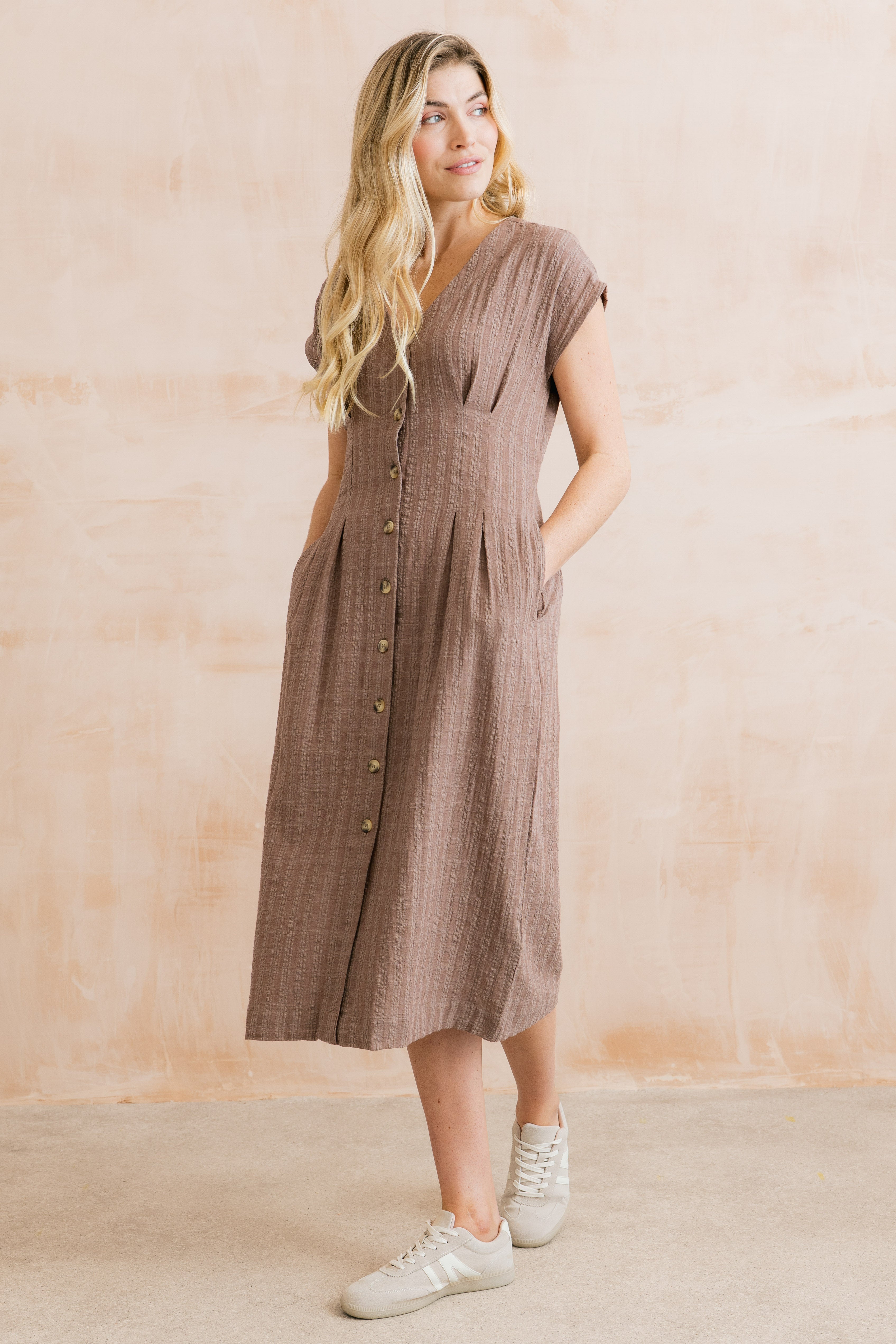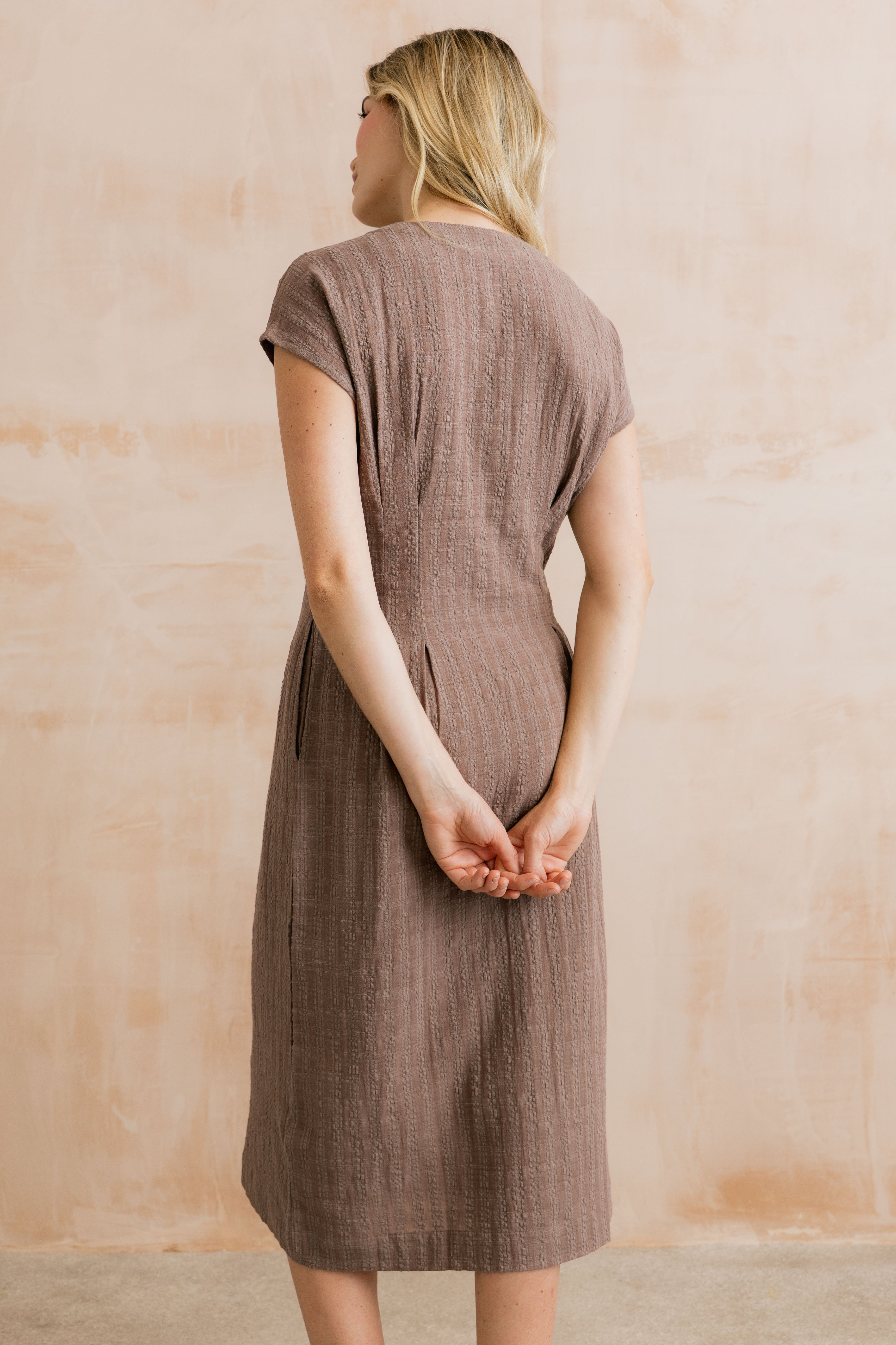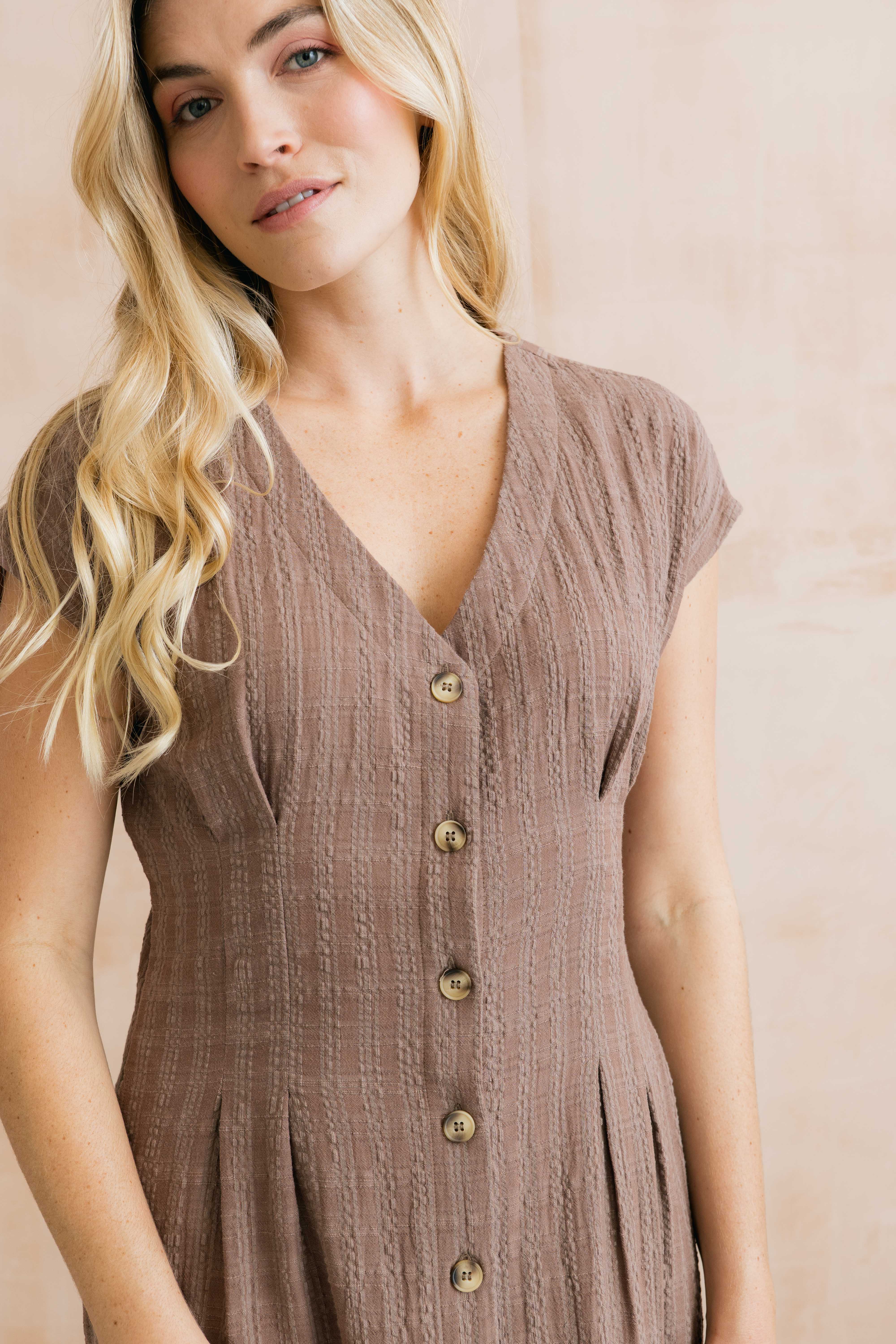 Drift Textured Seersucker Midi Dress Mocha