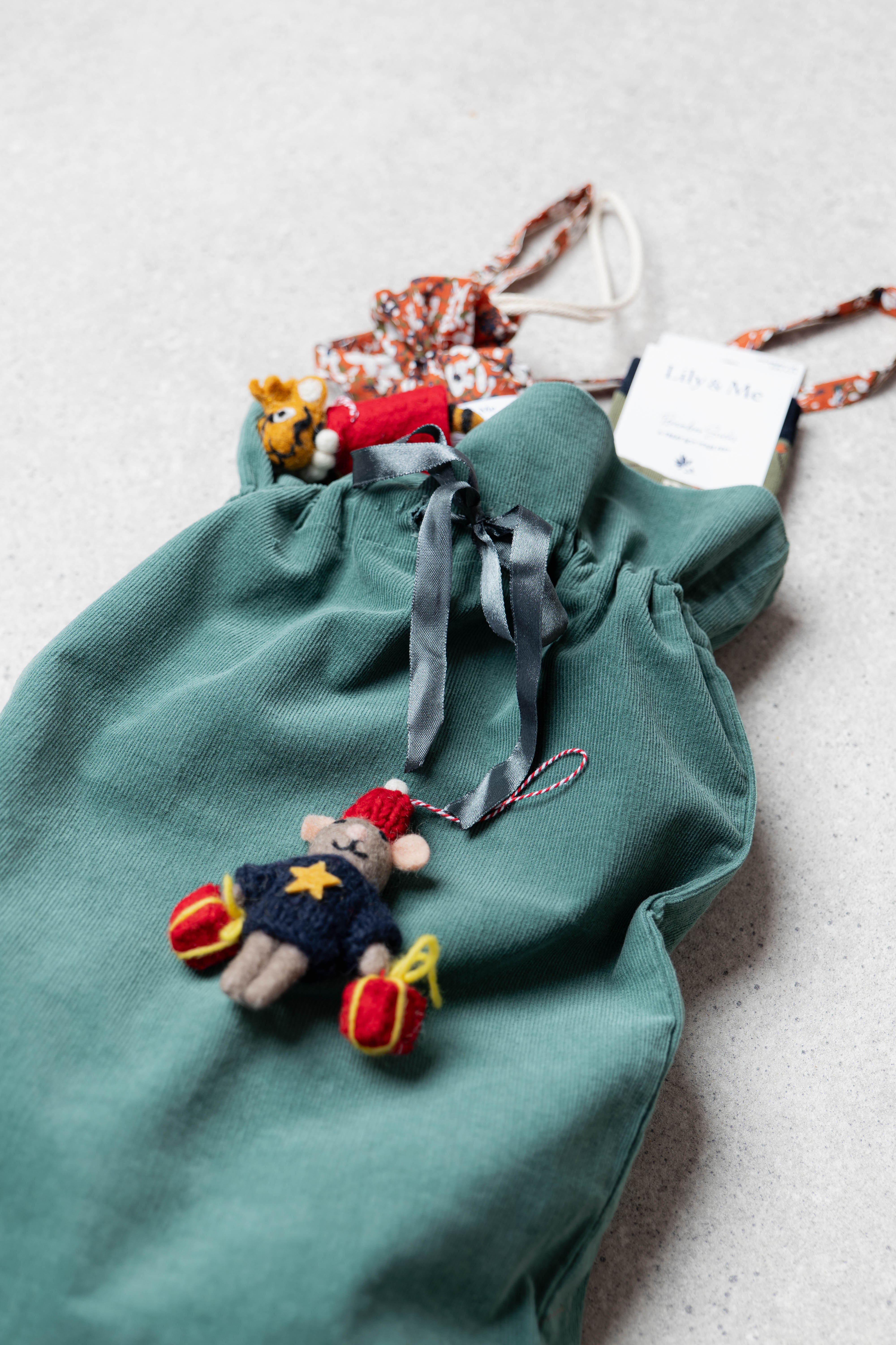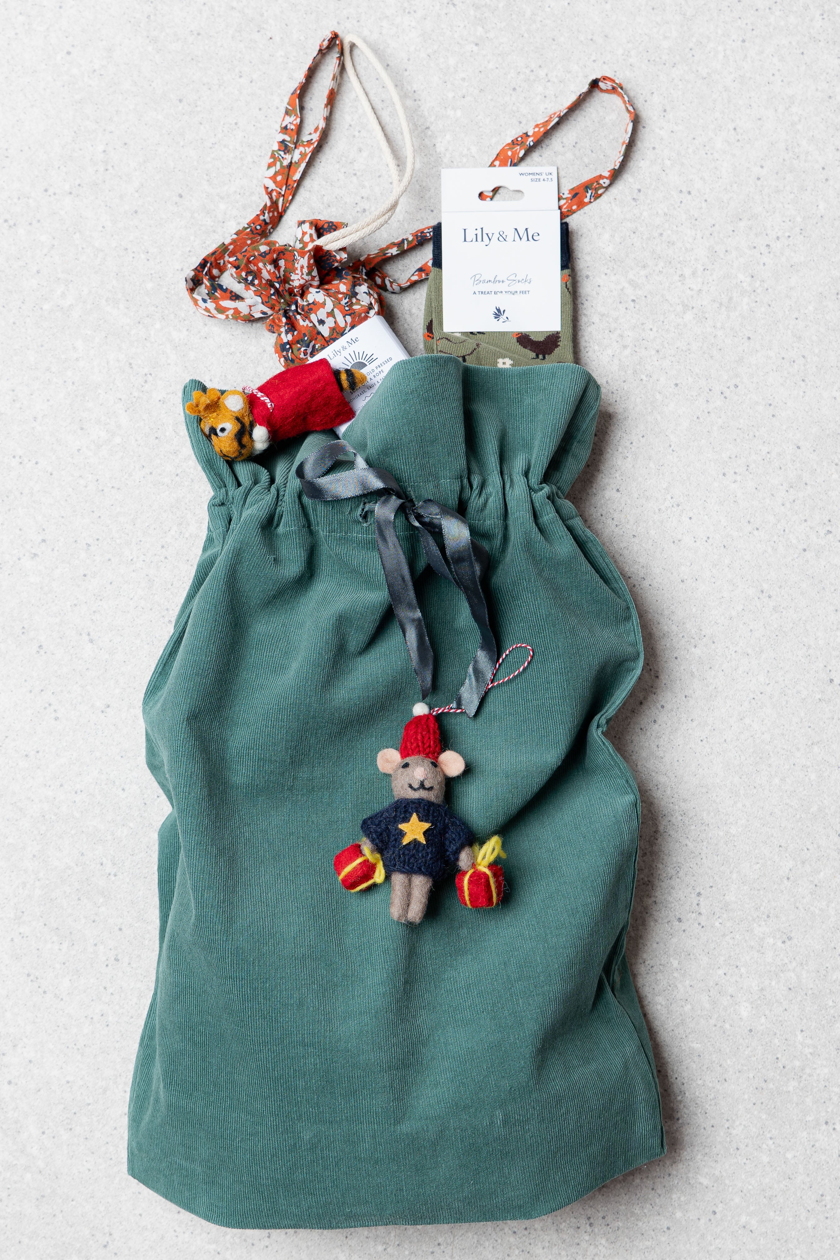 Beautiful printed cord drawstring giftbags. A lovely way to wrap your gifts, our bags offer a sustainable option. Made from soft corduroy and available in a variety of bespoke prints.