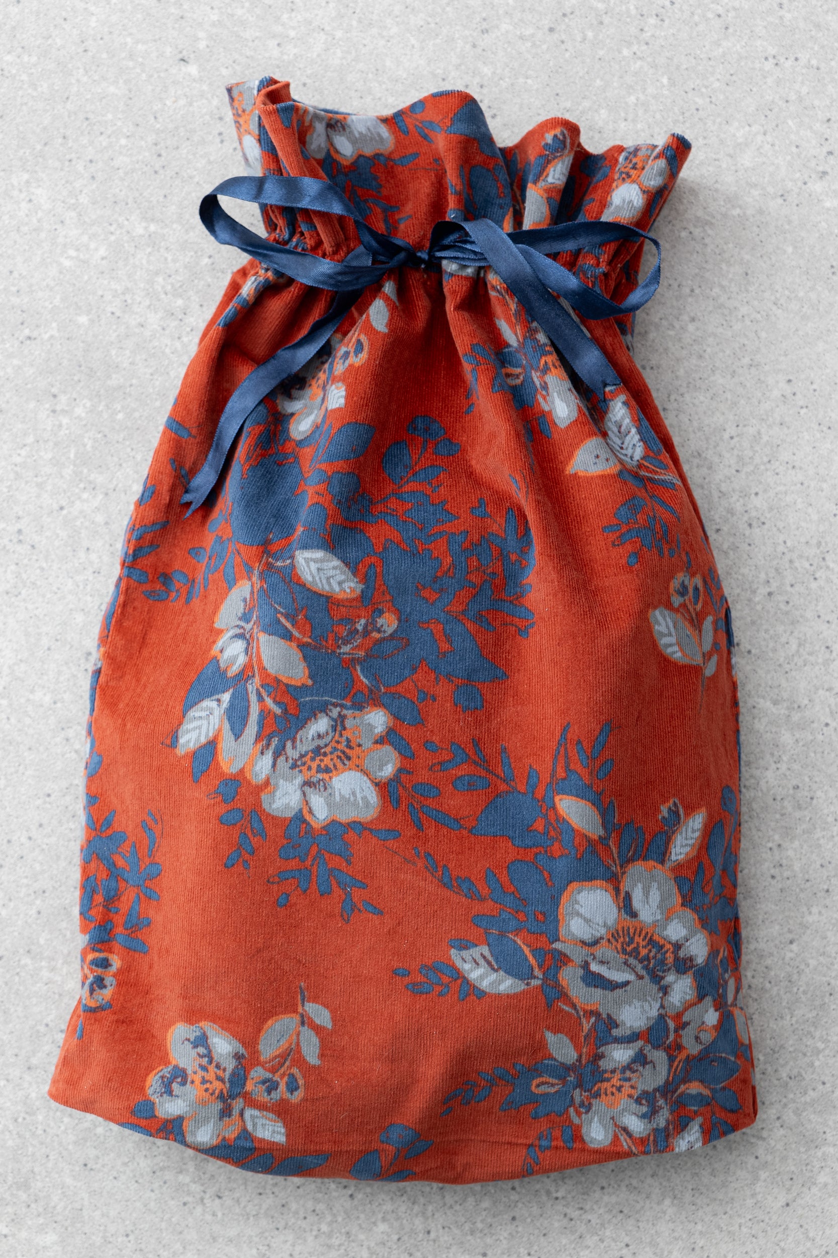 Beautiful printed cord drawstring giftbags. A lovely way to wrap your gifts, our bags offer a sustainable option. Made from soft corduroy and available in a variety of bespoke prints.