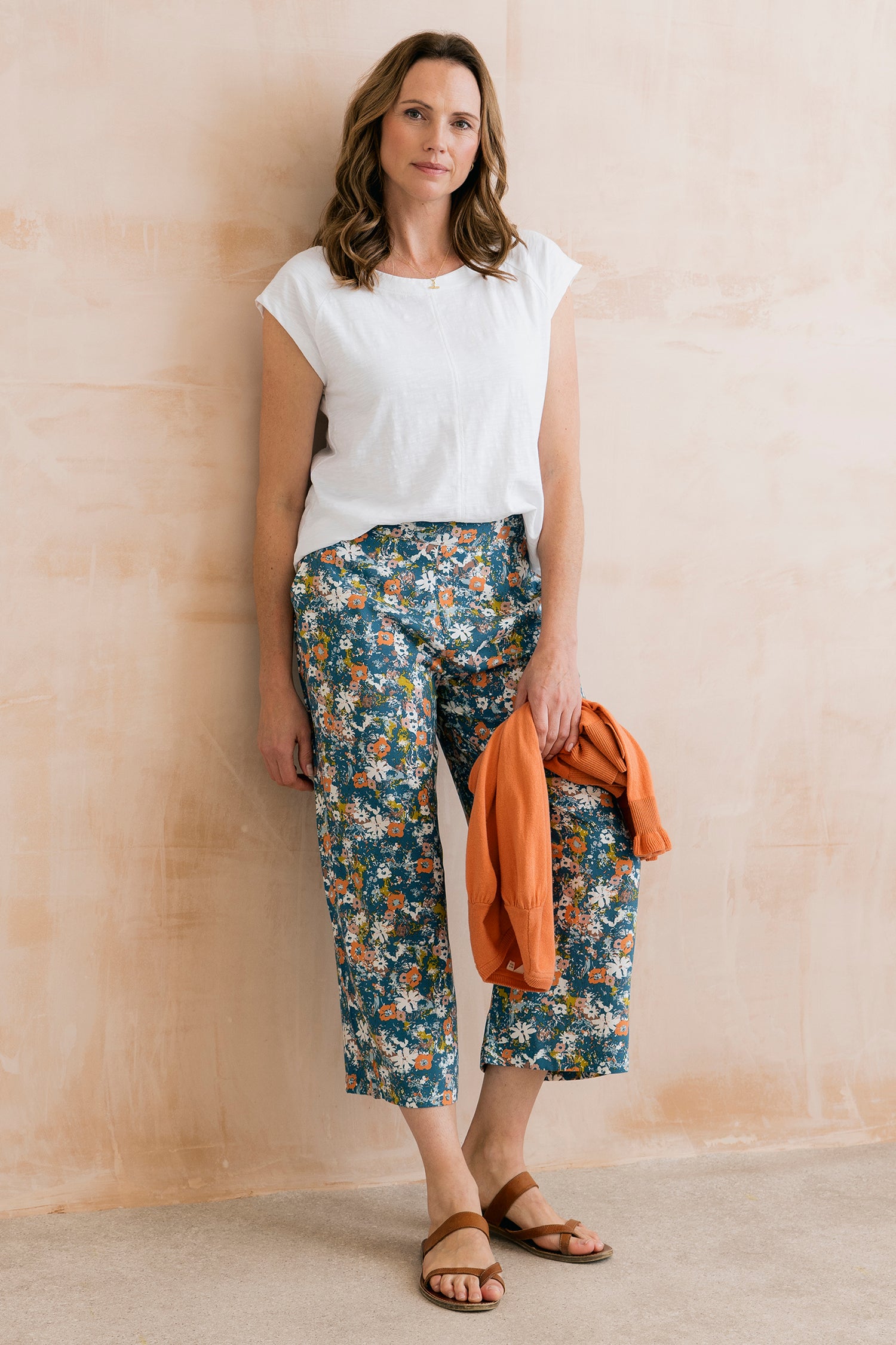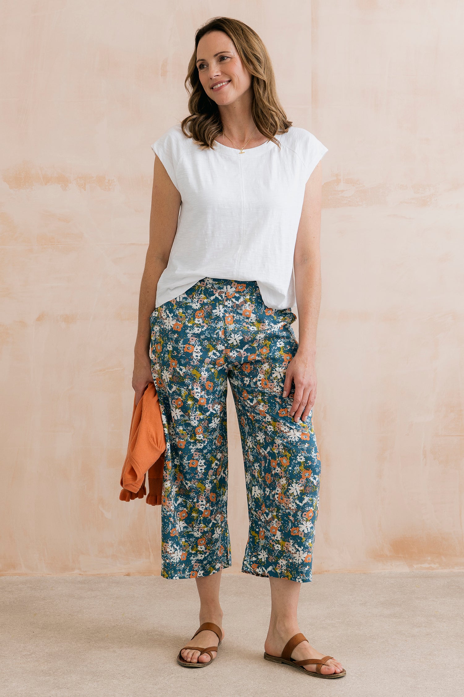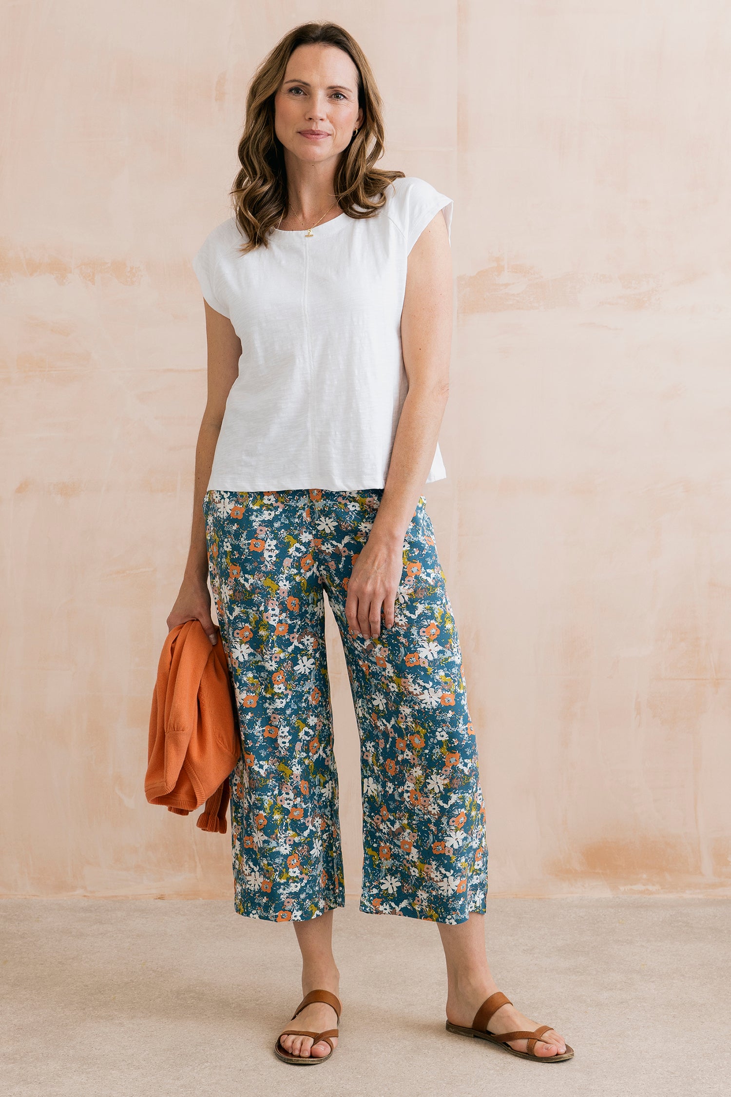 With a flat front and elasticated back waist, the flattering cropped wide-leg shape skims the body for a perfect fit. Pair it with a simple t-shirt for an easy everyday look. .