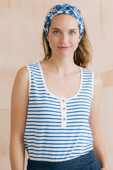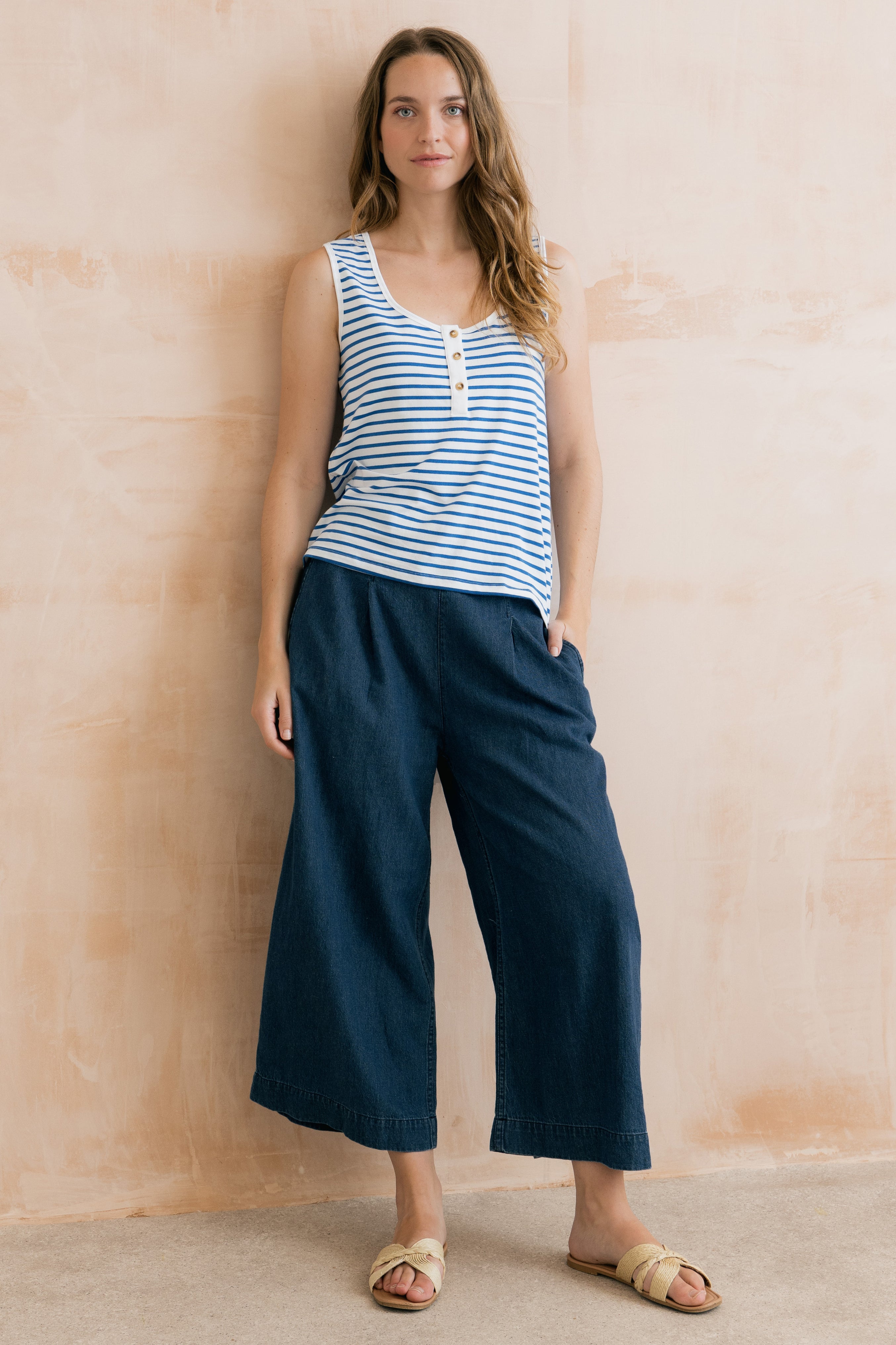 An easy wearing essential, the Haze vest has a deep round neck with a half buttoned placket, built up back and wide straps.