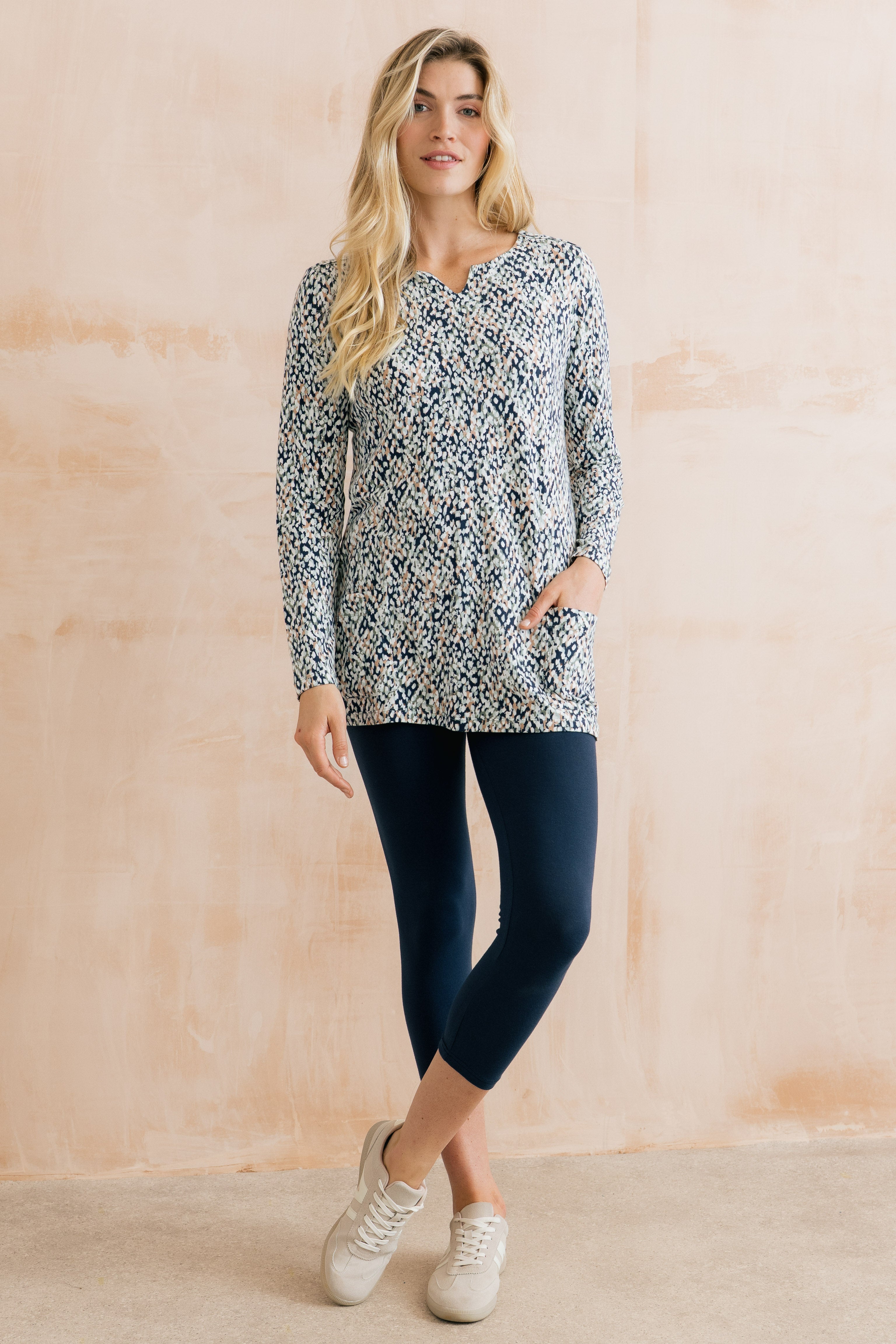 With a bespoke fern print, the Maple Tunic is perfect for an easy day time look. With full length sleeves, a v-notch neckline and a curved hem.