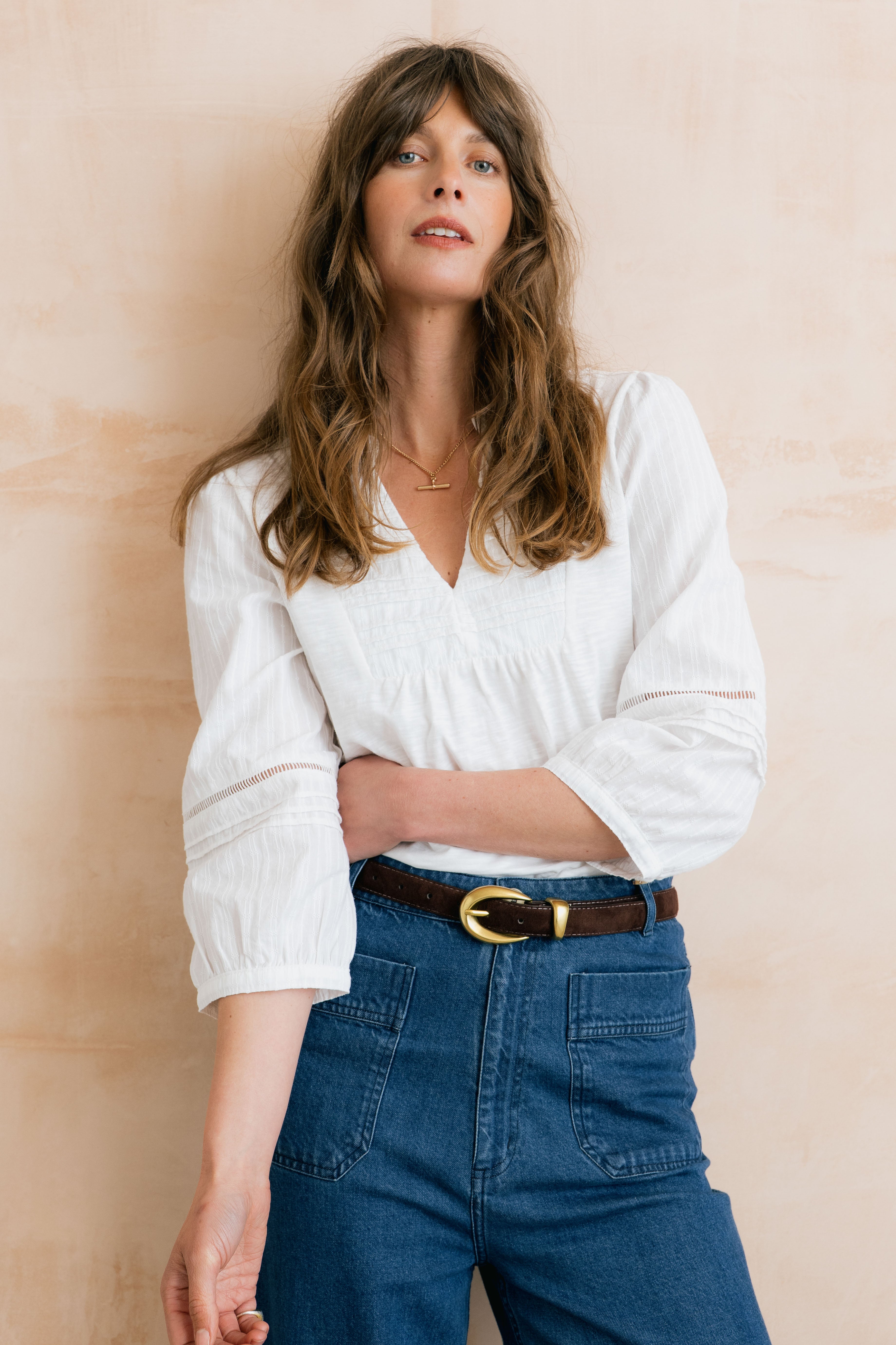 A real dress up or down top, the Marie Blouse looks stunning paired with denim or tucked into linen trousers.