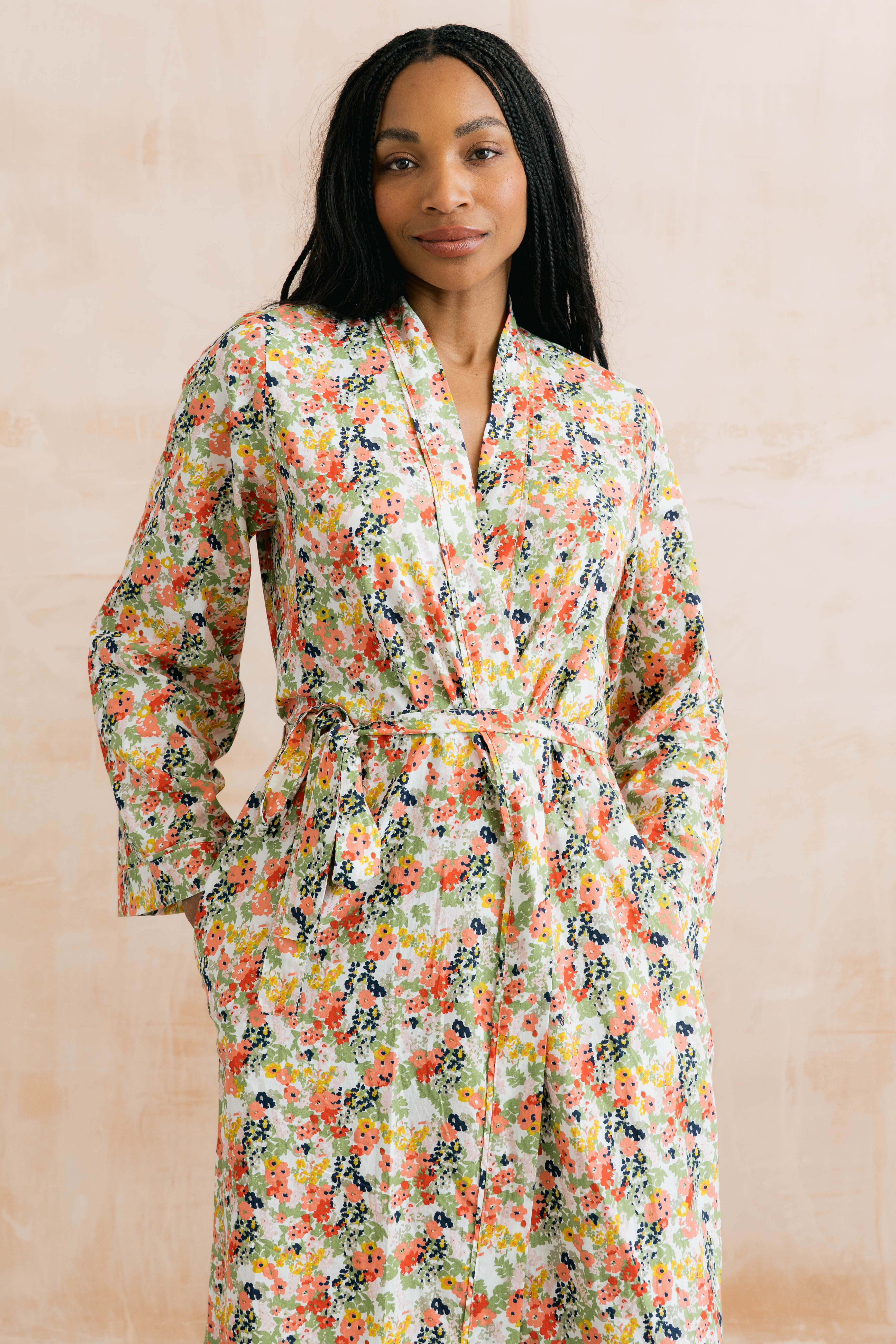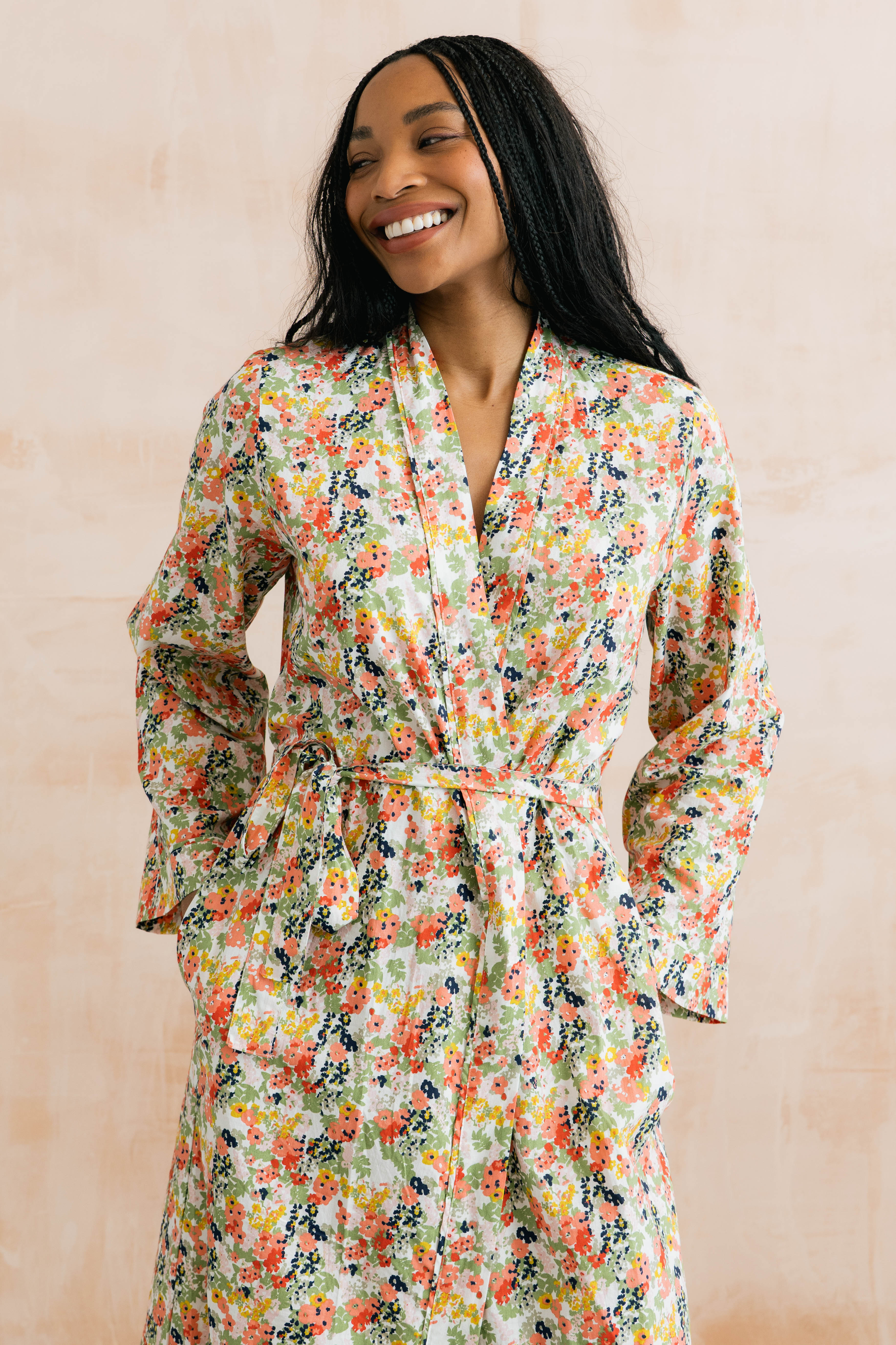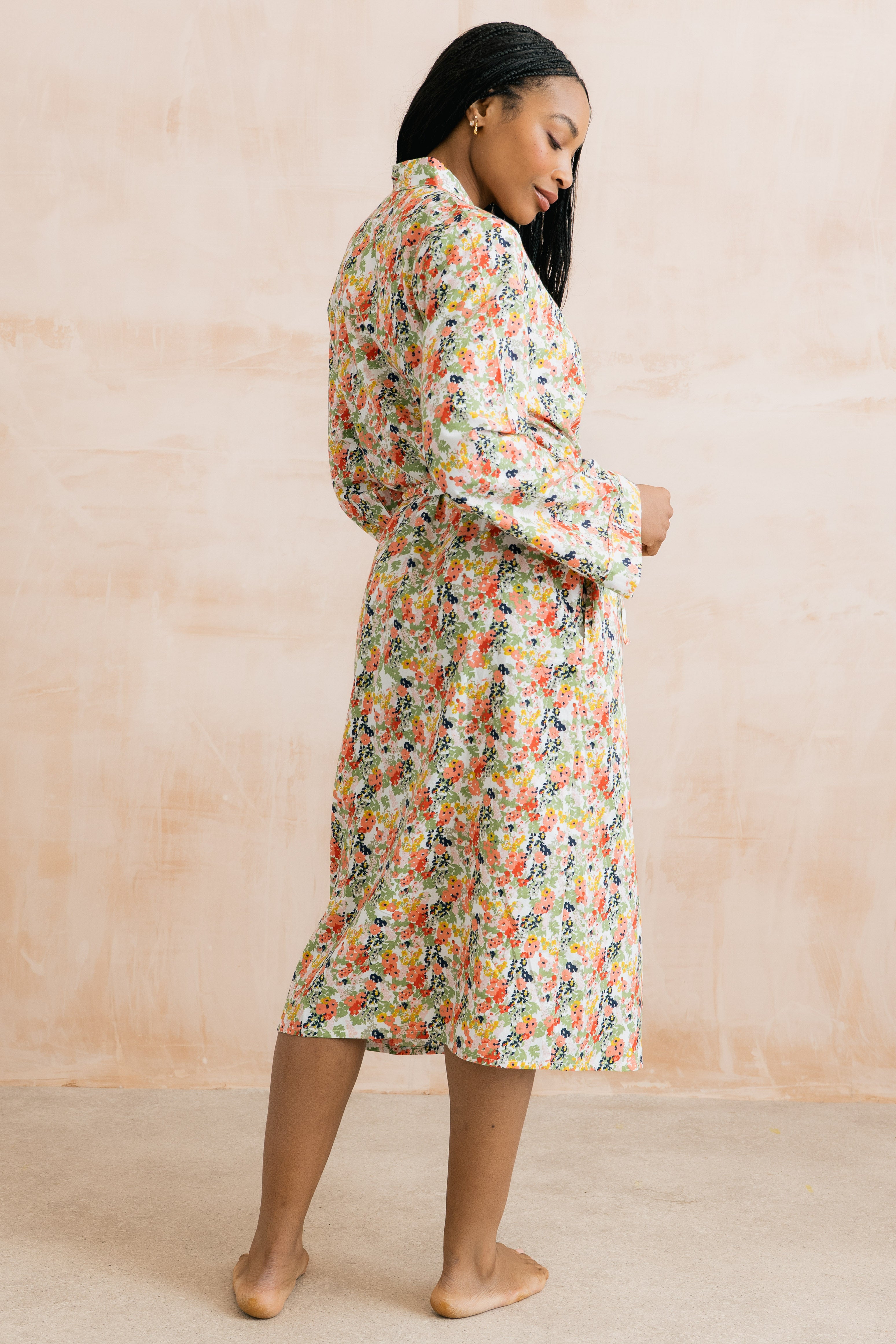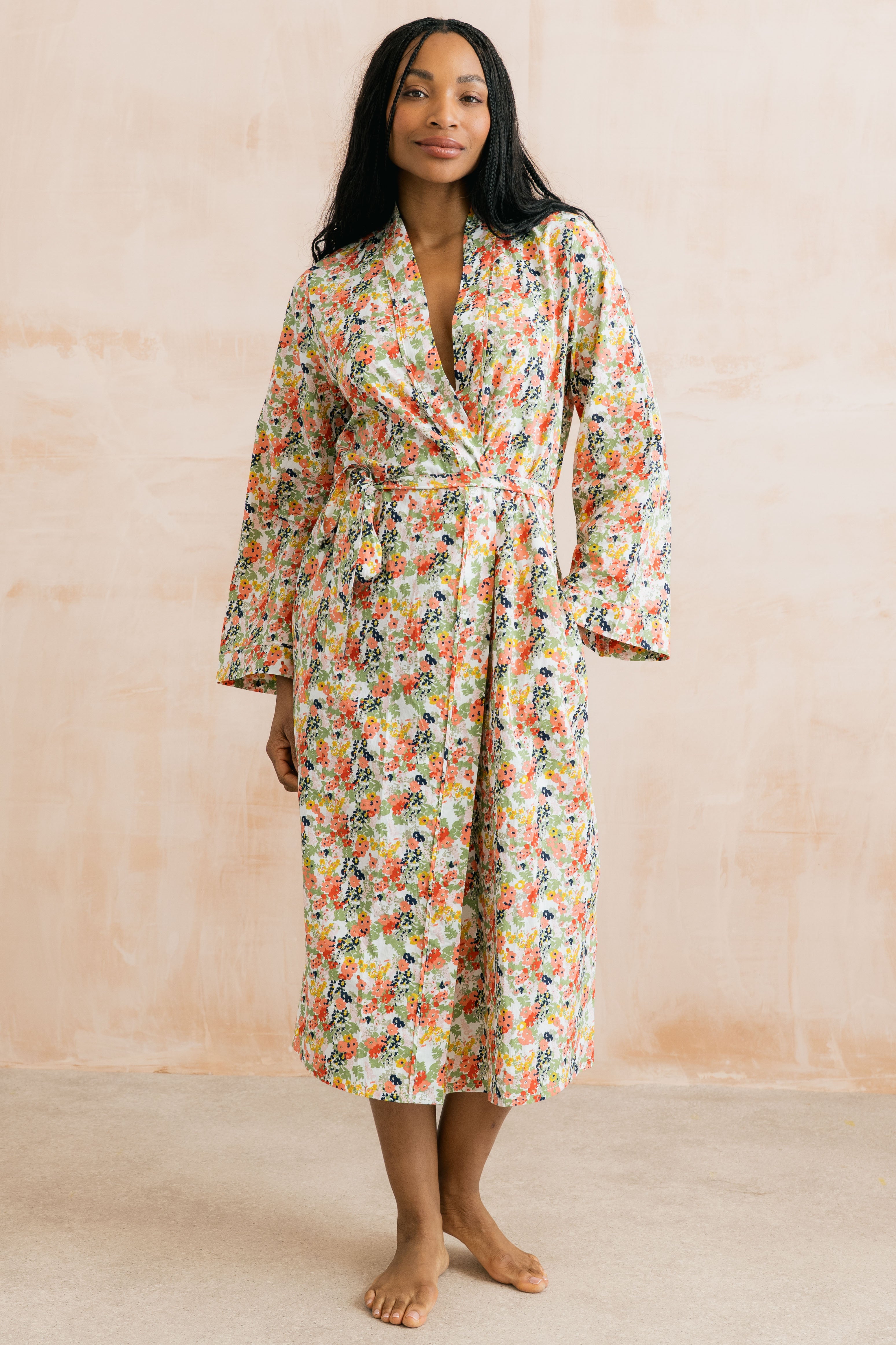 The Mayflower Dressing Gown is crafted from super soft organic cotton featuring our bespoke floral ditsy print.