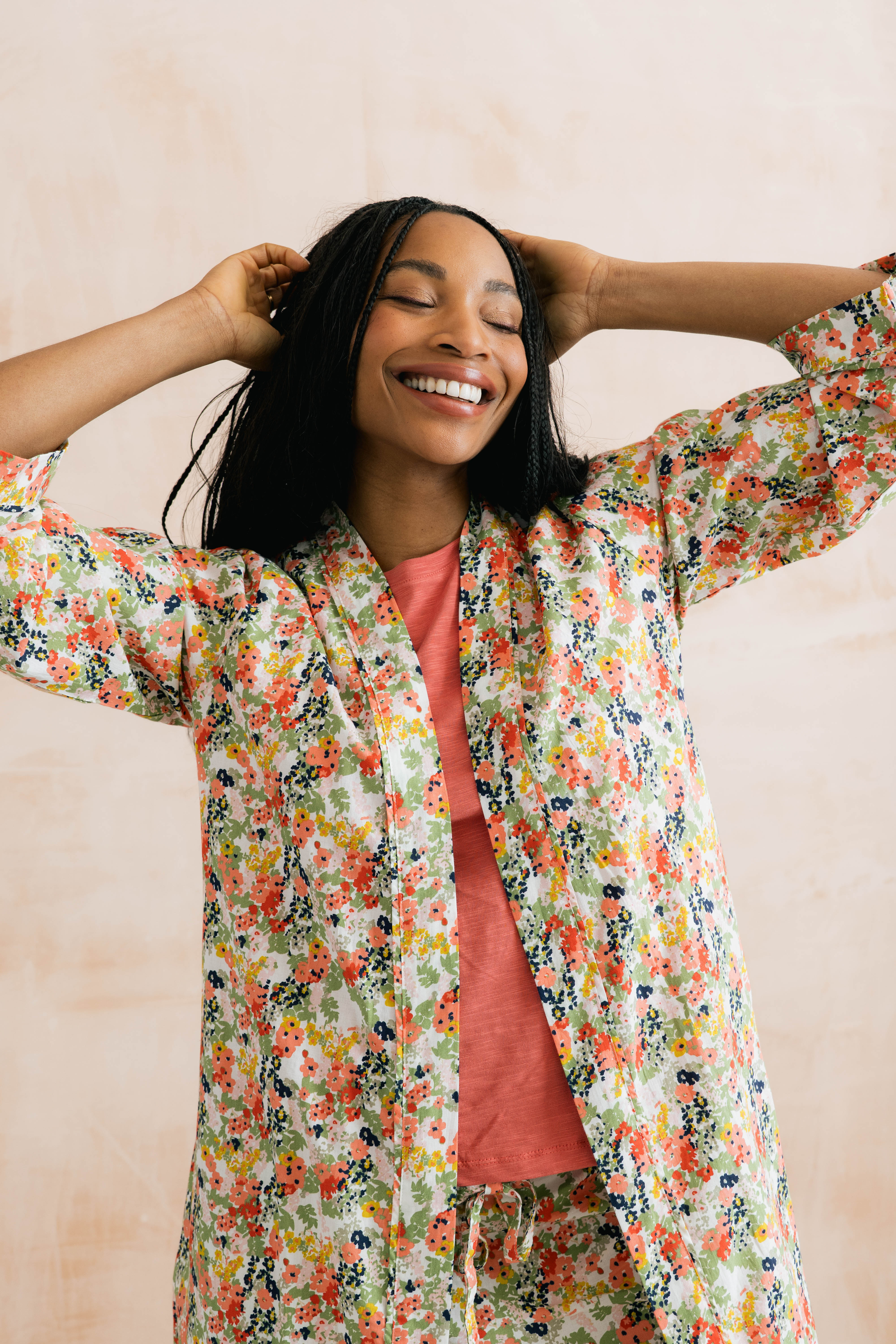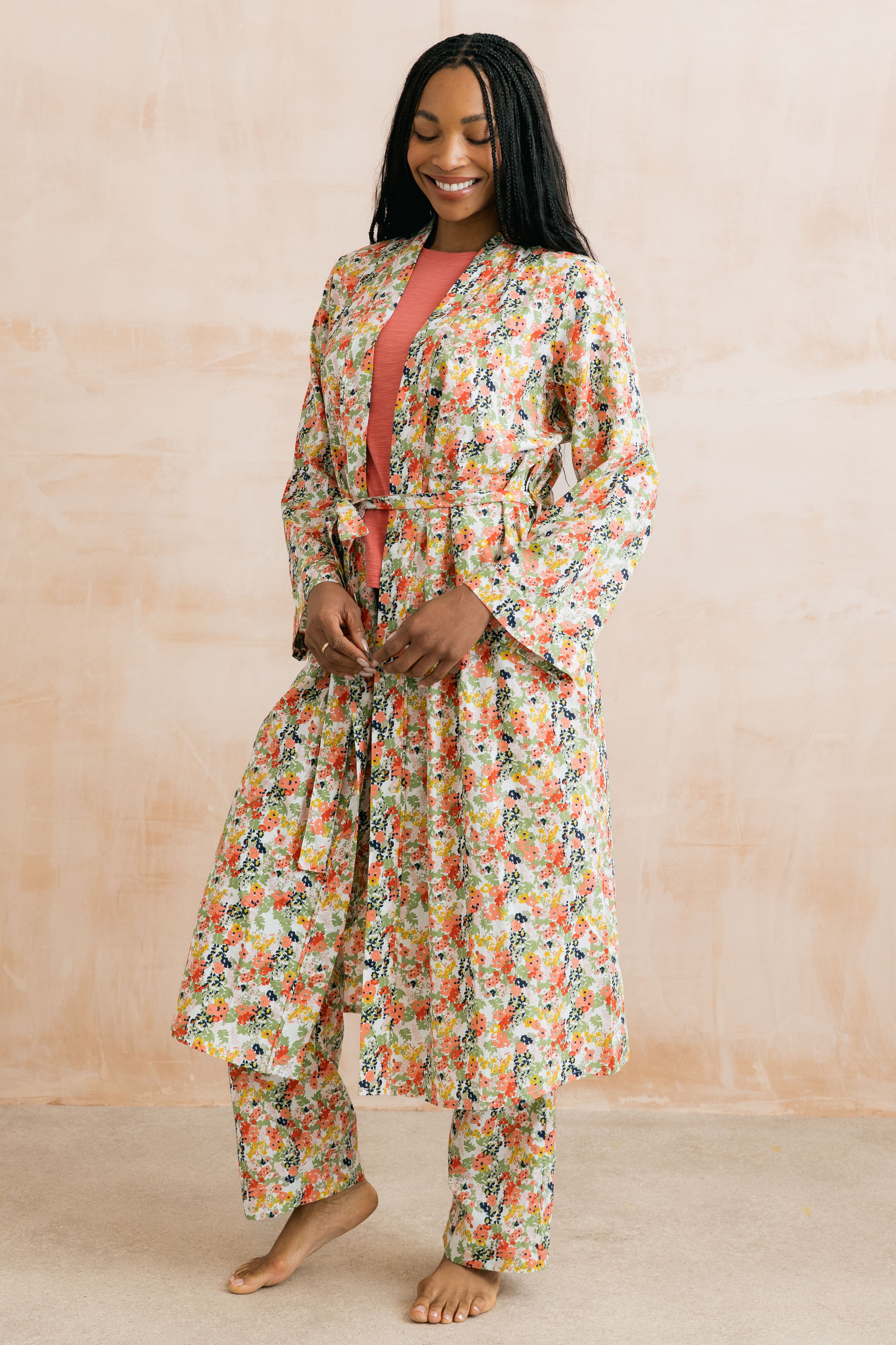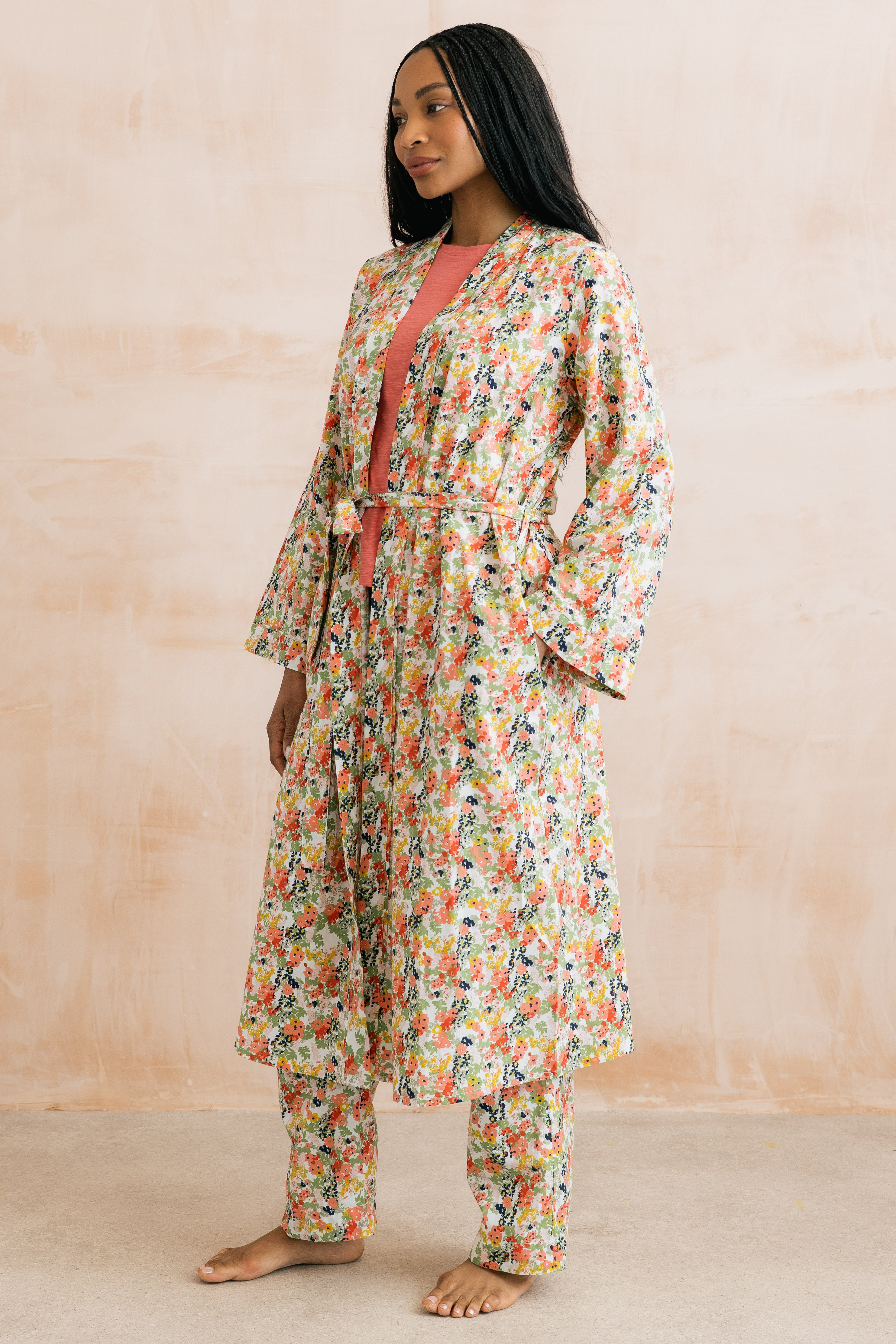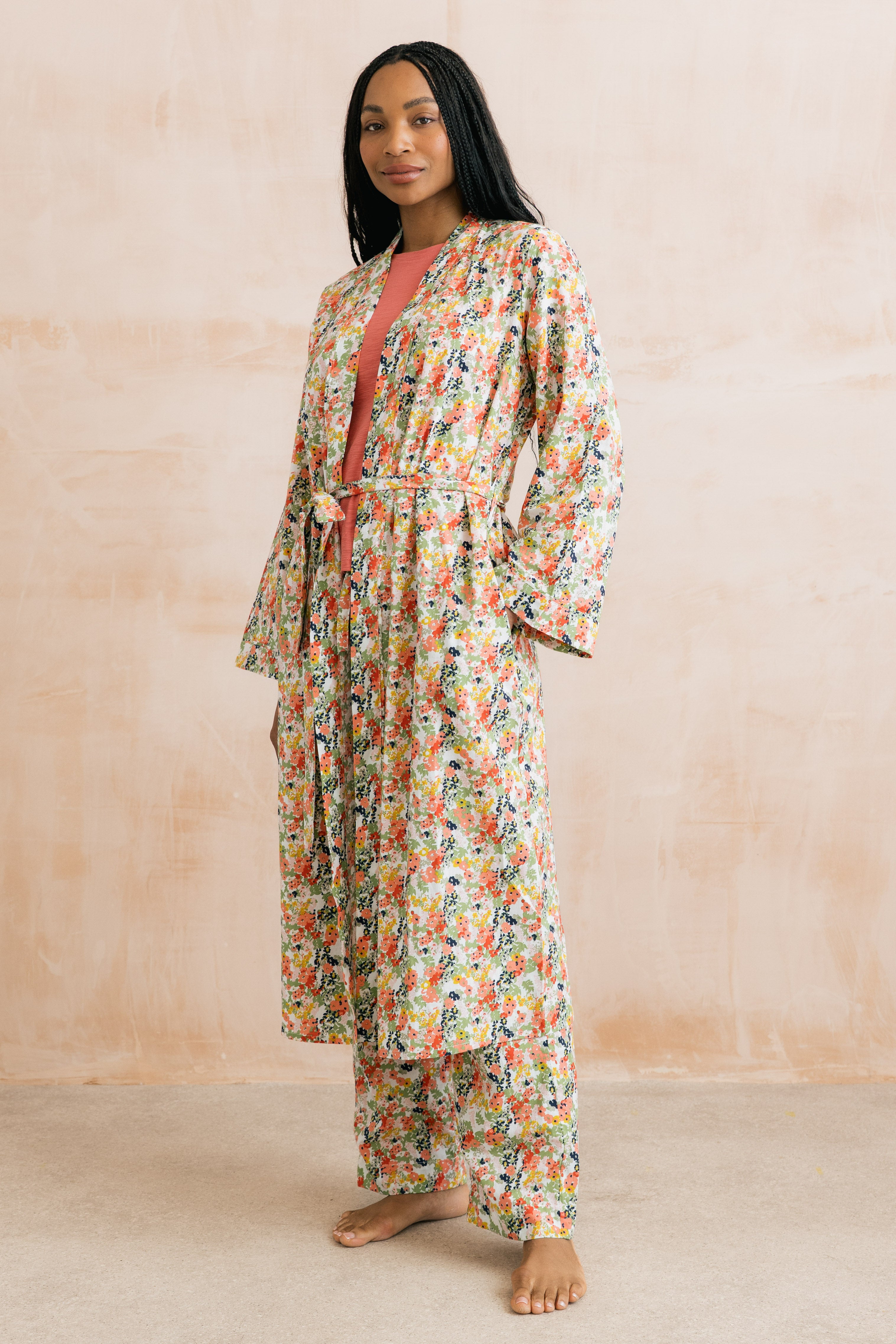 The Mayflower Dressing Gown is crafted from super soft organic cotton featuring our bespoke floral ditsy print.
