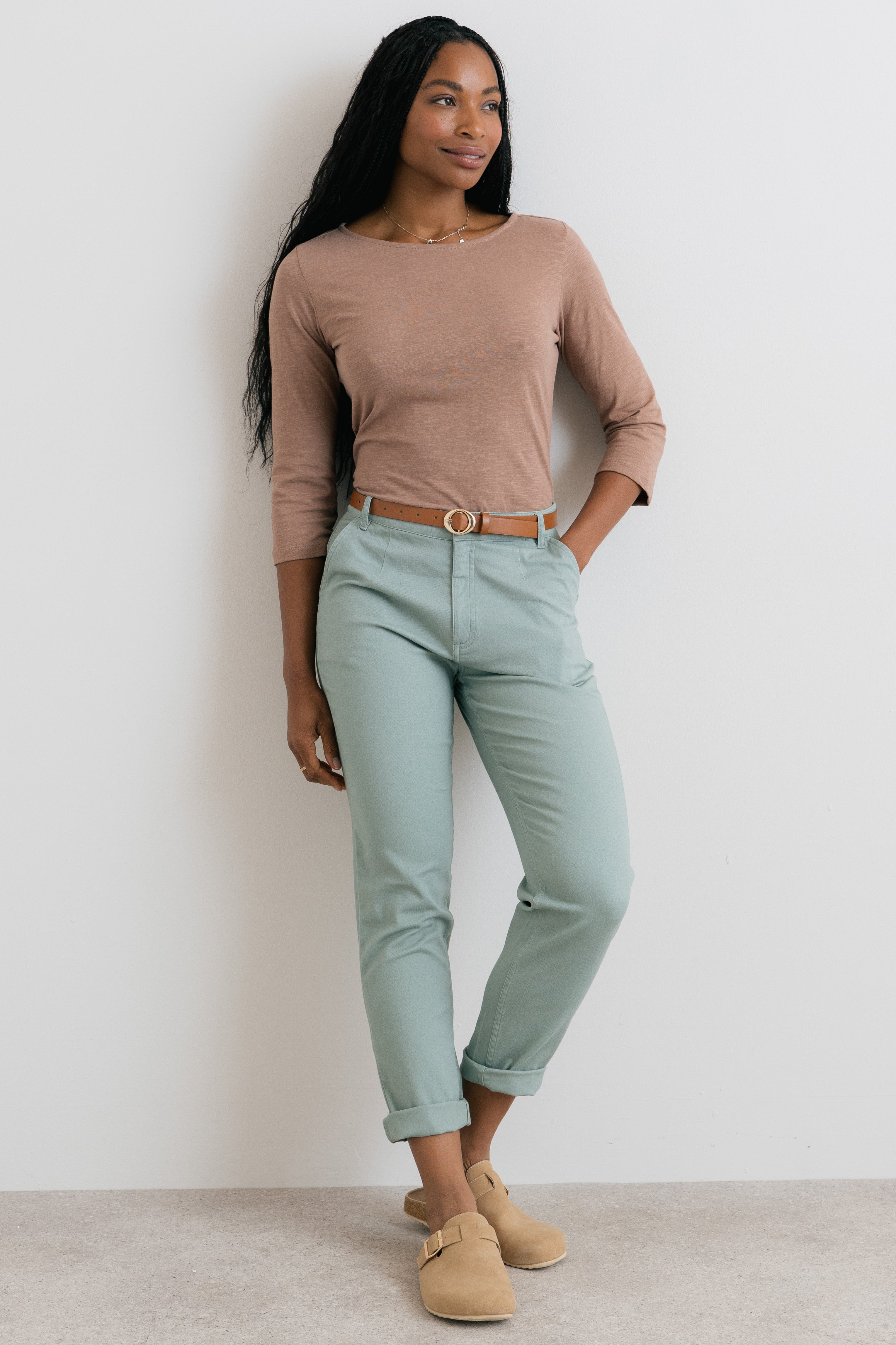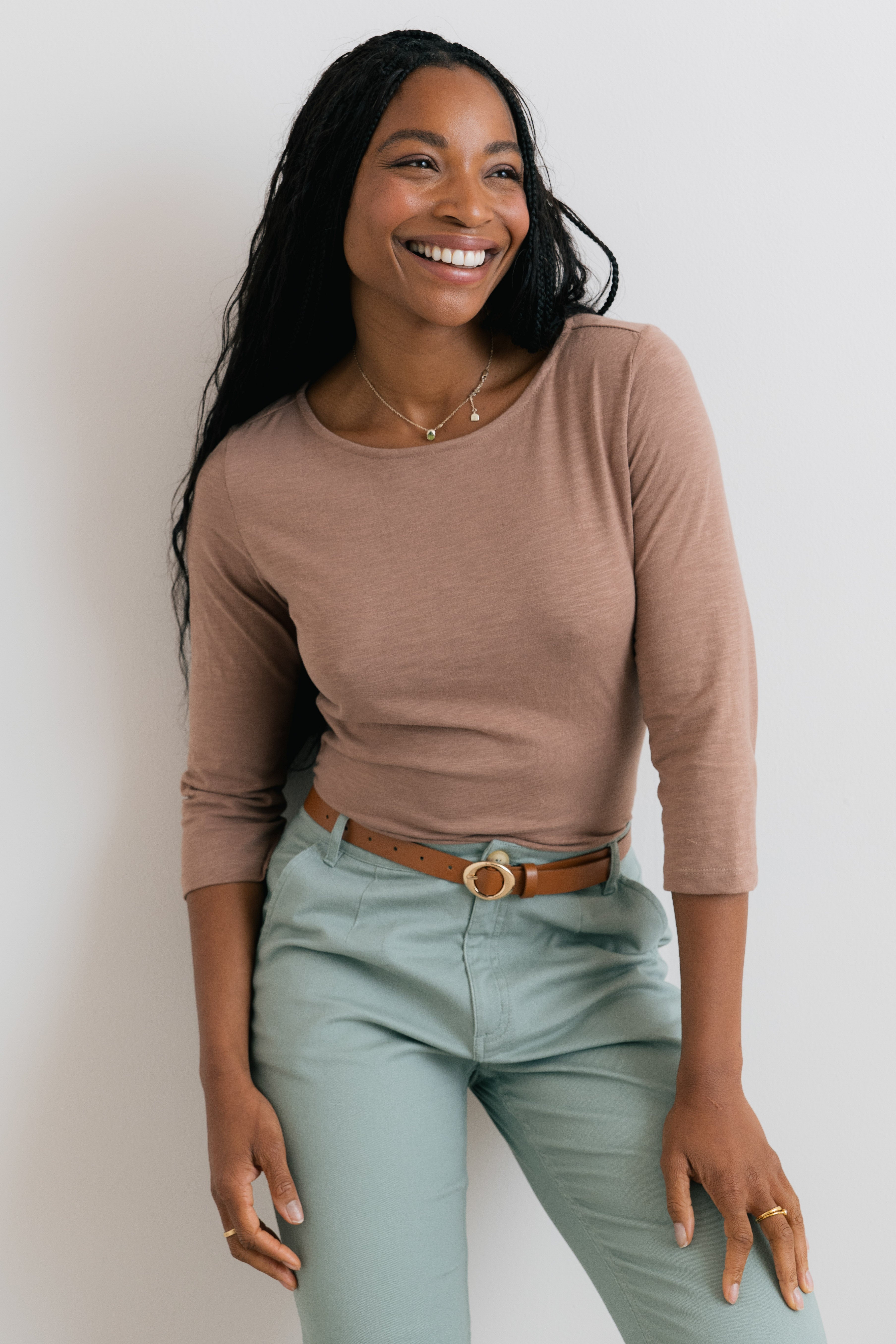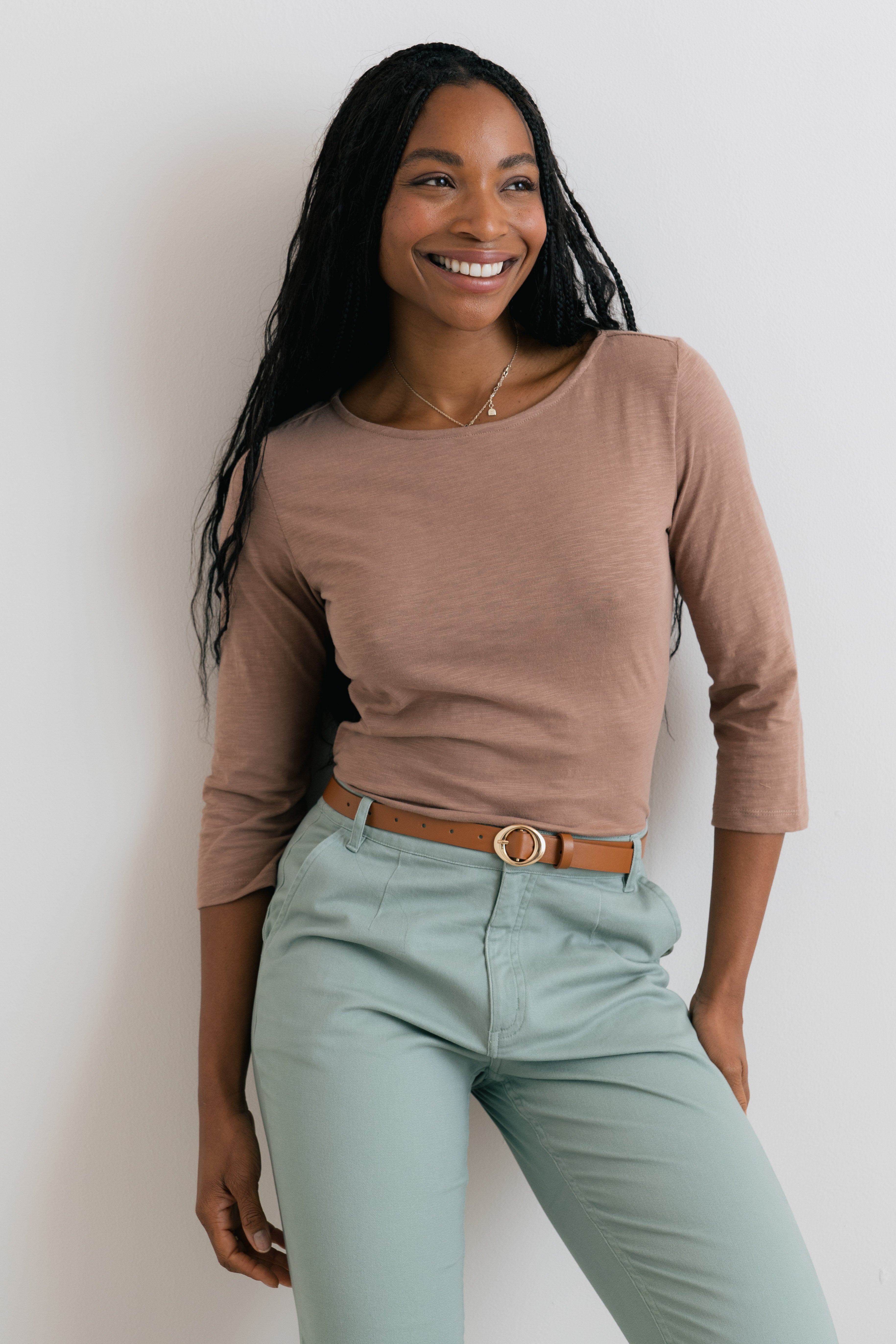 Our best-selling jersey top is back, with three-quarter sleeves for the warmer season. It makes for an elevated casual look.