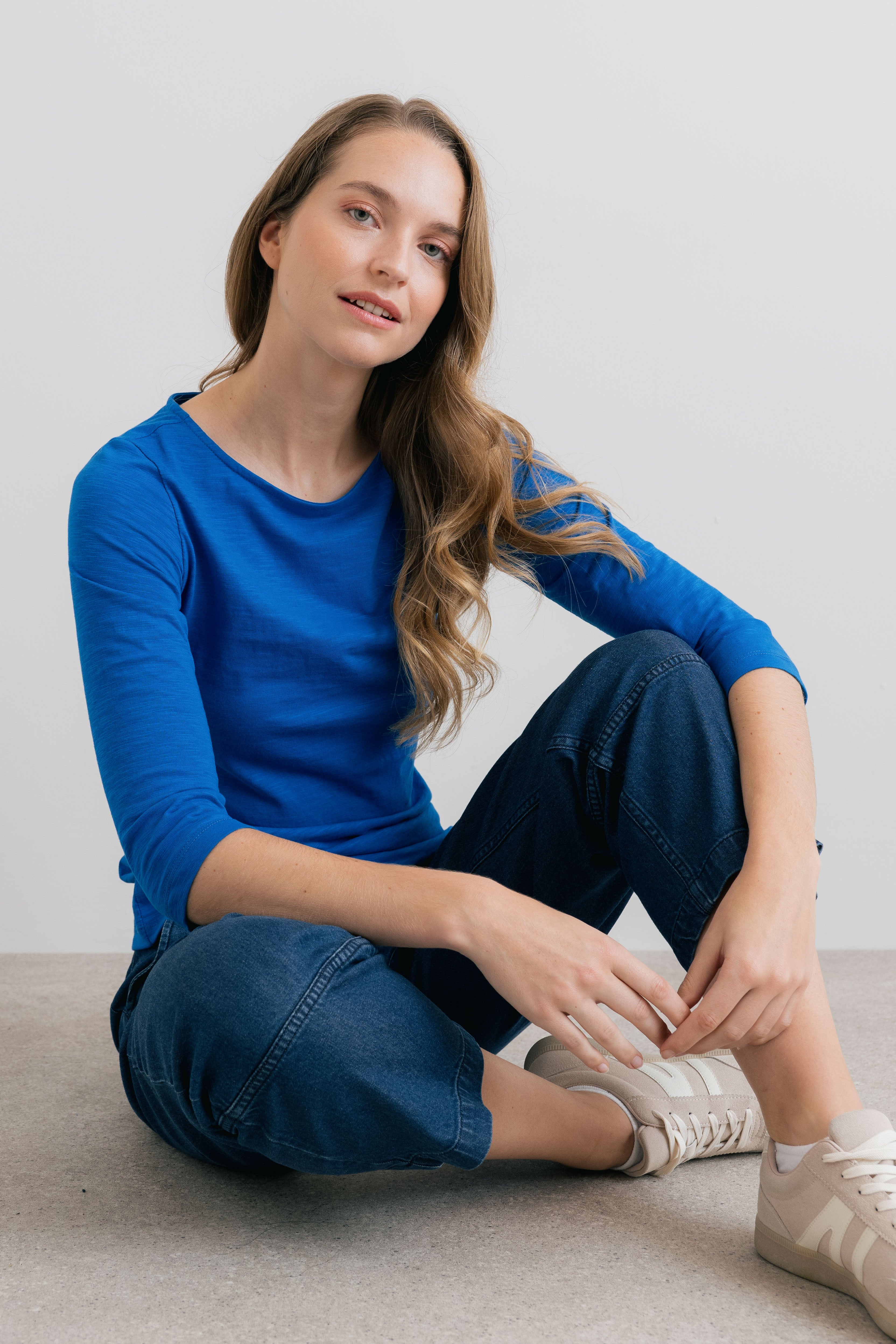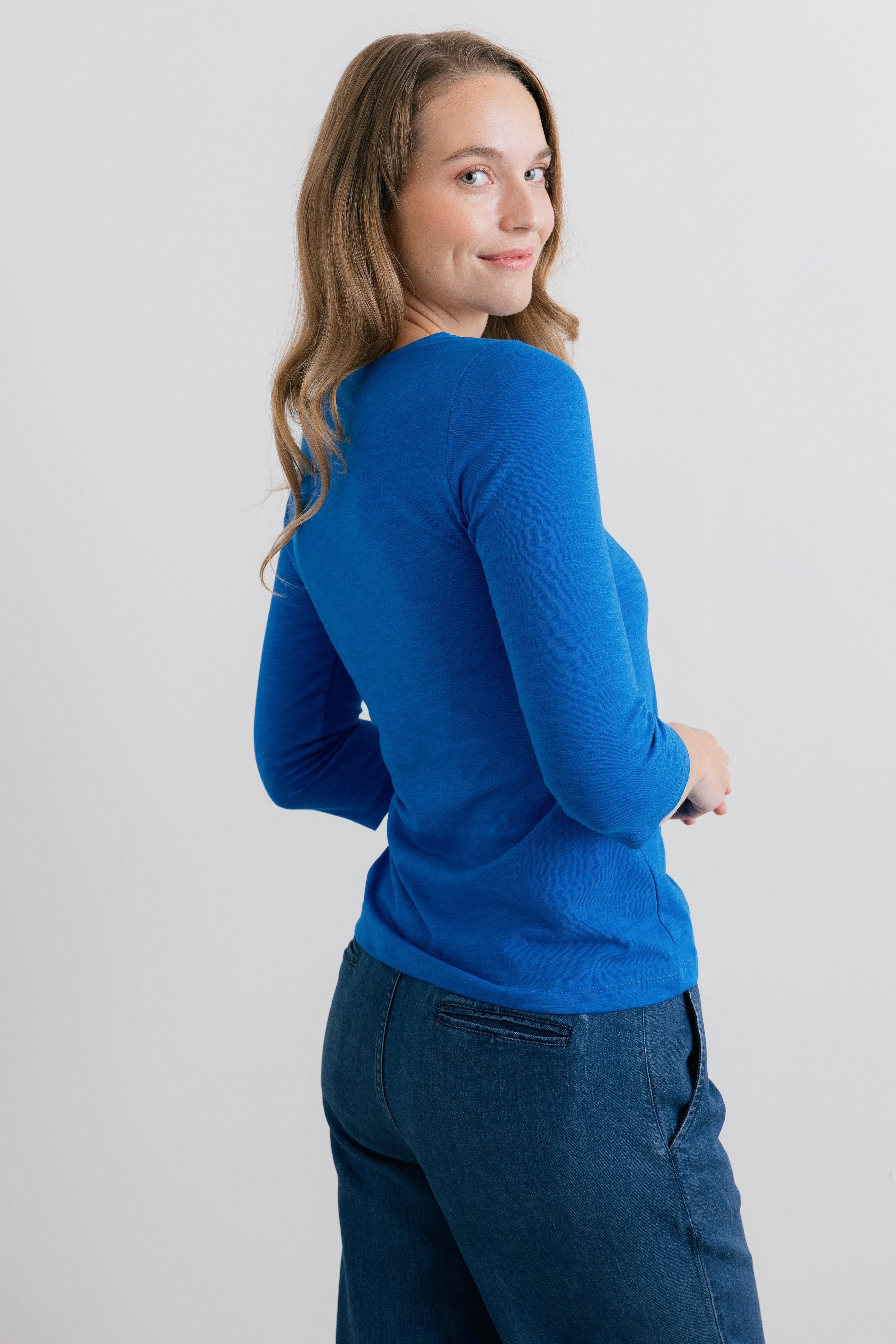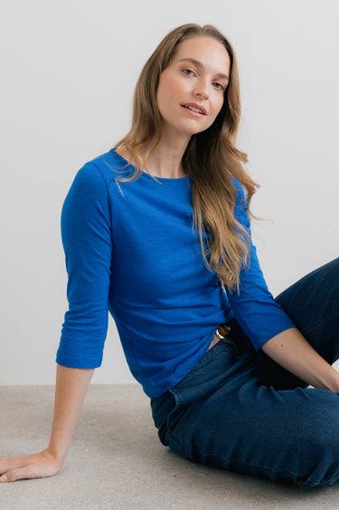 Our best-selling jersey top is back, with three-quarter sleeves for the warmer season. It makes for an elevated casual look.