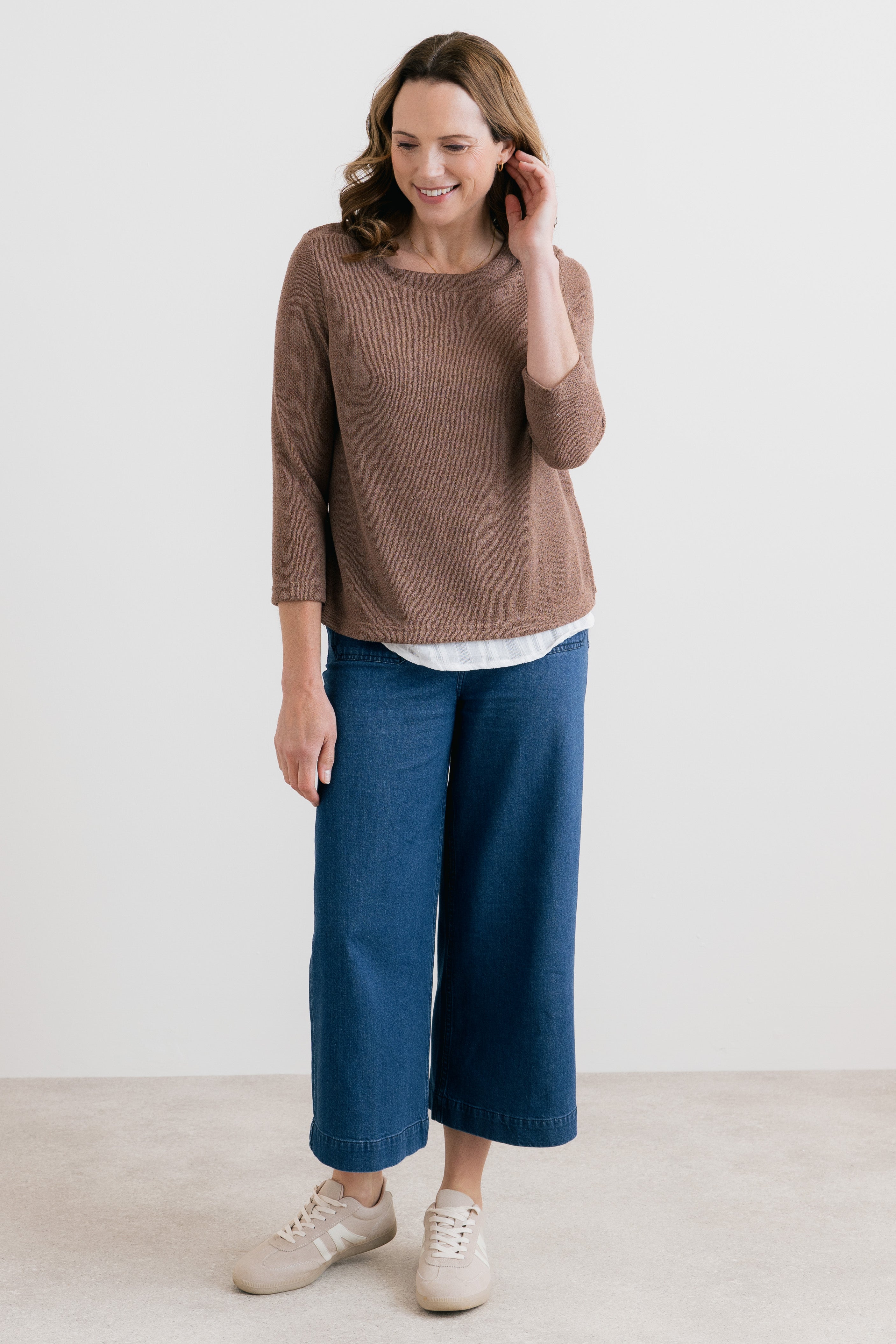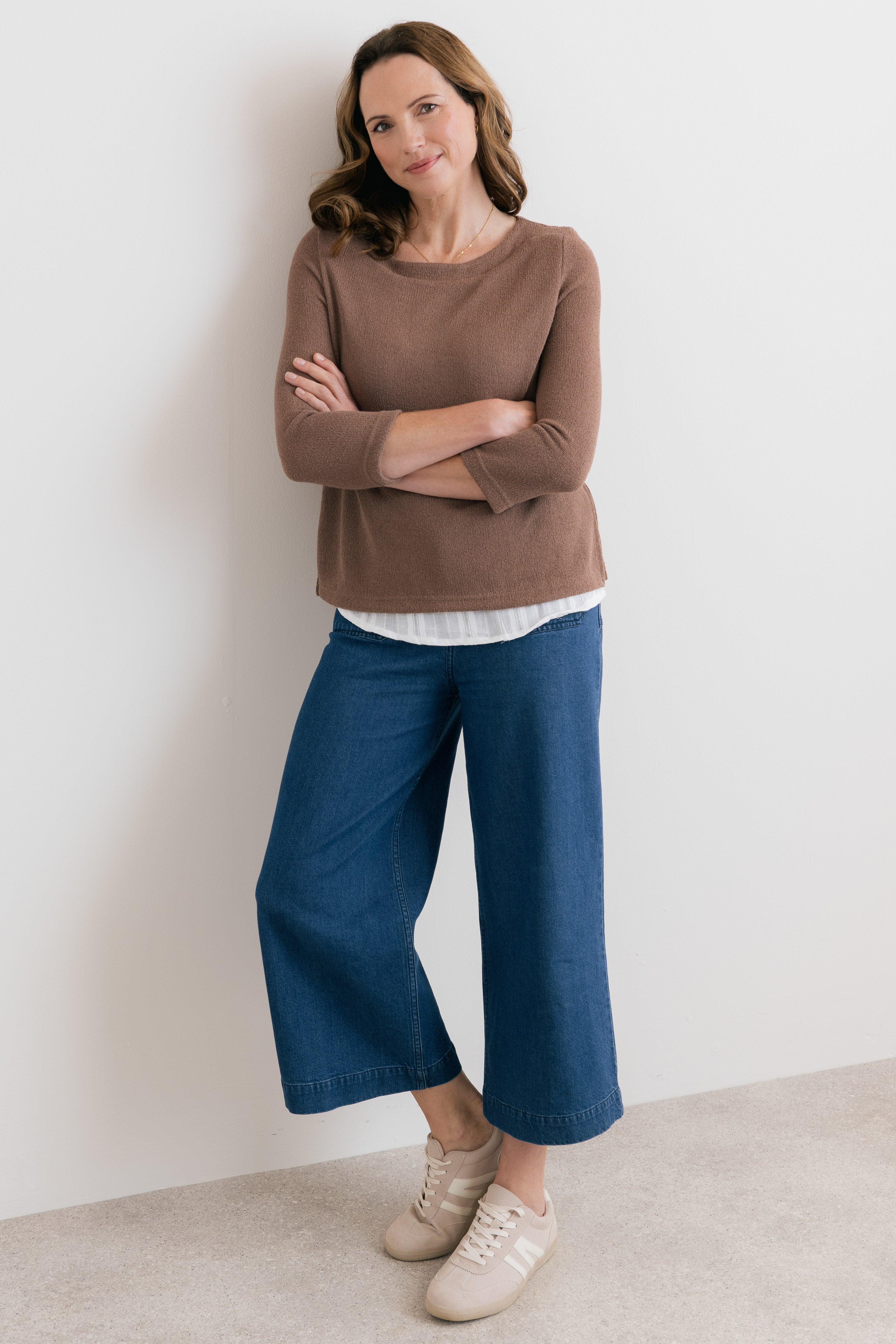The Olive Jumper is the perfect light layer for Spring and Summer, offering a soft, breathable feel thanks to its beautifully smooth Ecovero™ viscose blend. Designed with effortless elegance in mind, it features an attached textured self-striped cotton lining, creating a subtle and stylish contrast beneath the jumper.