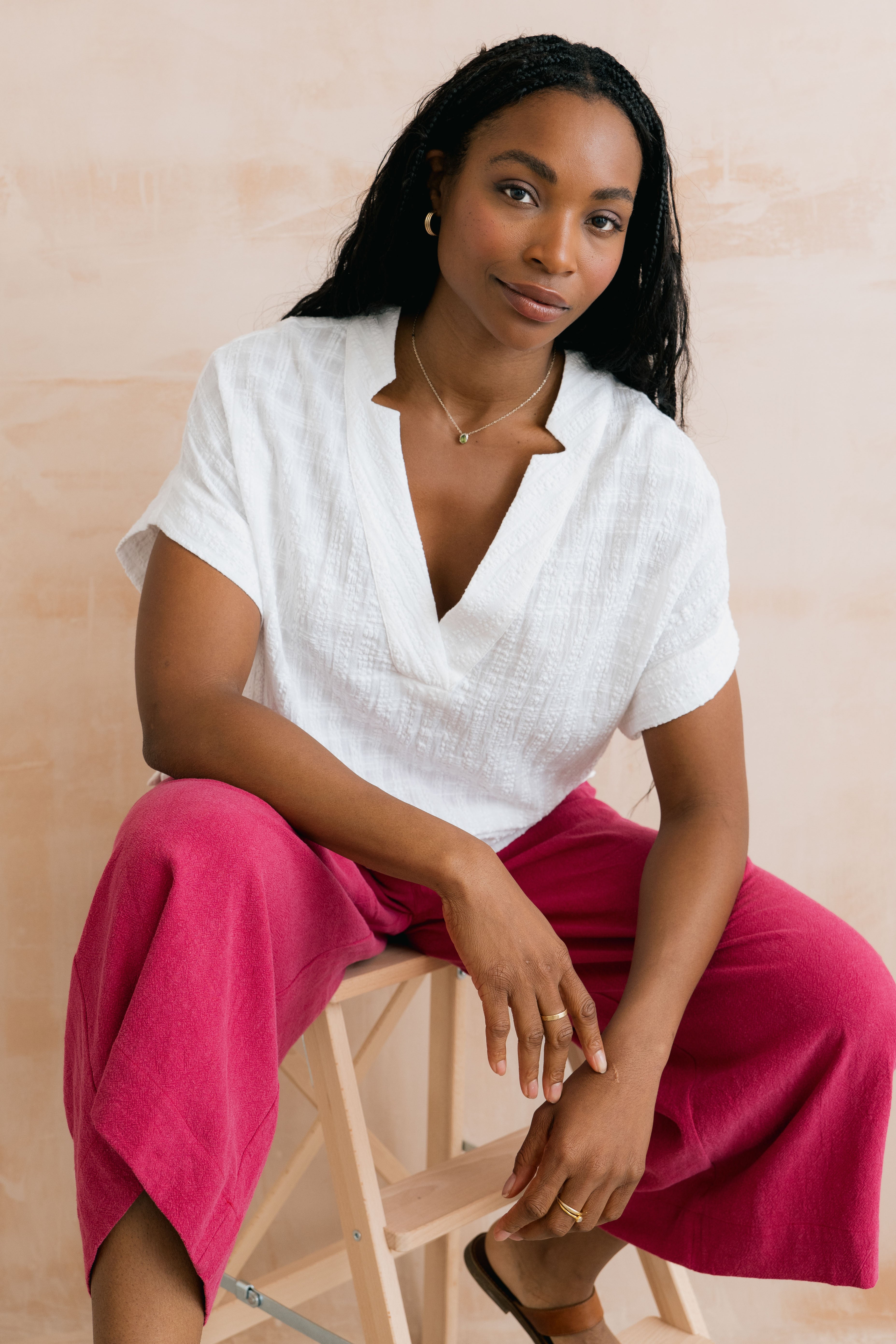 New for the season, the Orchard Top is an elegant shell top cut to drape in a relaxed fit with flattering notch detail at the neckline for added elegance.