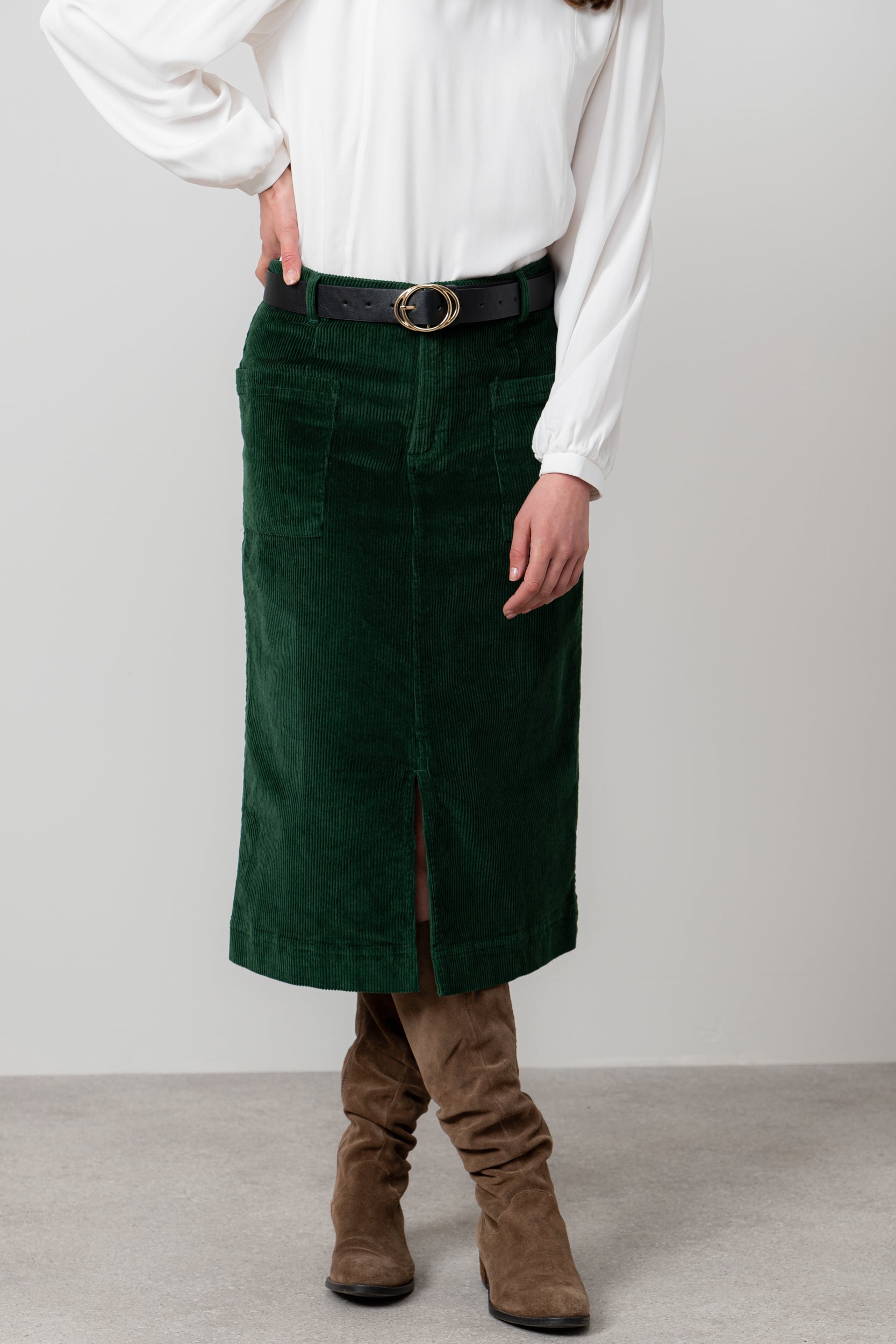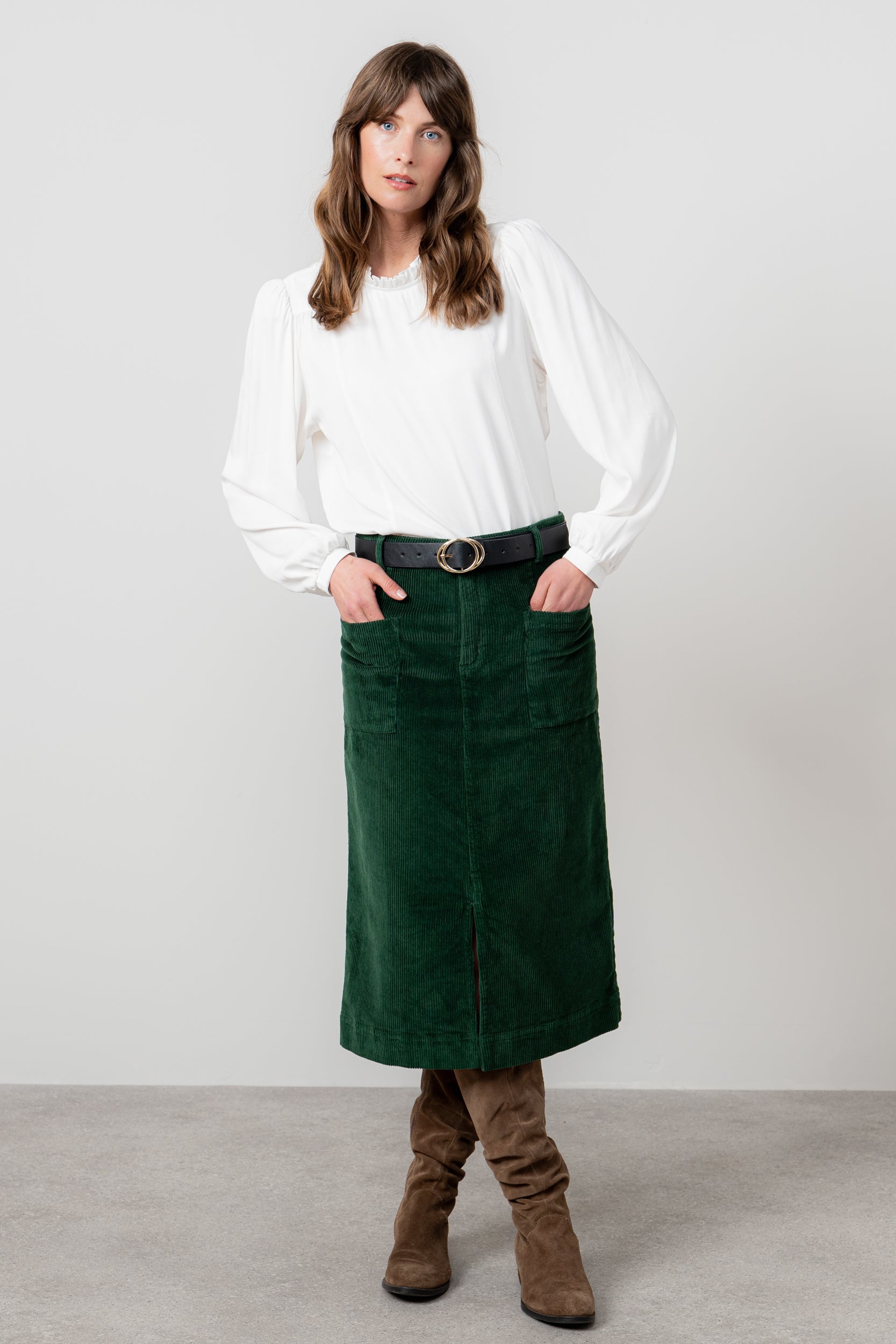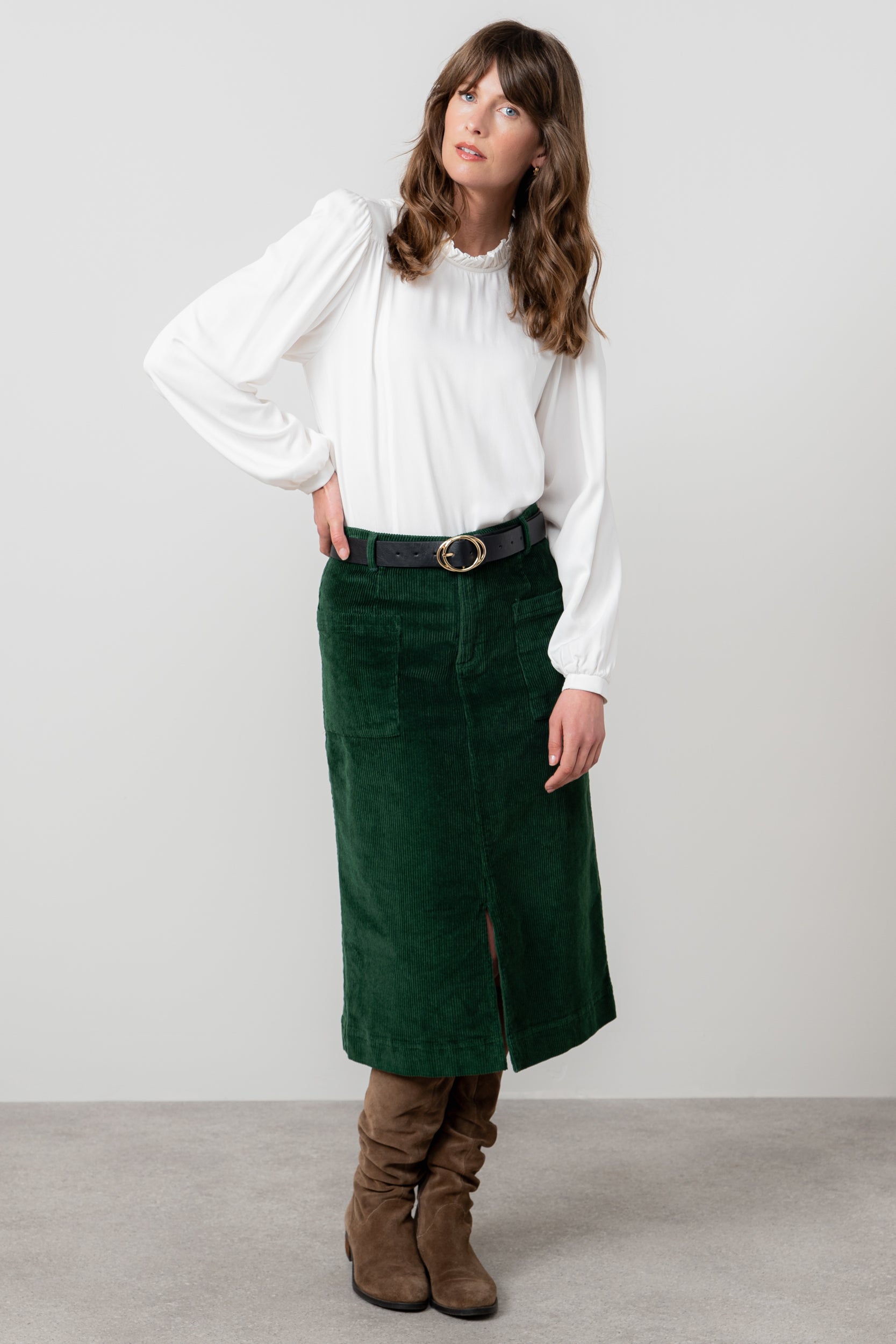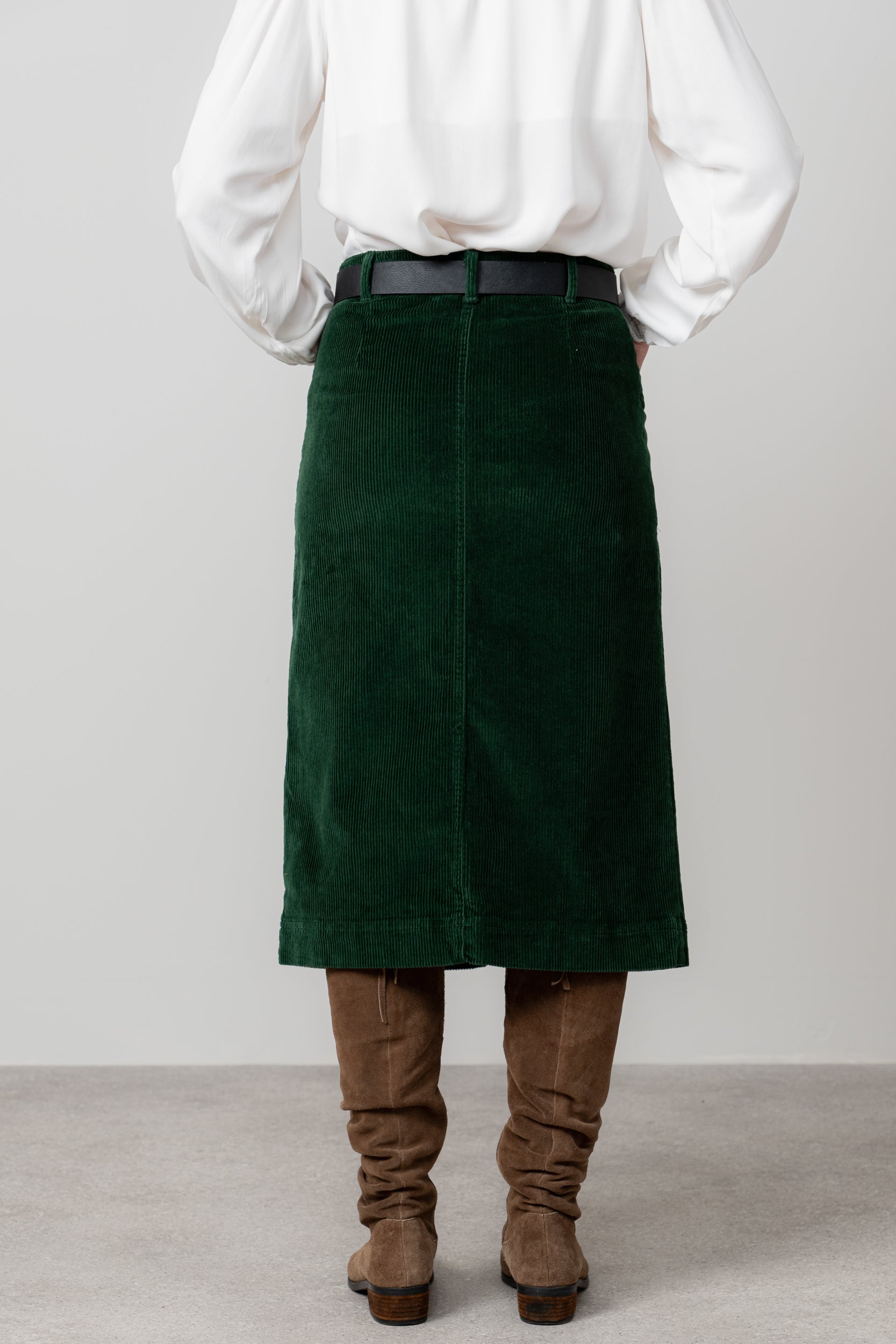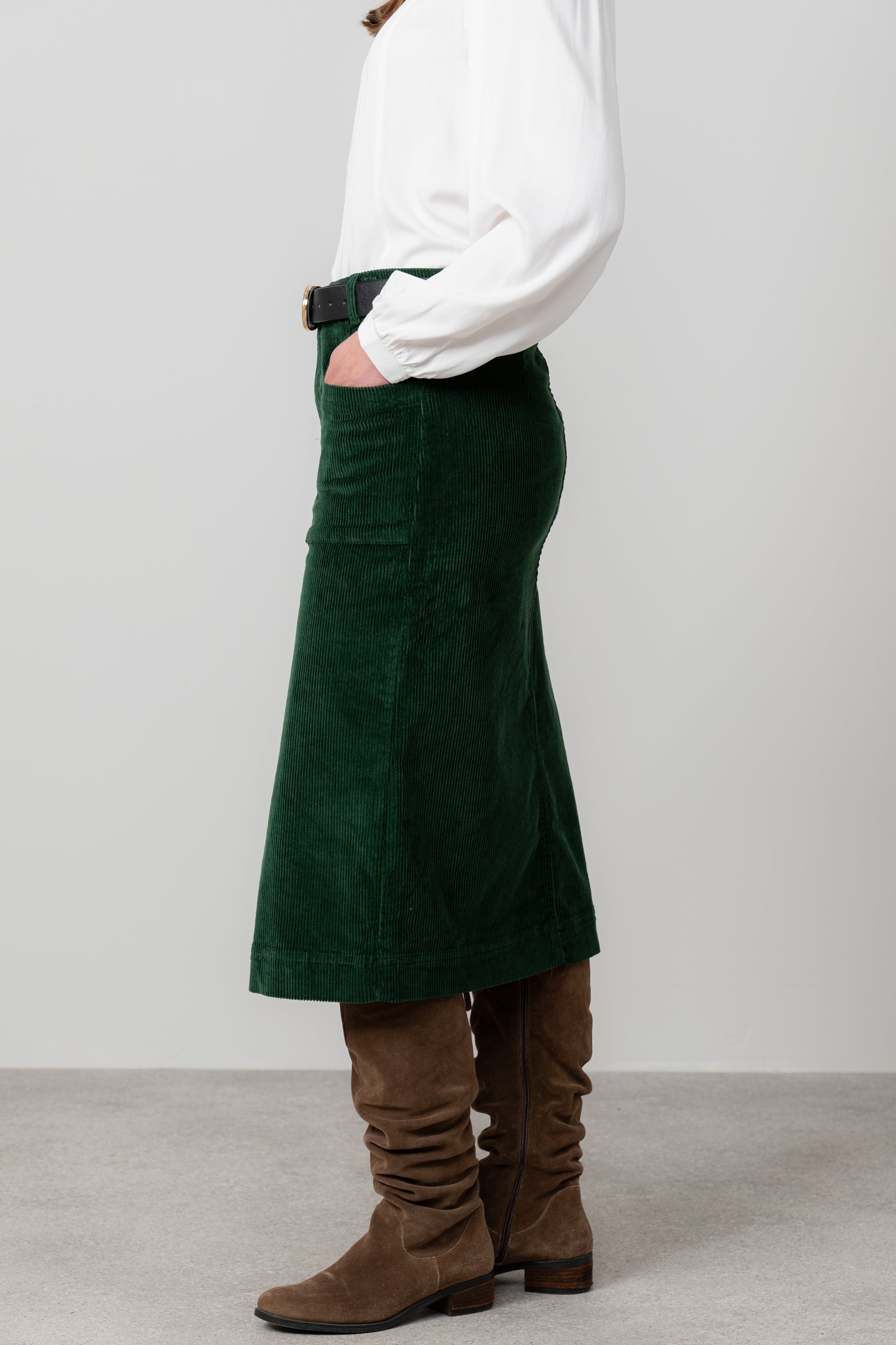 A classic midi, our Penrose skirt is made from a soft textured jumbo cotton cord. A touch of elastane gives stretch to the fabric for a more comfortable fit and a slight front split allows for ease of walking.