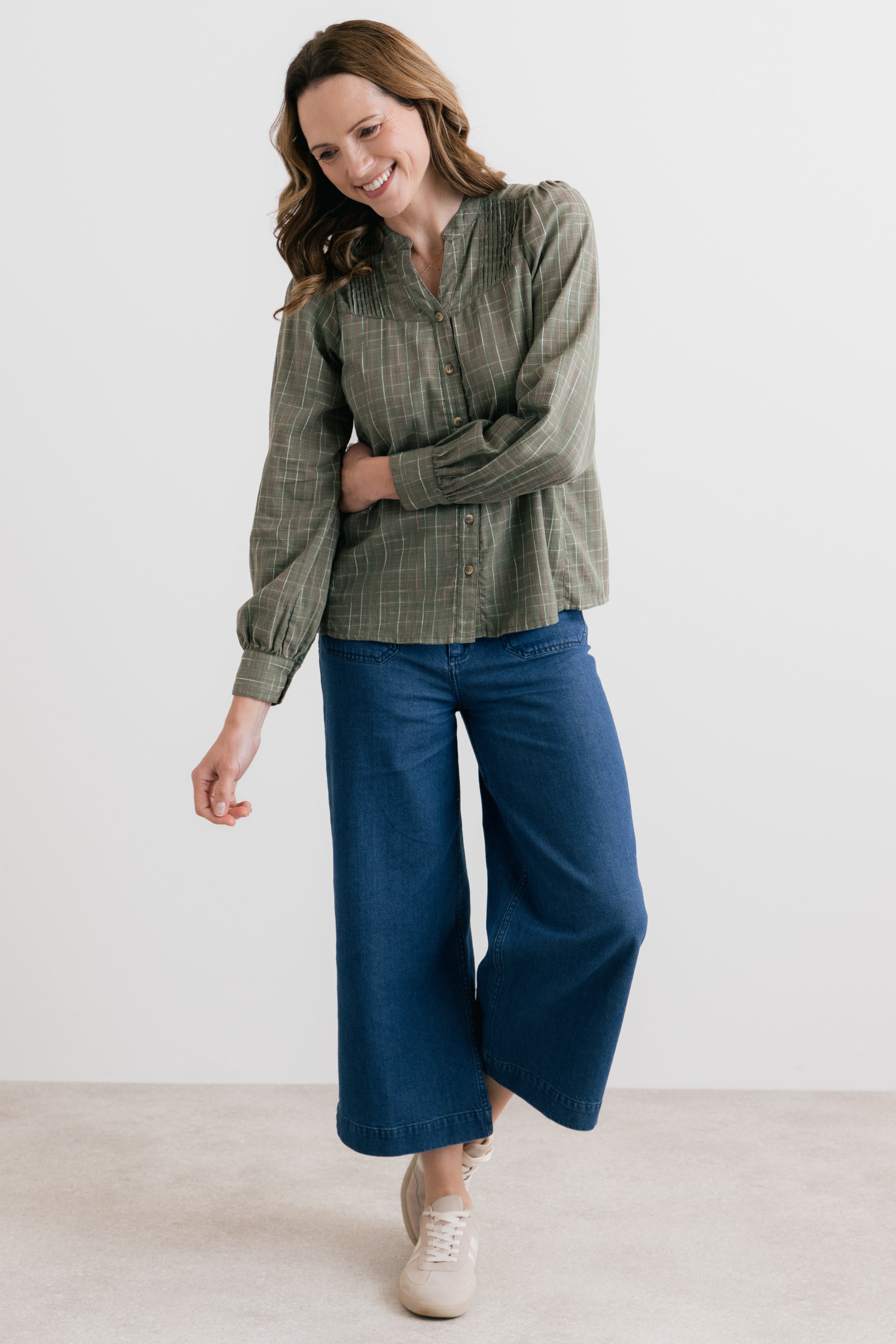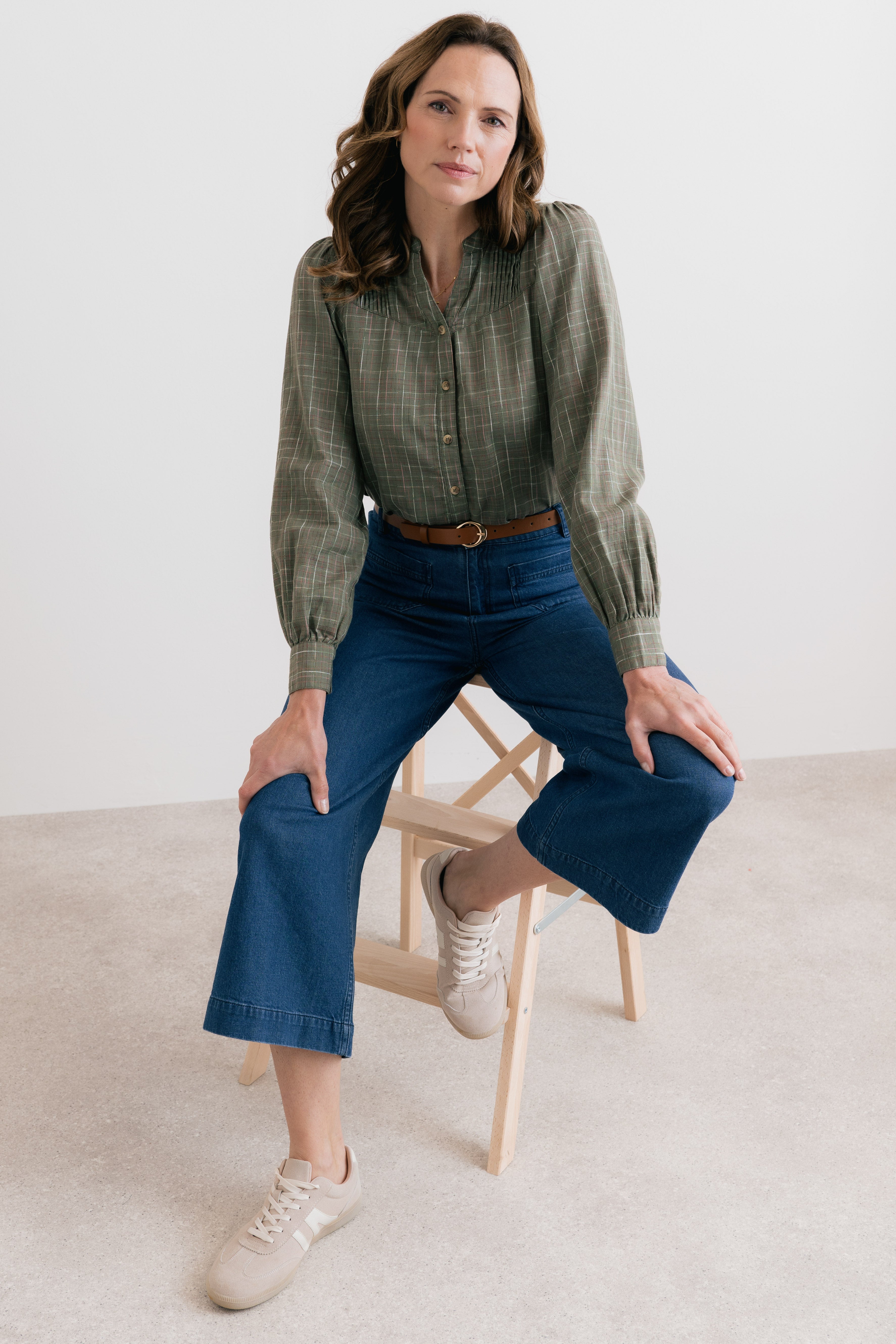 Made from a organic cotton with a soft feminine check, the Poplar Blouse adds texture and interest to any outfit. Style with your favourite trousers or skirt and layer under a tank or knit.