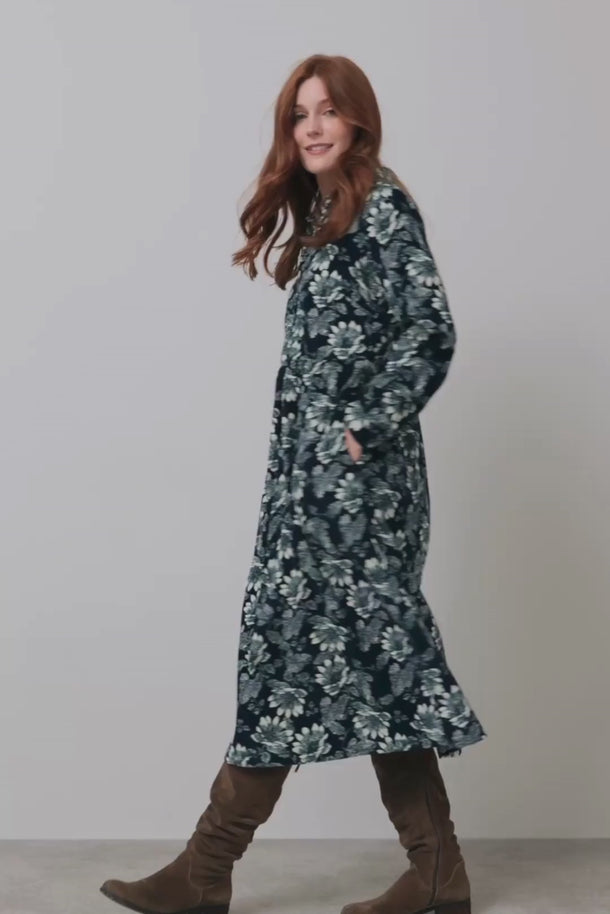 The Seasons Midi Dress has an easy-wearing relaxed fit, with a shirt-style top and full skirt. Perfect for a relaxing day out and versatile enough to wear for work!