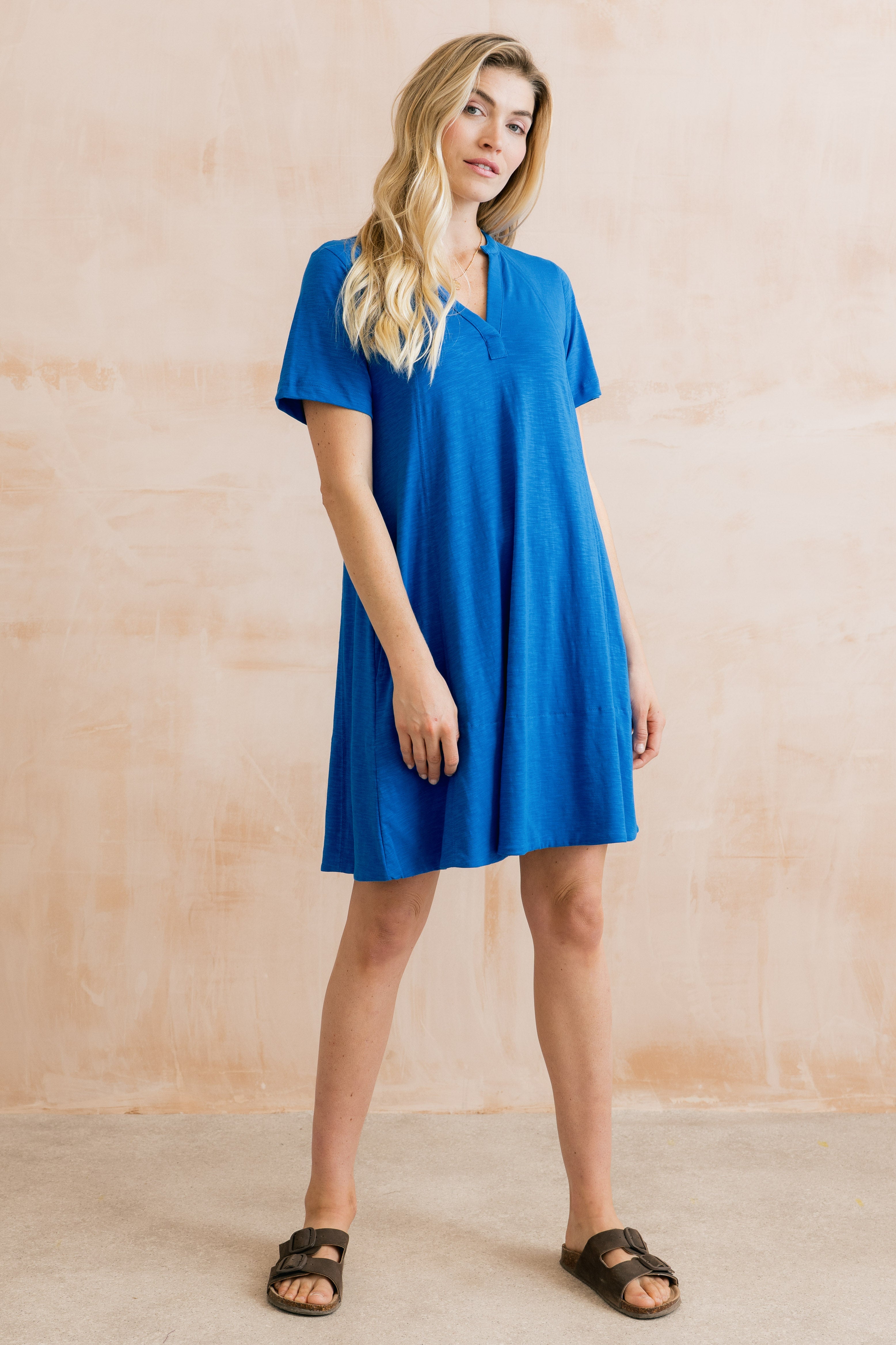 New this season, the Terrace dress is effortlessly stylish and wearable. An easy go-to for breezy, everyday elegance. This knee-length swing dress is crafted from soft, breathable organic cotton, offering a light and comfortable feel.