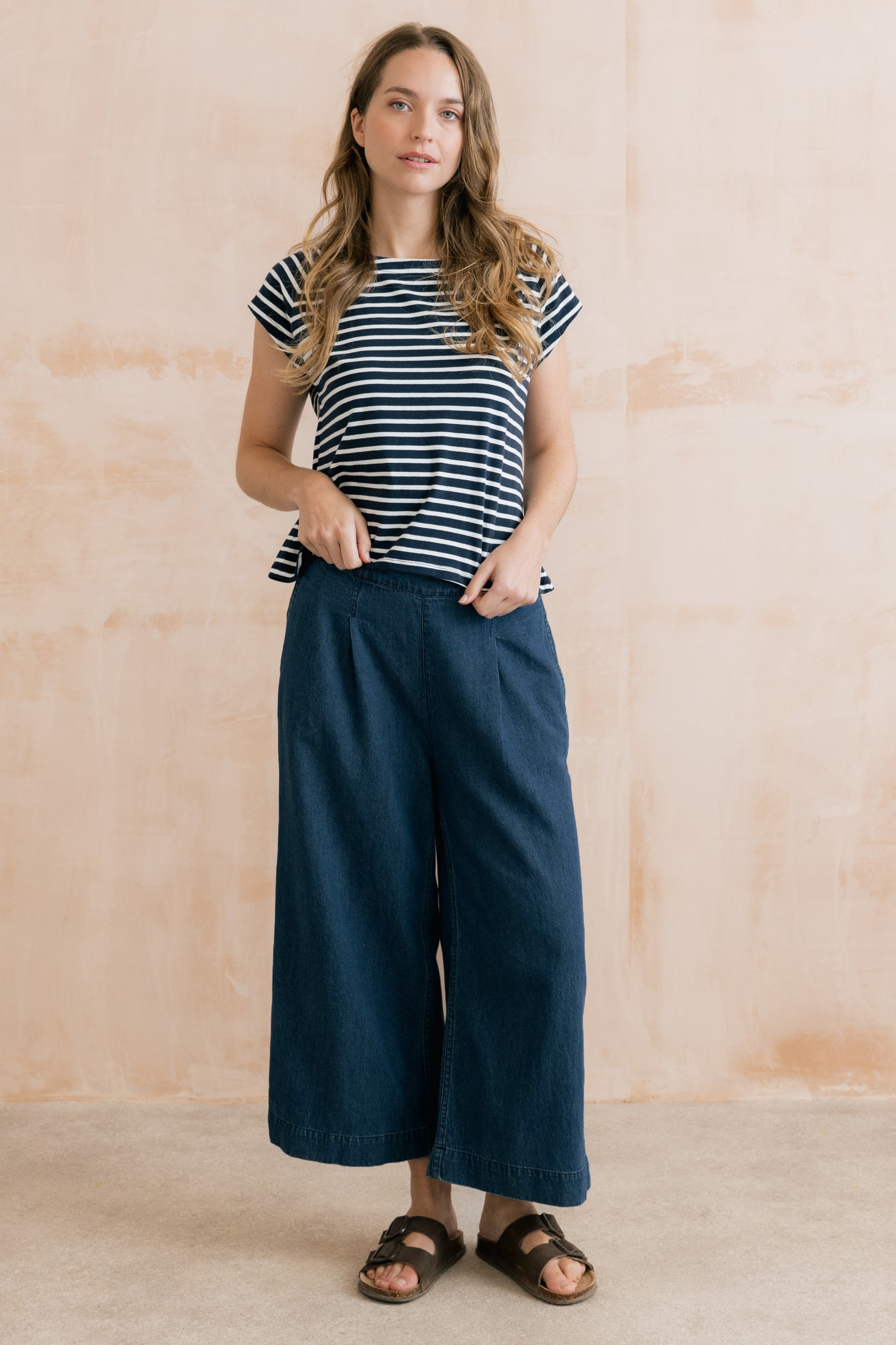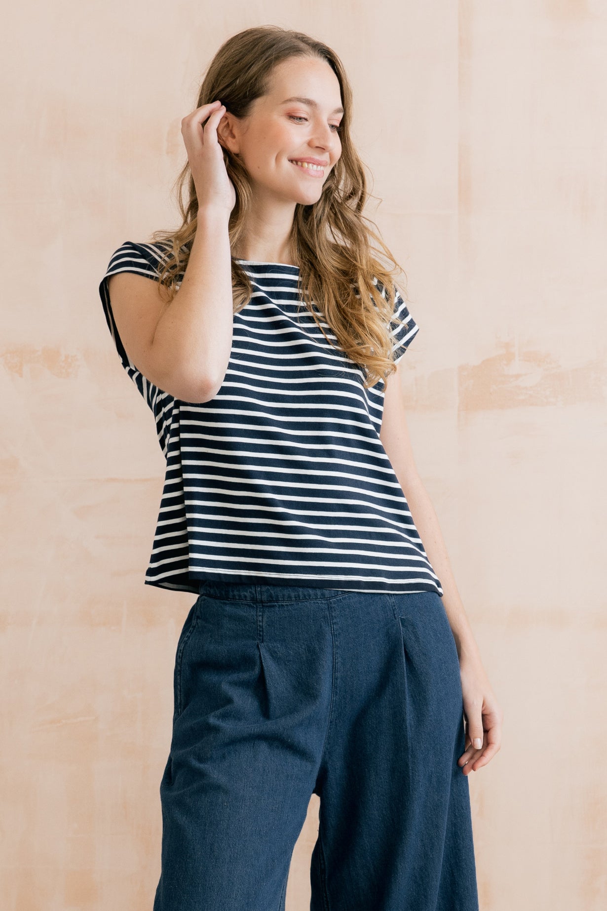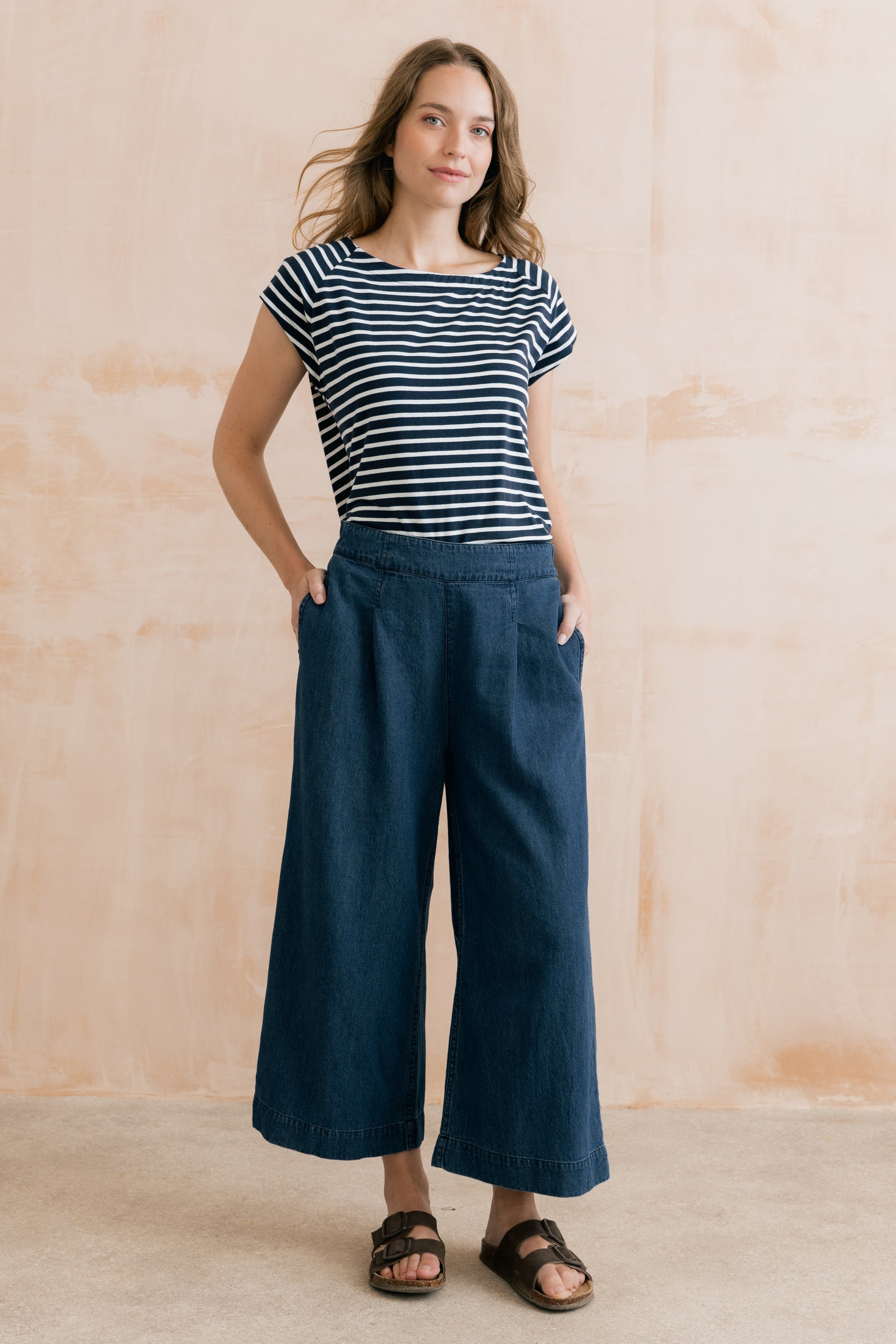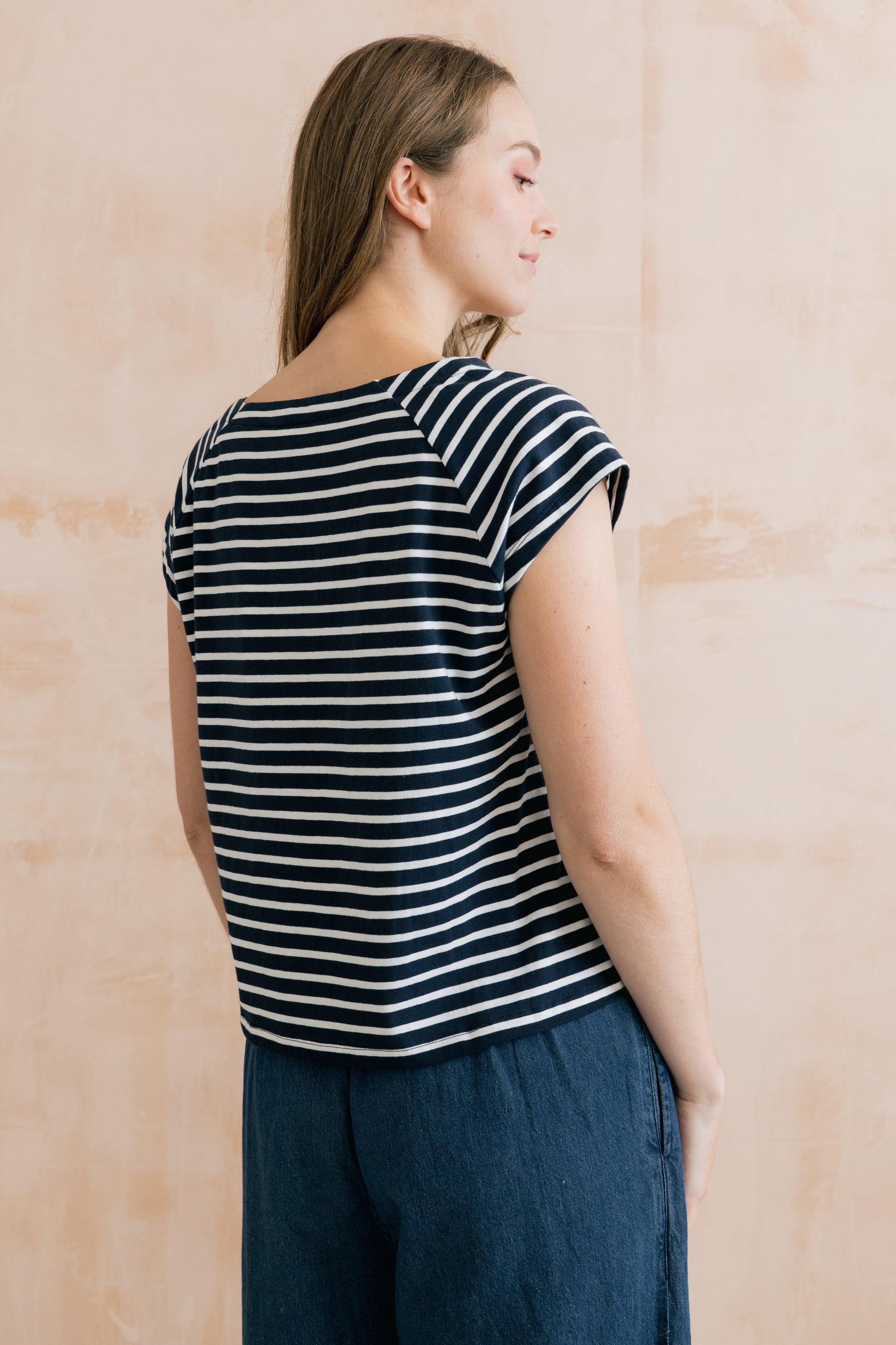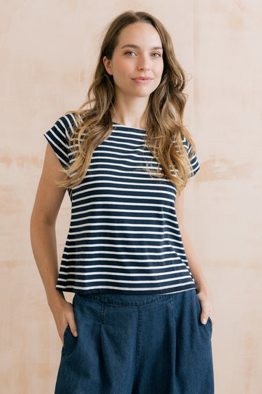 Organic cotton jersey with a touch of elastane ensures a soft and comfortable fit. Available in three seasonal stripes, the Tidal T-shirt makes the perfect outfitter.
