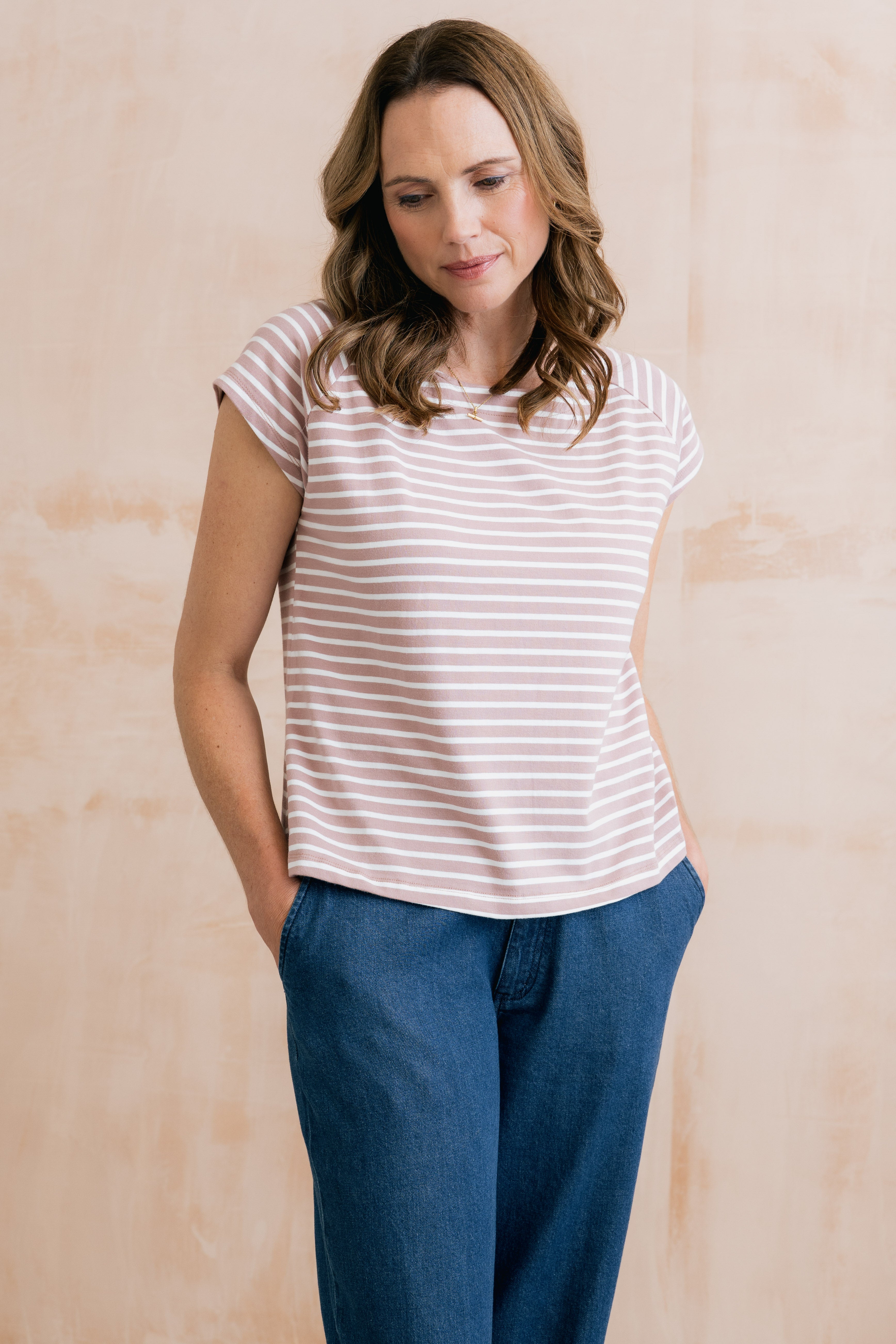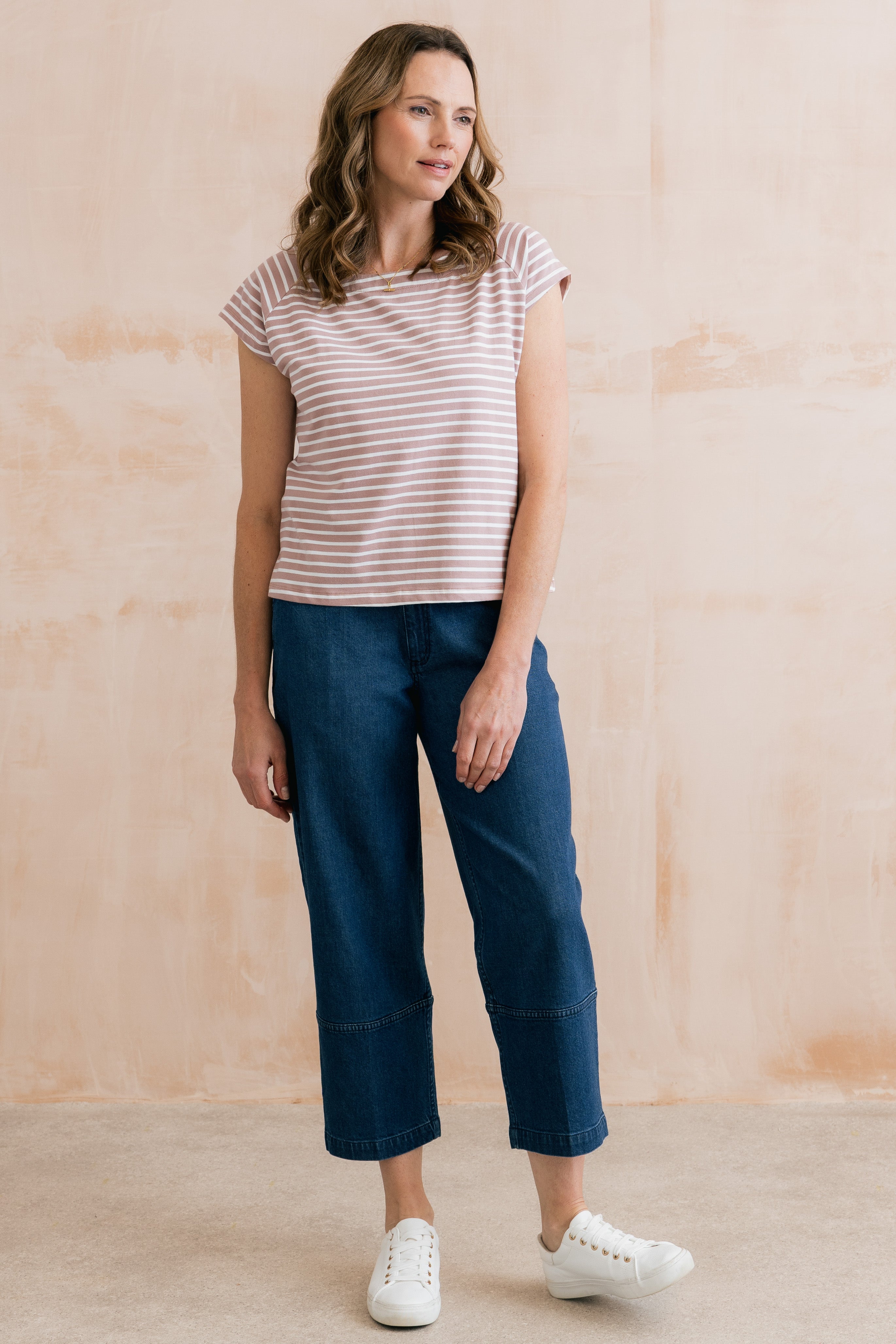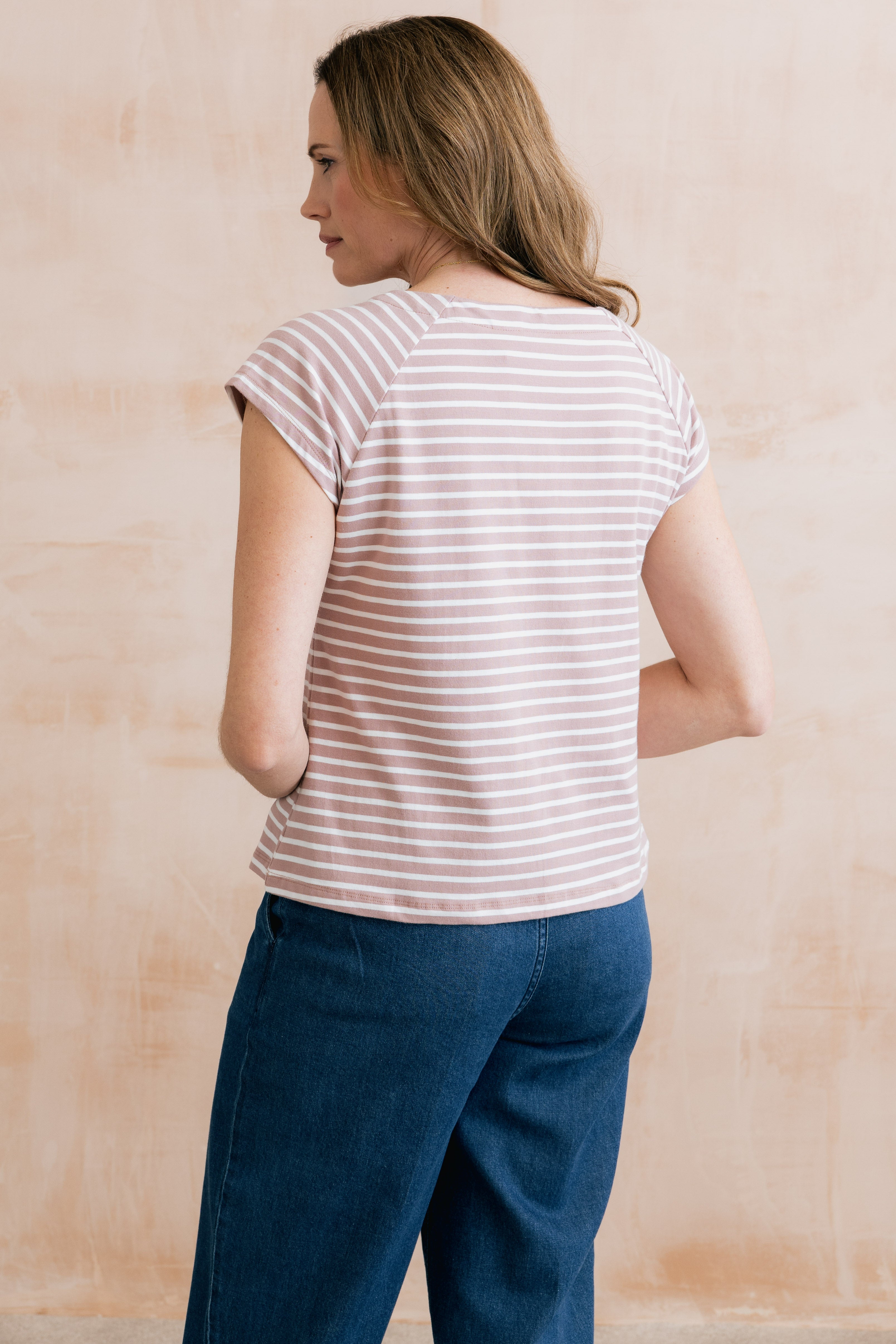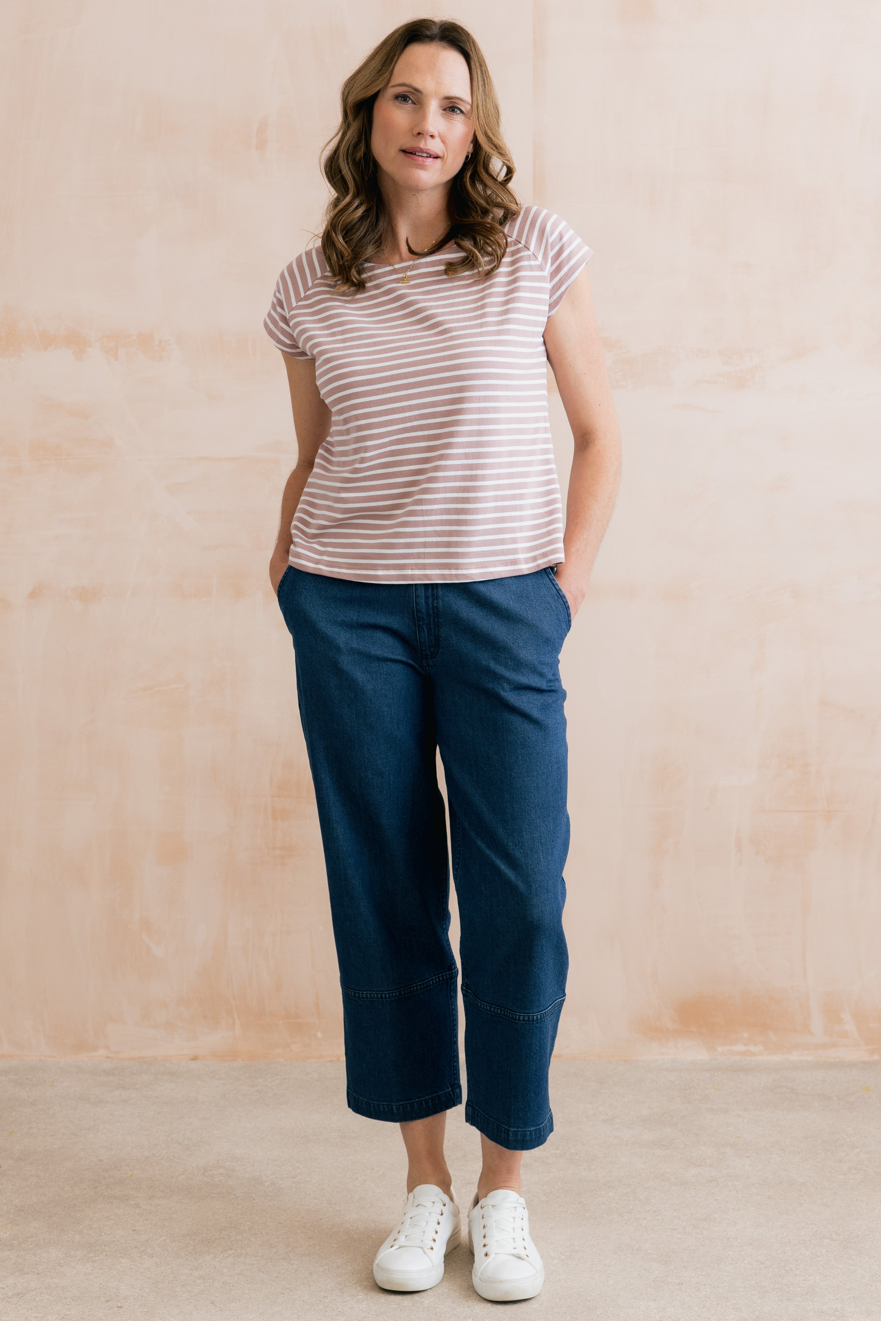Organic cotton jersey with a touch of elastane ensures a soft and comfortable fit. Available in three seasonal stripes, the Tidal T-shirt makes the perfect outfitter.