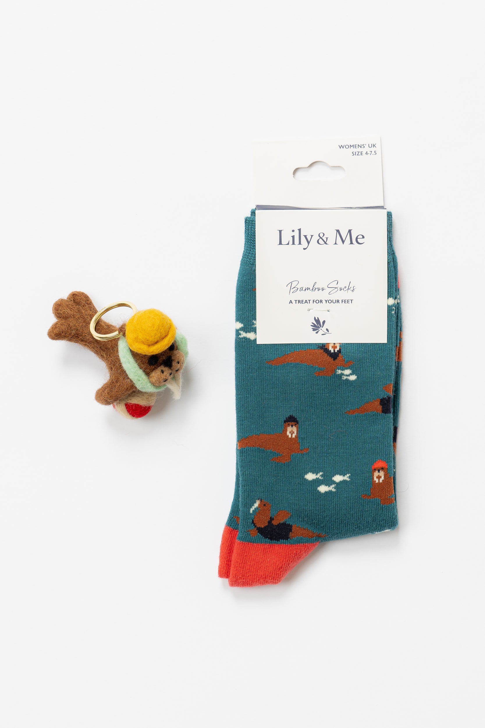 A little box of loveliness, perfect for gifting! Including a pair of super soft bamboo socks in our Wallace the Walrus design and a matching walrus key ring!